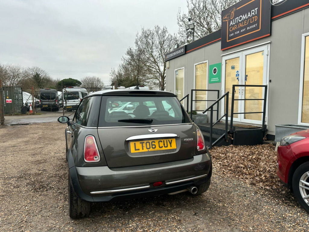 ******** SAME DAY FINANCE AVAILABLE ******** COMES WITH 03 MONTHS FREE WARRANTY ********* **********PERFECT EXAMPLE OF EXCELLENT CAR********* Another Perfect example of 2006 Mini Hatch Cooper Parklane 1.6 Steptronic CVT Auto 16V Chilli Pack SE Special Edition Euro 4 , 3 dr Hatchback 4 Seats 145 bhp with Metallic Grey / White Colour and Full Grey / Black Leather Interior which has just covered 117000 miles (warranted) .A U T O M A T I C , 117000 Miles , 2006 MINI MINI HATCH COOPER PARKLANE 1.6 16V CVT Auto STEPTRONIC CHILLI PACK , Euro 4 , 3 dr Hatchback 145 bhp , 4 Seats , 06 Reg , Metallic Grey / White Colour , Excellent Condition , Full Grey / Black Leather Interior , Power Steering , Remote Central Locking , Adjustable Steering Column / Wheel , Front and Rear Head Restraints , Immobiliser ,Front and Rear Fog Lights , Traction Control , Iso-fix child seat , A I R C O N D I T I O N I N G / Climate Control , Anchor Points , A B S ,Body colour Bumpers , Multiple Air - bags , Electric Mirrors , Radio / CD Player , Alloy Wheels , Just been Fully Valeted , Full Service History + Old m.o.ts to Prove Mileage , 4 Good Tyres , M.O.T Till DECEMBER 2026 , Ideal First / Family Car , Very Clean in and out , Cheap to Run and insure , Cheap to Tax , Price for Quick sale . ated door mirrors & heated windscreen washers, leather- english- panther black, harman kardon hi fi system, rear park distance control, head airbags, warning triangle & first aid kit, thatcham cat 1 remote alarm & immobiliser, dark tinted glass, exterior mirror pack, front armrest, rain sensor with auto headlights activation, visibility pack, sport suspension plus, cassette player, single cd player, sports suspension, steptronic paddles for steering wheel, thatcham cat2 engine immobiliser, tinted glass