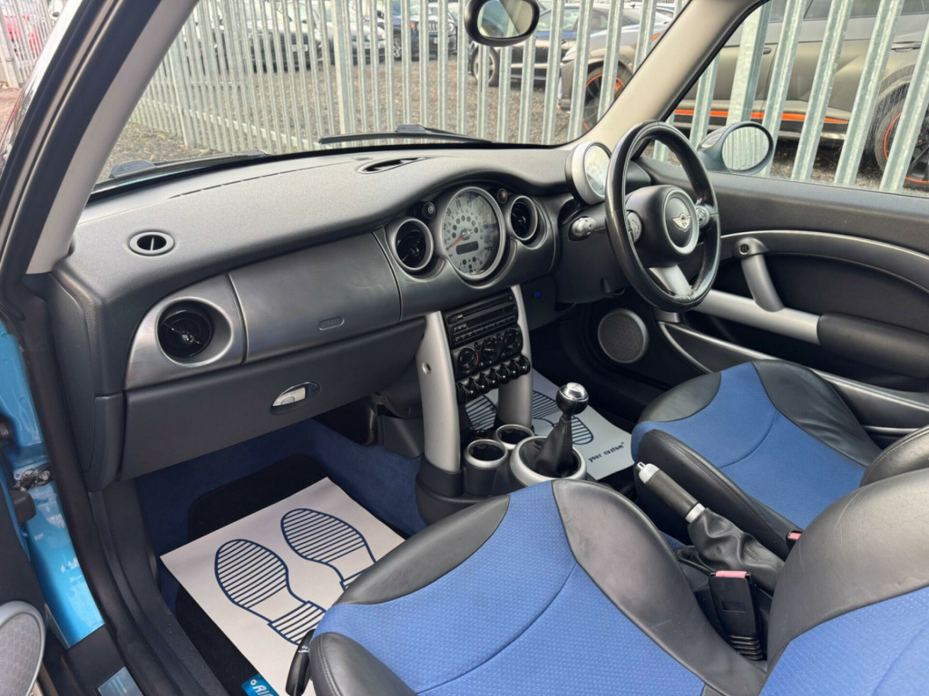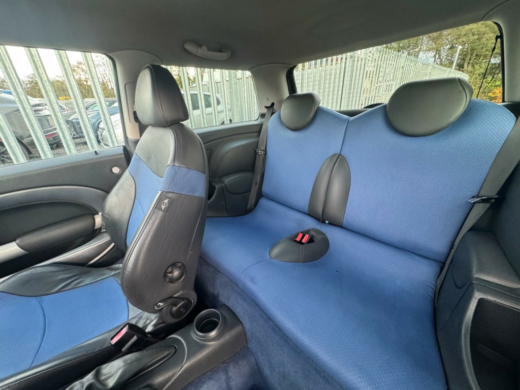 12 Months mot with advisory's SPARES OR REPAIRS DUE TO CLUTCH SLIPPING. 2 keys and loads of paperwork This 2004 MINI Hatch Cooper S offers a thrilling driving experience with its potent 1.6L petrol engine, capable of accelerating from 0 to 62mph in a swift 7.4 seconds. This particular model benefits from the desirable MINI Chili Pack, enhancing its already impressive specification. You'll find Xenon headlights with washers for excellent visibility, complemented by manual air conditioning and climate control for your comfort.The Cooper S trim level ensures a sporty feel, and the inclusion of the Chili Pack further elevates its appeal. The rapid acceleration highlights how this MINI Cooper S stands out from other vehicles in its class, offering a truly engaging drive. This combination of performance, comfort features, and the sporty Cooper S designation makes this a compelling choice for any MINI enthusiast. in 5 star alloy wheels, 16in alloy wheels, 16in light alloy wheel 5-star, alloy patina look interior trim, alloy wheels painted white, anthracite interior trim, black bumper inserts, black roof & mirror caps, body coloured roof, brilliant silver interior trim, delete cooper s badge, light alloys painted white & white roof & mirror caps, magnesium grey door trim, no model inscription, painted wing mirrors - black, painted wing mirrors - white, painted roof- black, painted roof- white, stereo radio cassette & 6 speakers, white roof & mirror caps, mini chili pack & auto air con, mini chili pack, manual air conditioning, 17in s spoke alloy wheels, xenon headlights & wash & wipe, xenon headlights with headlight washers, radio boost & single slot cd, radio boost, headlight cleaning system, headlight power wash, front foglights, interior lights package, single cd player, 3spoke sports leather steering wheel, bonnet stripes- white, mini storage compartment pack, leather cloth mix- satellite- lapis blue & lumbar support