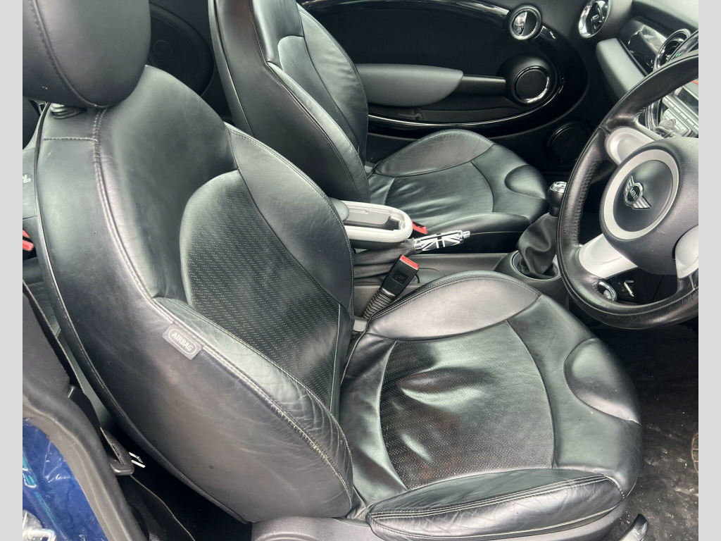 This 2007 MINI Hatch Cooper S offers a thrilling driving experience with its punchy 1.6 litre petrol engine, capable of reaching 0-60mph in just 7.1 seconds. Finished in Carbon Black leather, this Cooper S trim model comes equipped with a host of desirable features. Enjoy the comfort of heated front seats, and navigate with confidence thanks to the Bi-Xenon headlights with automatic height adjustment and washers. The rain sensor automatically activates the headlights, while the auto dimming rear view mirror enhances visibility during night driving.The impressive acceleration of this MINI Hatch Cooper S demonstrates its performance capabilities, setting it apart from other vehicles in its class. The combination of its sporty engine, premium leather interior, and advanced lighting and convenience features makes this a compelling choice for anyone seeking a dynamic and well appointed compact car.. 12V Power Outlet Front, 16in S- Winder Light Alloy Wheels, 2Spoke Leather Steering Wheel, 3Spoke Sports Leather Steering Wheel & gearknob when with Bluetooth prep, 6 Speakers, Alloy Wheels painted White, Black roof, Black roof & mirror caps, Body colour roof & door mirrors, Body colour tailgate handle, Chequered Interior Trim, Delete COOPER S badge, Door sill finishers with Cooper S badge, Interior world - Gotham Grey, Interior world- Carbon Black, Interior world- Redwood Red, Interior world- Tuscan Beige, Leather gear knob, MINI mobility System, Manual Air Conditioning with cooled glovebox, No smoker Package, Piano Black Interior Trim with Gravity & Lounge Leather, Radio BOOST & single slot CD, Voice Control System when with Bluetooth, White roof & mirror caps, Bi- Xenon Headlights & Auto height adjust & headLight washers, 17in Crown Spoke Light Alloy Wheels & RunFlat Tyres, 17in Crown Spoke Light Alloy Wheels, MINI HI-FI SpeakerSystem - 10Speakers & amplifier, MP3 compatible 6CD Changer - glovebox, Visibility Pack, Heated Front Seats, Front Foglights, Interior Lights Pack- Cooper & Cooper S, Chrome line Interior, Auto dimming Rear view mirror, Storage compartment Pack- Cooper S, Rain sensor with Auto Headlights activation, Chrome line Exterior, 3Spoke Sports Leather Steering Wheel, Bonnet Stripes- Black, Piano Black Interior Trim, Heated Windscreen Washer Jets, Heated door mirrors & Heated windscreen washers, Leather- Punch- Carbon Black. Full service history