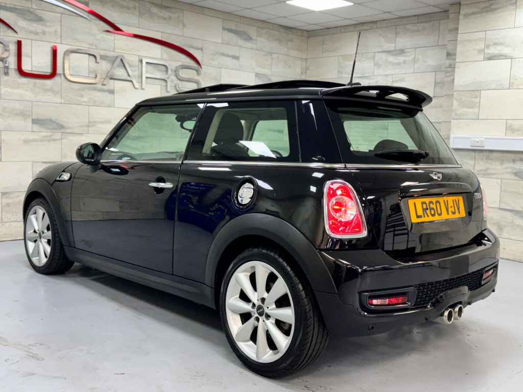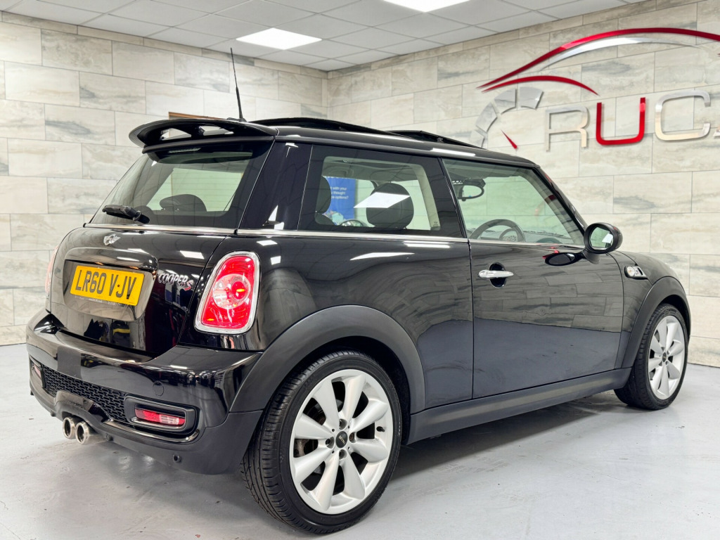 A fantastic opportunity to purchase a very clean, genuine low mileage well maintained example!This 2010 '60' Mini Cooper S Automatic is finished in Midnight Black with Carbon Black leather interior.SPECIFICATION - Chili pack Panoramic sunroof Electric Folding Mirrors Electric Windows Xenon Lights Cruise control Reverse sensors Auto Climate control DAB Radio Bluetooth Remote central locking 17'' Wheels & much more! MAINTENANCE -The car will come with a new MOT, service & full health check all included within the price. It also has a great service history with 9 documented services (Serviced10k,19k,32k,39k,40k,40k,41k,49k,52k)MORE ABOUT THE CAR - The car is lovely. The spec is great, the overall condition is fantastic & of course it drives without fault.WHATS INCLUDED - The car will come with a new MOT, fully valeted & 3 Months Ultimate Warranty included. We have 2 keys, clear HPI report and all paperwork.VIDEO - TBCFINANCE AVAILABLE - We are fully regulated by the FCA & work with multiple brokers & lenders.R U Cars Loughborough is a family run business, selling quality used vehicles since 2013. Visit www.RUCARS.co.uk for more information in s- winder light alloy wheels, alloy wheels painted white, black roof, black roof & mirror caps, body colour roof & door mirrors, body colour tailgate handle, mini mobility system, white roof & mirror caps, 3spoke sports leather steering wheel, chequered interior trim, delete cooper s badge, interior world- carbon black, interior world- redwood red, interior world- tuscan beige, leather gear knob, manual air conditioning with cooled glovebox, no smoker package, piano black interior trim with gravity & lounge leather, 6 speakers, voice control system when with bluetooth