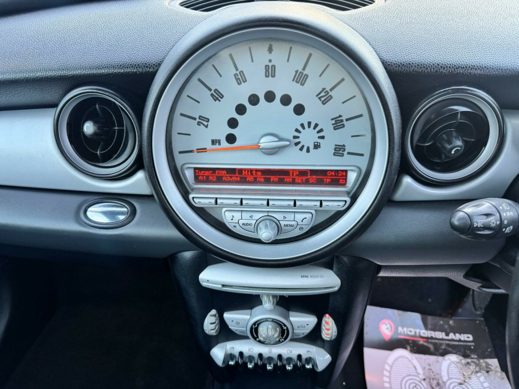 This 2008 MINI Hatch Cooper is presented with a clear vehicle history check, offering peace of mind for its next owner. Powered by a responsive 1.6L petrol engine, this Cooper variant boasts a smooth driving experience. Inside, you'll find a comfortable interior featuring a stylish Leather Cloth mix in Carbon Black, complemented by the practical Visibility Pack. This pack includes a rain sensor that automatically activates the headlights and an auto dimming rear view mirror, enhancing convenience and safety. The exterior is enhanced by 16 inch 5 star Blaster Alloy Wheels, adding to its distinctive MINI appeal.The MINI Hatch Cooper offers an engaging drive, reaching 0 to 62 miles per hour in 10.4 seconds, demonstrating its spirited performance. This particular model also benefits from being in a low insurance group, which indicates it may be more economical to insure compared to similar vehicles. These combined attributes make this 2008 MINI Hatch Cooper a compelling choice for those seeking a well equipped and enjoyable compact car. in 5-star blaster light alloy wheels & runflat tyres, 16in 5 star blaster alloy wheels, visibility pack, front sports seats, 3spoke sports leather steering wheel & gear knob, front foglights, interior lights pack- cooper & cooper s, auto dimming rear view mirror, storage compartment pack- cooper s, chrome line exterior, rain sensor with auto headlights activation, leather cloth mix- cloth & ray leather- carbon black, 12v power outlet front, 15in 5 star spooler light alloy wheels, 2spoke steering wheel, 3spoke sports leather steering wheel & gearknob when with bluetooth prep, 6 speakers, additional silver decor rings - with interior trim, additional silver decor rings- with leather, additional silver decor rings- with interior trim & leather, alloy wheels painted white, black roof, black roof & mirror caps, body colour lip spoiler, body colour roof & door mirrors, delete cooper badge, door sill finishers with cooper badge, fine white silver interior trim, gear & selector & handbrake- artificial leather, interior world - gotham grey, interior world- carbon black, interior world- redwood red, interior world- tuscan beige, mini mobility system, manual air conditioning with cooled glovebox, no smoker package, piano black interior trim with gravity & lounge leather, radio boost & single slot cd, voice control system when with bluetooth, white roof & mirror caps