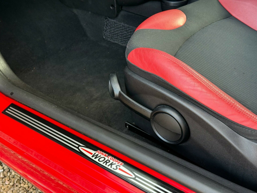 Manor Cars are proud to offer this fantastic example of the Mini John Cooper Works. Finished in Chili Red with a Half Leather Interior. Complete with 2 keys, Comprehensive Service History (14 Services!). As well as being in a fantastic condition inside and out. With sought after options such as: CHILI Pack (£1,650), Visibility Pack (£220), Heated Seats (£205), Multifunction Steering Wheel (£170), Front Centre Arm Rest (£115), Chrome Line Interior (£105) and much more.... Buy with confidence from our friendly, family run business with flexible viewing times 7 days a week, please call for a viewing. All our vehicles are thoroughly checked HPi clear, complete with a certificate. Comprehensive warranty included. We offer a wide range of finance options with low rates including HP, PCP and can also cater for poor credit circumstances. All major credit/debit cards accepted, All part exchanges are welcome uetooth telephone preparation with usb audio interface, bi- xenon headlights & auto height adjust & headlight washers, basic bluetooth function with usb audio, auto air conditioning with cooled glovebox, automatic air conditioning, visibility pack, heated front seats, sports suspension, front foglights, interior lights pack- cooper & cooper s, chrome line interior, auto dimming rear view mirror, storage compartment pack- cooper s, rain sensor with auto headlights activation, bonnet stripes- black, chrome door mirror housings, heated door mirrors & heated windscreen washers, leather cloth mix- cloth & ray leather- rooster red, 6 speakers, black roof, black roof & mirror caps, body colour roof & door mirrors, interior world- carbon black, interior world- redwood red, interior world- tuscan beige, jcw floor mats, mini mobility system, manual air conditioning with cooled glovebox, no smoker package, piano black interior trim, voice control system when with bluetooth, white roof & mirror caps