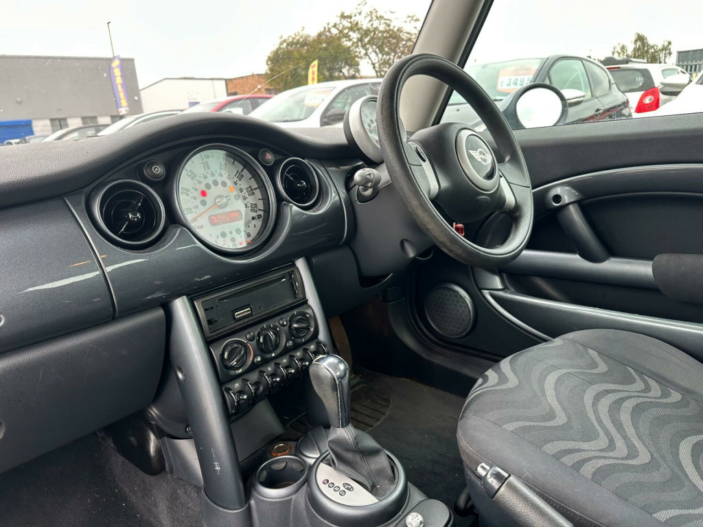 Enjoy peace of mind with this MINI Hatch One, boasting an MOT valid until July 2026. This 2003 model, powered by a 1.6L petrol engine, offers a straightforward driving experience. While it comes with partial service history, the inclusion of manual air conditioning ensures comfort during your journeys.This MINI Hatch One stands out with its low insurance group, making it a more economical choice compared to many other vehicles. The reliable 1.6L engine provides a solid performance for everyday driving. This car represents a practical and accessible option for those seeking the iconic MINI style. in 7 hole alloy wheels when with pepper pack, 15in steel wheels, anthracite interior trim, black bumper inserts when with pepper pack, chrome line exterior when with pepper pack, delete one badge, stereo radio cassette & 6 speakers, manual air conditioning, mini salt pack, on board computer & rev counter, front foglights, interior lights package, mini storage compartment pack, rev counter, rev counter with external temperature gauge, space saver spare wheel, cd changer i- bus preparation, cloth- aqua- black panther
