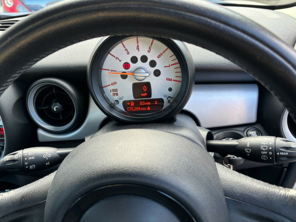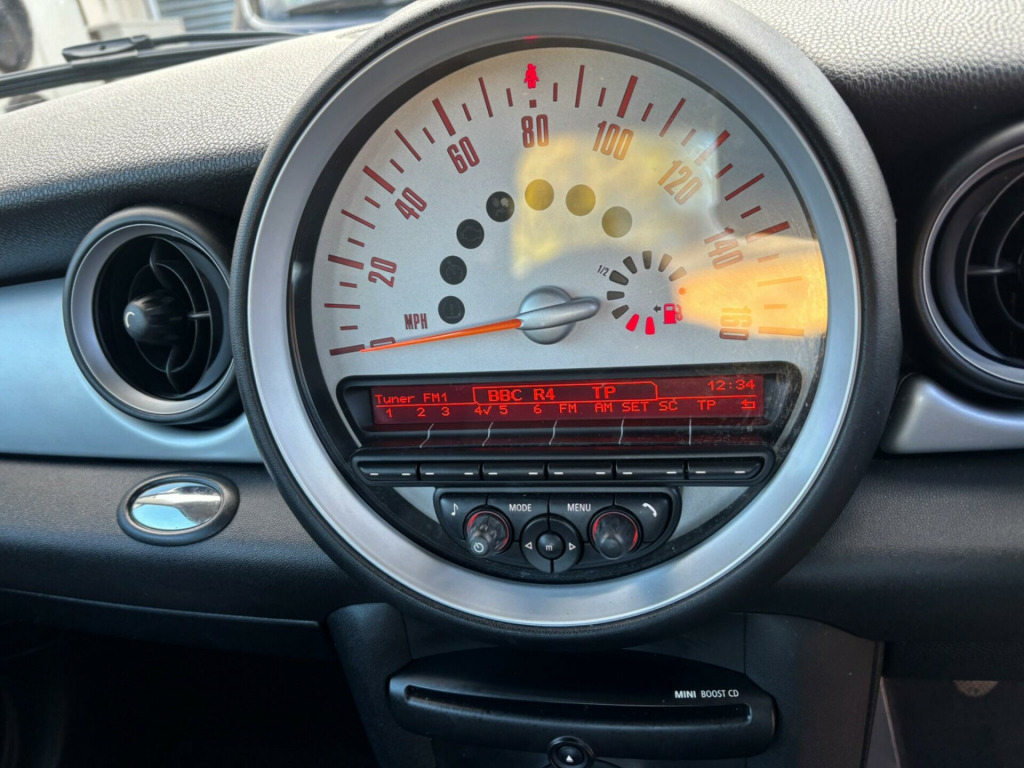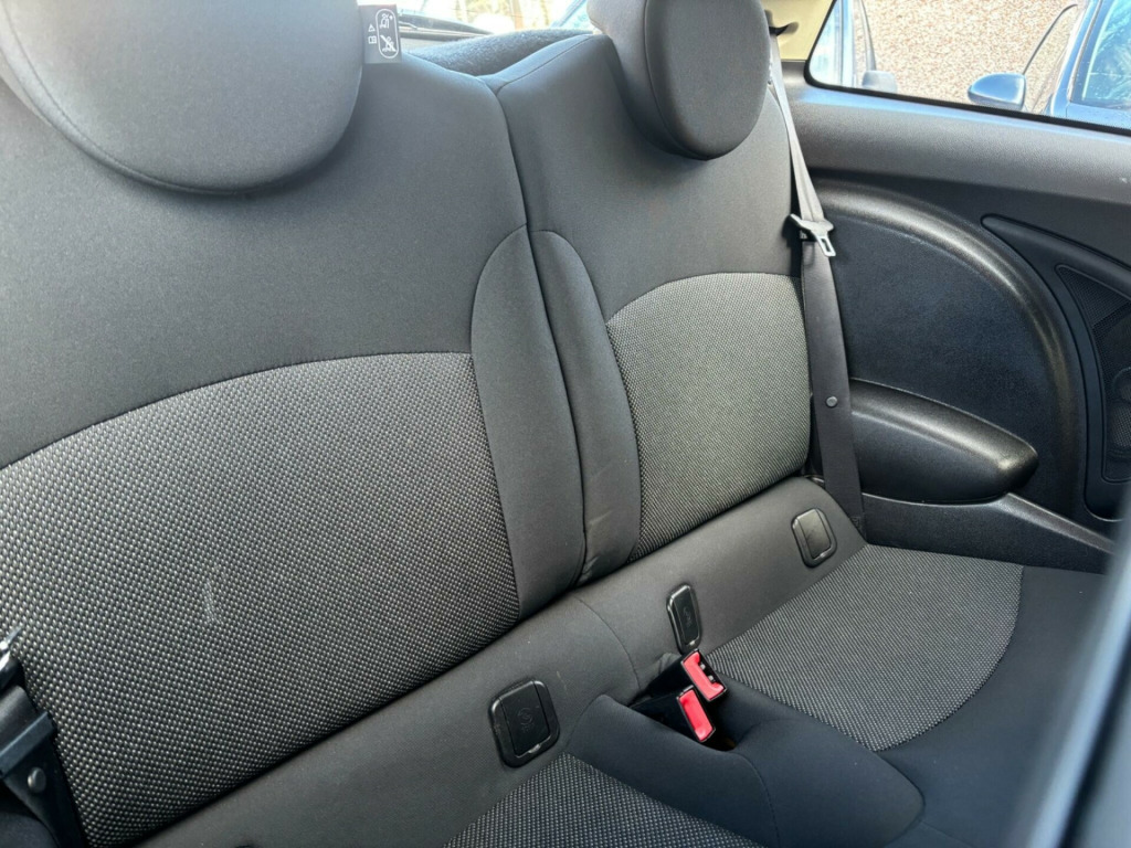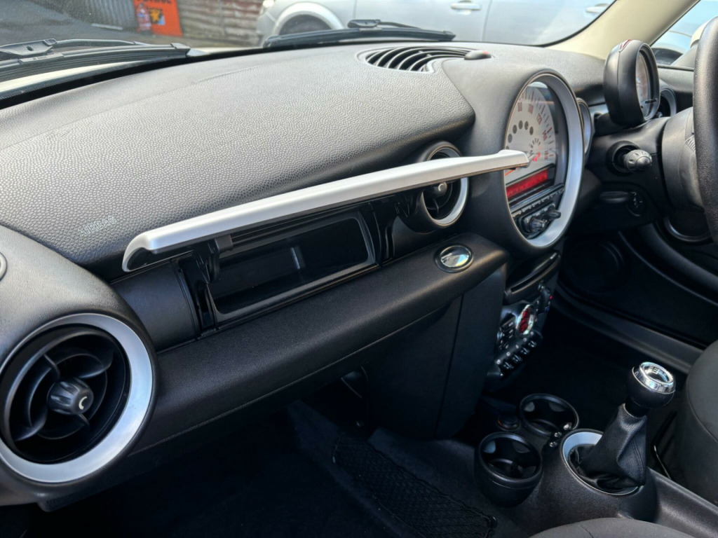 This 2013 MINI Hatch One boasts a full service history and a clear vehicle history check, offering you peace of mind. This 1.6L petrol model comes with a 3 month warranty and its MOT is valid until September 2026. The PEPPER Pack enhances its appeal, while practical features include a rain sensor and automatic headlight activation, manual air conditioning, and a driver's seat with memory function. For your entertainment and connectivity needs, it offers basic Bluetooth functionality with USB audio.The MINI Hatch One is known for its engaging drive, achieving 0-62mph in 10.5 seconds. Its inclusion in a low insurance group makes it an economical choice for many drivers, indicating it is likely to be more affordable to insure than many comparable vehicles. This combination of practicality, enjoyable performance, and cost effective ownership makes this MINI Hatch a compelling option. in steel wheels, 3rd brake light, asc+t - automatic stability control and traction, air conditioning - manual, airbags - driver, airbags - front passenger, airbags - front passenger with deactivation switch, airbags - front side, airbags - head, alarm - thatcham cat1, anti-lock braking system - abs, automatic door window lowering by approx 6mm when door opens, aux-in connection, brake force display, brake pad wear indicator, cbc - cornering brake control, car jack, central locking - activated at 10mph, central locking - remote, child seat isofix attachment, crash sensor - fuel cut-off, crash sensor - hazard warning flashers and interior light, crash sensor - unlocking doors, cupholders - front x2 - rear x1, dab tuner, decorative rings surrounding dashboard instruments, door handles - chrome plated, door handles - interior - chrome plated, door mirrors - electrically adjustable and heated, door sill finishers - metal look and model dependent lettering, dynamic stability control - dsc, ebd - electronic brake-force distribution, electric windows - front - one touch up and down, electronic power steering - speed related, embellisher at bottom edge of all windows - chrome plated, exhaust tailpipe - visible - single - right, external visible vin, gearshift-selector lever and handrake lever gaiters in sensatec, halogen lights for low beam and high beam headlights, handbrake-lever grip - plastic with chrome plated handbrake push button, headlight - beam-throw control electrical with manual adjustment, headlights - chrome bezels, headlights - follow me home, headlining - beige, headrests for all seats - manually adjustable, heated front windscreen washer jets, heated rear window with automatic deactivation, heater with mechanical control and recirculating-air button, hill assist, interior lighting integrated into centre front headliner above interior mirror, interior mirror - mechanical anti-dazzle, interior surface in fine white silver and door rings in black, interior world - carbon black, knee roll in hard plastic on dashboard - carbon black, lashing eyes in luggage compartment, luggage compartment - light, mini mobility system, microfilter, mirror caps in matt black, multiple control arm rear axle, non smoker package, orange indicators, personal profile, radiator grille - black, radio boost cd, roof in body colour, seats - drivers memory function, seats - easy entry access, seats - height adjustable drivers, second radio remote key, side air inlets black with integrated orange indicator, sills-bumper edges-wheel arches - black with model-specific bumper trims, single joint spring strut front axle, speedometer centred in instrument panel, start-stop button, steering column height and length adjustment, steering wheel - 2-spoke plastic, storage options in the trim panels of each front panel as well as centre console, sun visors with integrated vanity mirrors on drivers and passengers sides, tpws - tyre pressure warning system, tailgate handle - black, tool kit in luggage compartment, pepper pack, 15in alloy wheels - light 5-star twin spoke, basic bluetooth function with usb audio, air conditioning - automatic, chrome line exterior, interior light pack, front fog lights, steering wheel - 2-spoke leather, rain sensor and automatic headlight activation, white direction indicators lights, cloth cosmos - carbon black