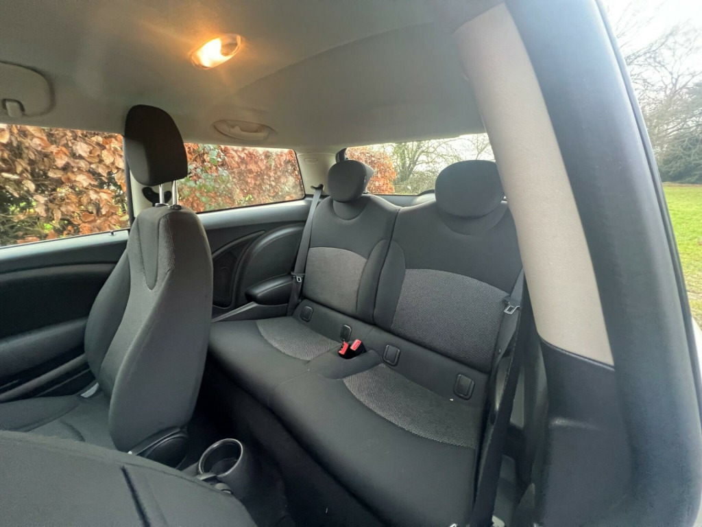 . 15in Steel Wheels, Air Conditioning - Manual, Airbags - Driver, Airbags - Front Passenger, Airbags - Front Passenger with Deactivation Switch, Airbags - Head, Airbags - Head and Thorax, Anti-Lock Braking System - ABS, Car Jack, Central Locking - Remote, Child Seat ISOFIX Attachment, Crash Sensor - Fuel Cut-Off, DAB Tuner, Dynamic Stability Control - DSC, EBD - Electronic Brake-Force Distribution, Electric Windows - Front - One Touch Up and Down, Electric Windows - One Touch Up and Down Front and Rear, Electronic Power Steering - Speed Related, Halogen Lights for Low Beam and High Beam Headlights, Headlight - Beam-Throw Control Electrical with Manual Adjustment, Heated Mirrors and Windscreen Washer Jets, Heated Rear Window with Automatic Deactivation, Hill Assist, Interior World - Carbon Black, MINI Mobility System, Radio BOOST CD, Remote Controlled Alarm System, Roof in Body Colour, Seats - Easy Entry Access, Seats - Height Adjustable Drivers, Second Radio Remote Key, Steering Column Height and Length Adjustment, TPWS - Tyre Pressure Warning System, PEPPER Pack, 15in Alloy Wheels - Light 5-Star Twin Spoke, Basic Bluetooth Function with USB Audio, Air Conditioning - Automatic, Chrome Line Exterior, Interior Light Pack, Front Fog Lights, Steering Wheel - 2-Spoke Leather, Rain Sensor and Automatic Headlight Activation, White Direction Indicators Lights, Cloth Cosmos - Carbon Black. Full service history