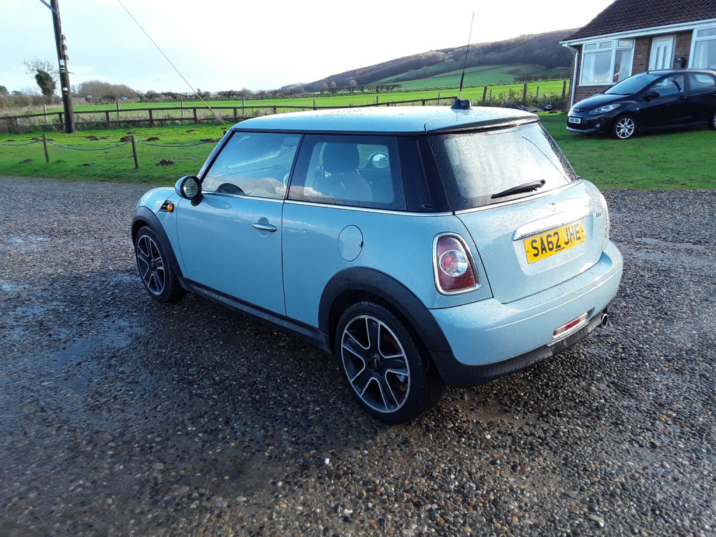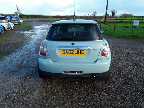 FINISHED IN DUCK EGG BLUE WITH BLACK CLOTH SEATS. 62 REG MINI 1.6 PETROL MINI ONE 3 DOOR.ONLY 83,000 MILES WITH FULL SERVICE HISTORY. 2 REMOTE KEYS. VERY TIDY MINI INSIDE AND OUT. DRIVES VERY WELL.COMES WITH 12 MONTHS M.O.T.AND A FRESH SERVICE TO BRING THE BOOK UP TO DATE. MEDIA SYSTEM BUILT IN.GREAT COLOUR FOR THE CAR.