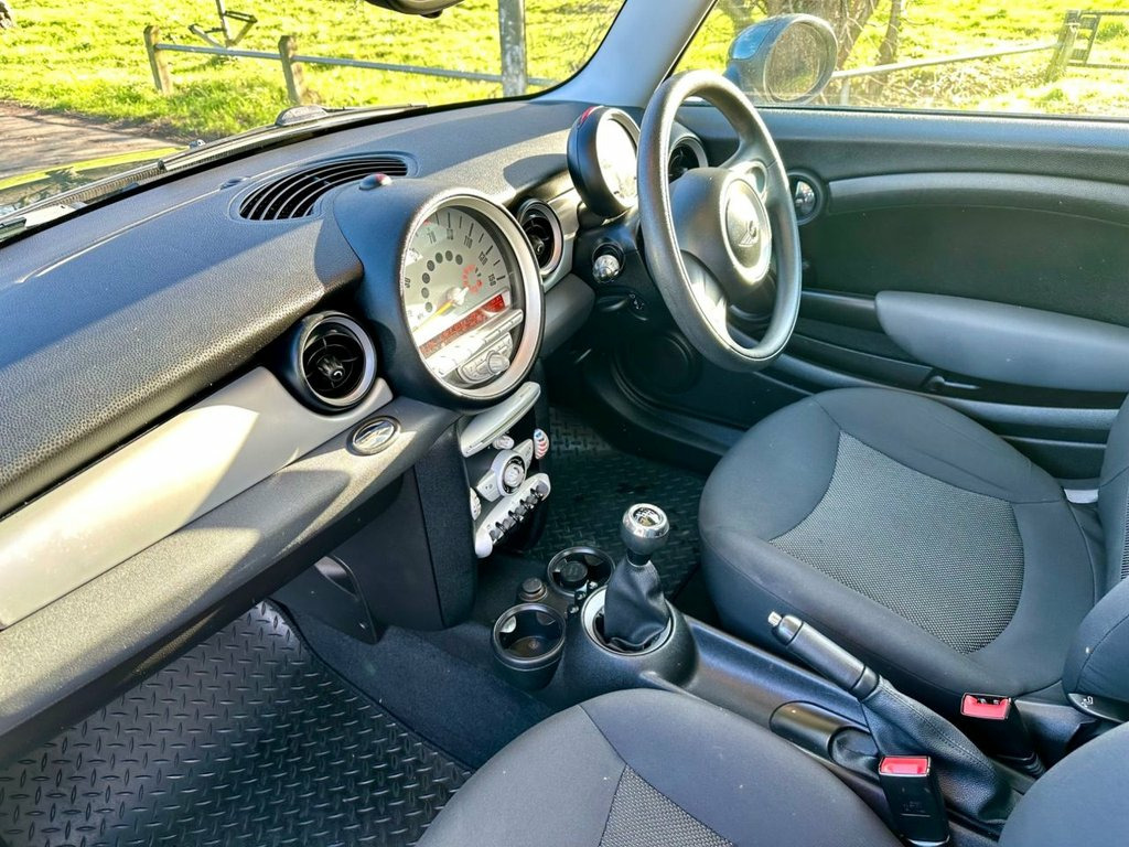 We offer here Mini One 1.6 Petrol Manual, Finished in British Racing Green Metallic with Cosmos Carbon Black Interior with Service History and a specification including, Remote Central Locking (Pebble Key) Power Steering, Electric Windows and Mirrors, Air Conditioning, Height Adjustable Drivers Seat, Alloy Wheels and more 2Spoke Steering Wheel, 3Spoke Sports Leather Steering Wheel &am, 6 Speakers, Body colour lip spoiler, Delete ONE badge, Fine White Silver Interior Trim, Gear & selector & handbrake- art, Interior world- Carbon Black, MINI mobility System, Manual Air Conditioning with cooled glov, No smoker Package, Piano Black Interior Trim with Gravity &, Voice Control System when with Bluetooth, Body colour door mirrors, British Racing Green, Chrome line Exterior, Cloth- Cosmos- Carbon Black