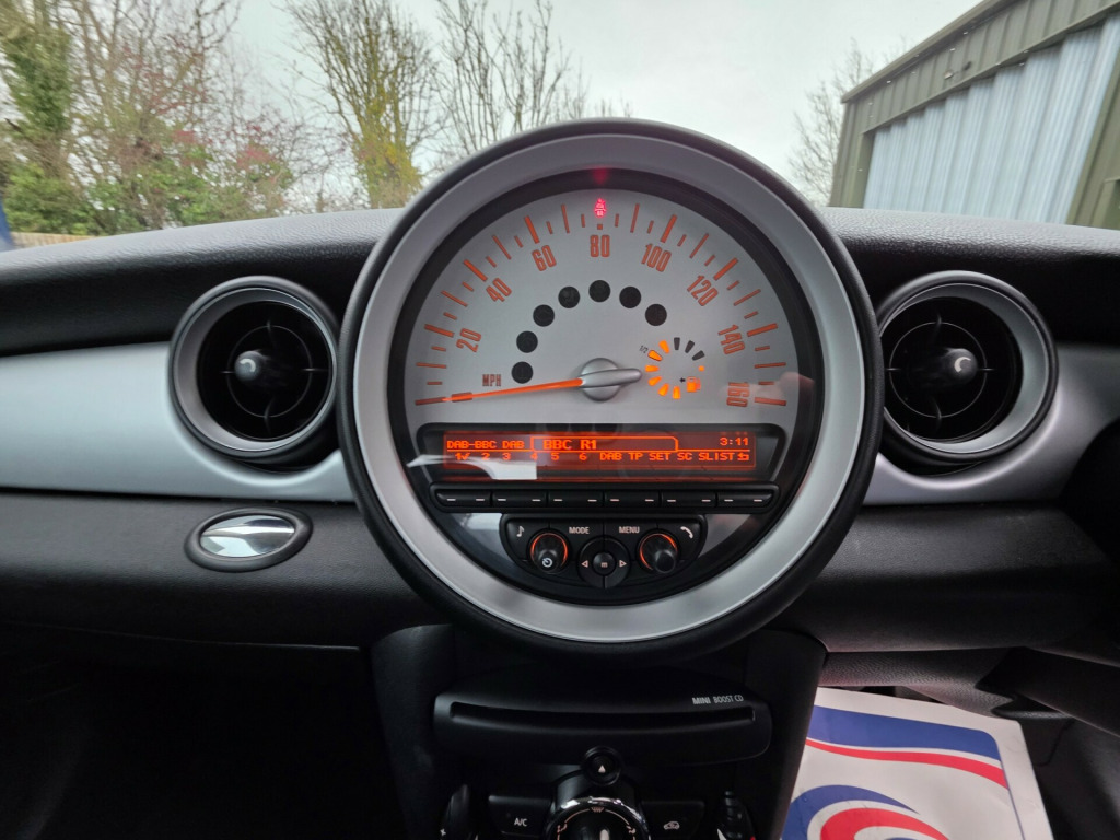 We Are Delighted To Offer This Very Smart Mini Hatch 1.6 One Hatchback 2012/12 plate, with just 31,405 miles on the clock is the perfect city car - not only is it compact and efficient, but it's also ULEZ compliant, ensuring you can drive it in London without any issues. This 3-door hatchback runs on petrol and has a manual transmission, with MOT valid until 21/11/2026. The car comfortably seats 4 and comes with 15in steel wheels, chrome plated door handles, and electrically adjustable and heated door mirrors. The interior is finished in pepper white with cloth cosmos upholstery in carbon black. With its Euro 5 engine delivering 98 horsepower, this Mini Hatch offers a fun and responsive driving experience while being economical and practical for daily use. in steel wheels, door handles - chrome plated, door mirrors - electrically adjustable and heated, electric windows - front - one touch up and down, embellisher at bottom edge of all windows - chrome plated, exhaust tailpipe - visible - single - right, headlights - chrome bezels, heated front windscreen washer jets, heated rear window with automatic deactivation, mini mobility system, mirror caps in matt black, multiple control arm rear axle, orange indicators, radiator grille - black, roof in body colour, side air inlets black with integrated orange indicator, sills-bumper edges-wheel arches - black with model-specific bumper trims, tailgate handle - black, 3rd brake light, halogen lights for low beam and high beam headlights, headlight - beam-throw control electrical with manual adjustment, headlights - follow me home, asc+t - automatic stability control and traction, airbags - driver, airbags - front passenger, airbags - front passenger with deactivation switch, airbags - front side, airbags - head, alarm - thatcham cat1, anti-lock braking system - abs, cbc - cornering brake control, central locking - activated at 10mph, central locking - remote, child seat isofix attachment, crash sensor - fuel cut-off, crash sensor - hazard warning flashers and interior light, crash sensor - unlocking doors, dynamic stability control - dsc, ebd - electronic brake-force distribution, hill assist, second radio remote key, air conditioning - manual, automatic door window lowering by approx 6mm when door opens, car jack, cupholders - front x2 - rear x1, decorative rings surrounding dashboard instruments, door handles - interior - chrome plated, door sill finishers - metal look and model dependent lettering, external visible vin, gearshift-selector lever and handrake lever gaiters in sensatec, handbrake-lever grip - plastic with chrome plated handbrake push button, headlining - beige, headrests for all seats - manually adjustable, heater with mechanical control and recirculating-air button, interior lighting integrated into centre front headliner above interior mirror, interior mirror - mechanical anti-dazzle, interior surface in fine white silver and door rings in black, interior world - carbon black, knee roll in hard plastic on dashboard - carbon black, lashing eyes in luggage compartment, luggage compartment - light, microfilter, non smoker package, personal profile, seats - drivers memory function, seats - easy entry access, seats - height adjustable drivers, speedometer centred in instrument panel, start-stop button, steering column height and length adjustment, steering wheel - 2-spoke plastic, storage options in the trim panels of each front panel as well as centre console, sun visors with integrated vanity mirrors on drivers and passengers sides, tool kit in luggage compartment, aux-in connection, dab tuner, radio boost cd, brake force display, brake pad wear indicator, electronic power steering - speed related, single joint spring strut front axle, tpws - tyre pressure warning system