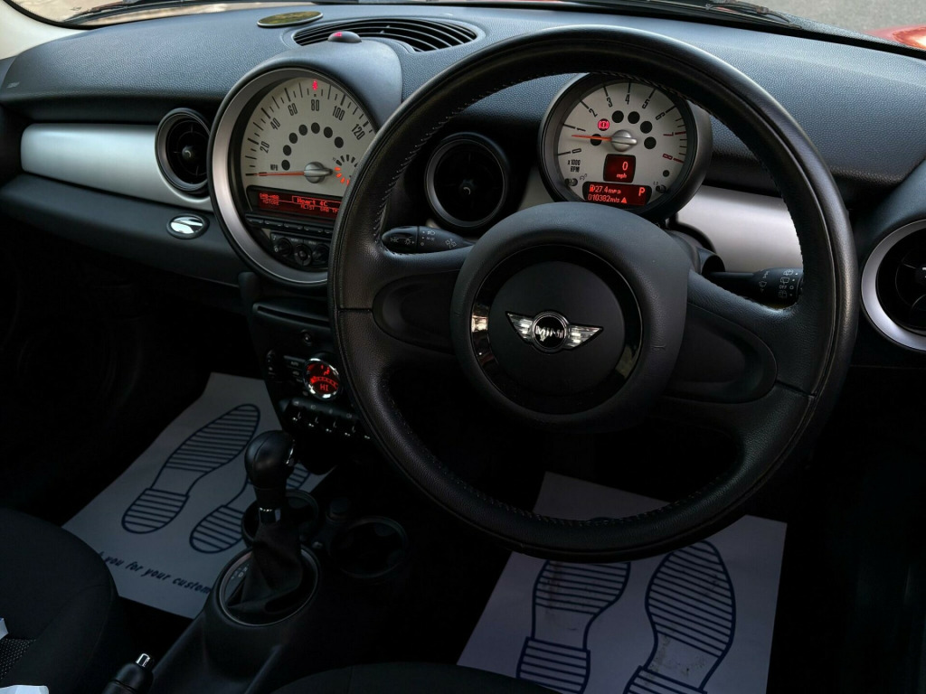 Blackheath Motor Group Are Humbled To Offer This Rare Super Low Mileage Mini One 1.6 2011/61 Finished in Red Metallic With Contrasting Black/Mirrors Interior. A Colour Combination Which Needs to Be Seen in Person as it Looks Great. Only Covered A Low and Vosa Verified 9,000 Miles From New With Service History. Just Been Recently Serviced at 9K in Nov 25. Very Well Maintained Vehicle Via Just 1 Owner From New. Presented With 2 Keys. It Even Has The Original Dealer Plates From 2011! MOT: OCT 26. High Specification From Factory Including: Alarm, Multi Airbags, Electric Windows, Electric Mirrors, Air Condition, Climate Control, Traction Control, Mini In Car Entertainment With AUX and Bluetooth, Upgraded Pepperpot Alloy Wheels, and Much More. This Mini Has Been Very Well Looked After. A Very Rare Opportunity To Own One of The Lowest Mileage Mini's On Sale Today. Blackheath Motor Group is a Family Run Business Which Prides Itself in Not Only Supplying Motor Vehicles, But Also Building Positive Relationships with its Satisfied Customers. All of Our Stock is Carefully Picked From Main Dealers Throughout the UK. Please Visit Our Website or Call Us To Book an Appointment on 07543455948 / 02084655506. We Are Always Happy to Give Car Related Advice and Answer Any Questions.3 Month Warranty. Free 1 Year AA Breakdown Cover. in steel wheels, 2 spoke leather steering wheel when with salt pack, 2spoke steering wheel, 3spoke sports leather steering wheel & gearknob when with bluetooth prep, 6 speakers, basic bluetooth function with usb audio when with radio visual boost, basic bluetooth function with usb audio when with satnav, fine white silver interior trim, gear & selector & handbrake- artificial leather, interior world- carbon black, interior world- carbon black when with gravity & lounge leather, interior world- polar beige, mini mobility system, manual air conditioning with cooled glovebox, model designation deletion, no smoker package, piano black interior trim with gravity & lounge leather, telephone usb audio interface, voice control system when with bluetooth, 15in alloy wheels - light 7-hole, basic bluetooth function with usb audio, air conditioning - automatic, chrome line exterior, interior light pack, front fog lights, steering wheel - 2-spoke leather, cloth cosmos - carbon black