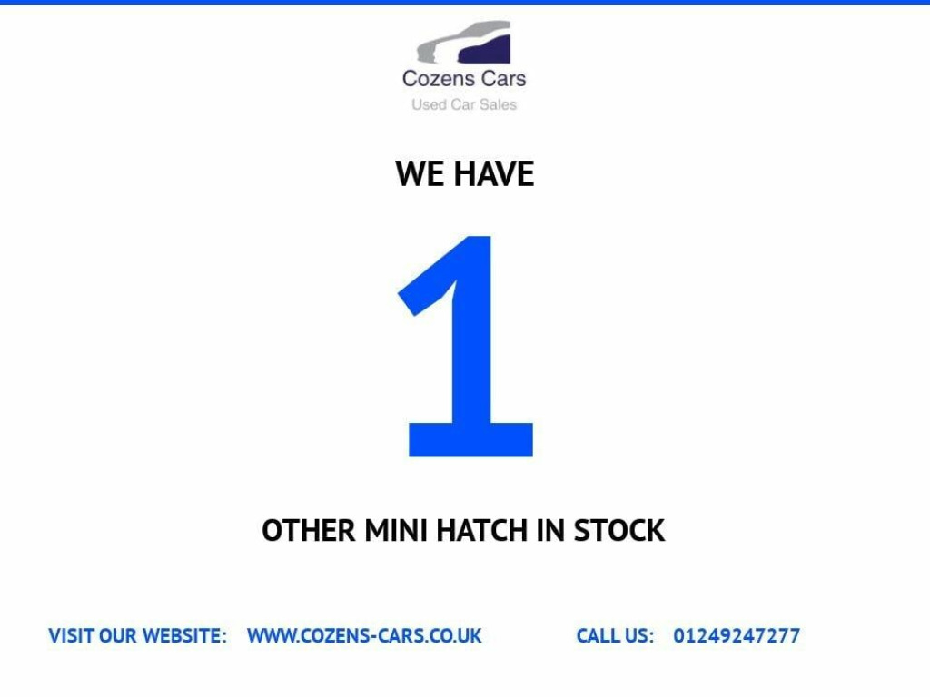 . 12V Socket in Centre Console, 17in Alloy Wheels - Roulette Spoke, 3 Point Seatbelts on all Seats, 4 Lashing Eyes in Luggage Compartment, 6 Speakers - in Front Door Trims and Underneath Front Seats, 6.5in Screen with LED Ring, Air Conditioning - Manual, Airbags, Alarm System, Anti-Lock Braking System - ABS, Automatic Headlight Activation Switch, Bluetooth for Compatible Mobile Phone - with Audio Streaming, Bonnet Scoop, Carbon Black Colour Line - Knee Roll and Door Armrests, Chrome Highlights, Chrome Line Exterior, Chrome Line Interior, Cruise Control with Brake Function, Cup Holders, Door Sill Strips - Metal with Cooper S, Door Storage Compartments, Dynamic Brake Lights, Dynamic Stability Control - DSC, Electric Windows, Electro-Mechanical Steering with Speed Dependant Steering Assistance, Electronic Vehicle Immobiliser, Exhaust Tailpipe - Double - Central with Chrome Finishers, FM Tuner and DAB Digital Radio, Foldable Rear Seats 60-40, Front and Rear ISOFIX - including Front Passenger Airbag Deactivation, Fuel Filler Cap in Chrome, Gear-Change Indicator Display, Glove Compartment, Headliner - Satellite Grey, Heated Rear Window, Heated Windscreen Washer Jets, Instrument Cluster, Interior Lighting, LED Headlights with Closed Ring as Daytime Driving Lights, LED Reading Lights - Vanity Mirror Lights - Front Footwell Lights - Spotlights on Front Seats, Leatherette Gearshift Lever and Handbrake Gaiters, MINI E-Call, MINI Logo Projection on Floor from Drivers Exterior Mirror, MINI TeleServices, MINI Yours Fibre Alloy Interior, MINI Yours Leather Steering Wheel, Mechanical Seat Adjustment, Model Logo Cooper S on Right of Tailgate, Multifunction Controls for Steering Wheel, On-Board Computer, Performance Control, Rain Sensor Window Wipers, Rear Fog Light, Rear LED Lights with Union Jack Design, Rear Window Wiper, Roof and Mirror Caps - Body-Colour, Side Scuttle Panels with Integrated Indicators, Start-Stop Toggle including Keyless Go, Steering Column Height and Length Adjustment, Storage - Pockets on Back of Front Seats, Sun Visor with Vanity Mirrors, Sun-Heat Protection Glass, Tool Kit in Luggage Compartment, Two-Tone Horn, Tyre Pressure Monitoring System, White Direction Indicators Lights, Comfort Pack, Darkened Rear Glass, Headliner - Anthracite, Heated Front Windscreen, Interior Surfaces - Piano Black, MINI Yours Lounge Leather - Carbon Black, Navigation Pack, Roof and Mirror Caps - Black, Thunder Grey.