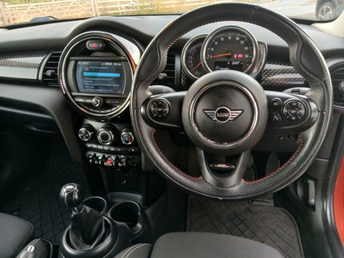 . 12Volt Socket in Front Centre Console, 16in Alloy Wheels - Loop Spoke in Silver, 3 Point Seatbelts on all Seats, 3rd Brake Light - LED Along Top of Rear Window, Air Conditioning - Manual, Airbags for Driver and Front Passenger - 6 Airbags as Standard, Alarm and Immobiliser - Thatcham CAT 1, Anti-Lock Braking System - ABS, Automatic Door Window Lowering by Approx 6mm When Door Opens, Bluetooth Hands Free Function with USB Audio, Boot Release via Remote Control, Brake Pad Wear Indicator, Chrome Bezels around Rear Lights and Headlights, Chrome-Plated Fuel Filler Cap in Rear Right Side Panel - Linked to Central Locking, Colour Line - Carbon Black, Condition Based Service, Crash Sensor, Cupholders - Two in Front and One in the Rear Centre Console, DAB Tuner, DTC - Dynamic Traction Control with EDLC - Electronic Differential Lock Control, Decorative Rings Surrounding Dashboard Instruments in Chrome Plated, Door Handles - Chrome Plated, Door Sill Finishers - Metal Look and Model Dependent Lettering, Dynamic Stability Control - DSC, Easy Entry Access to the Rear Seats and Memory Function for Driver's Seat Base, Engine Scoop in Body Colour, Exhaust Tailpipe - Visible Double Round Central with Chrome Finishers, Exterior Mirrors - Aspheric on Drivers Side - Electrically Adjustable, External Visible VIN, Foldable Rear Backrest 60-40, Follow Me Home Function, Front Passenger ISOFIX and Airbag De-Activation Switch, Front Side Indicators - White, Fuel Pump Automatic Cut-Off in Crash Situation, Gearshift Lever Knob - Leather, Gearshift-Selector Lever and Handbrake Lever Gaiters in Sensatec Artificial Leather, Handbrake Lever Grip - Plastic, Headlight - Beam-Throw Control Electrical with Manual Adjustment, Headlights and Daytime Running Lights - LED, Headliner - Satellite Grey, Headrests x4 - Manually Adjustable - Two Rear Folding Headrests, Heated Mirrors and Windscreen Washer Jets, Heated Rear Window with Automatic Deactivation, Heated Window Heater, Intelligent Emergency Calling - E-Call, Interior Door Handles - Chrome Plated, Interior Lights - Integrated into Centre Front Headliner, Interior Mirror - Mechanical Anti-Dazzle, Interior Surface in Black Chequered Design, Interior Trim - Black Chequered, LED Fog Lights, Lashing Eyes in Luggage Compartment, Locking System with Central Locking, Luggage Compartment - Light, MINI Central Display with LED Ring, MINI Mobility System, MINI TeleServices, MINIMALISM Fuel Saving Technology, Mechanical Seat Adjustment - Six Way Drivers Seat, Microfilter, Mirror Caps in Body Colour, Multifunction Controls for Steering Wheel, Non Smoker Package, Oddments Trays at Rear - Right and Left, On-Board Computer, Performance Control, Personal Profile, Power Steering with Servotronic, Radiator Grille - Chrome Border with Honeycomb Structure in Batt Matt with S Logo, Radio with Four-Line Display, Rear Fog Light, Rear Window Wiper, Reversing Light, Revolution Counter, Roof Spoiler Painted in Roof Colour, Roof in Body Colour, Security Locking Wheel Bolts, Side Scuttles Chrome-Plated with Red S Lettering with Integrated Direction Indicator White, Sills - Bumper Edges - Wheel Arch Cover in Black, Speakers - Two Mid Range in Front Doors and Two Woofers under Front Seats, Speedometer on Steering Column, Sport Leather Steering Wheel, Sport Seats for Driver and Front Passenger, Stainless Steel Embellisher at Bottom Edge of all Windows, Start-Stop Button with Keyless Start, Steering Wheel Column Adjustment Mechanically in Height and Length, Storage Options, Sun Visors with Integrated Vanity Mirrors on Drivers and Passengers Sides, TPWS - Tyre Pressure Warning System, Tailgate Handle - High Gloss Black, Tool Kit in Luggage Compartment, Twin Horns, White Indicators, Window Lifts - Electrical for Drivers and Front Passengers Sides, Double Stripe Cloth - Carbon Black, Navigation, Roof and Mirror Caps - Black, Seat Heating for Driver and Front Passenger - 3-Stage Heating Adjustment, Solaris Orange.