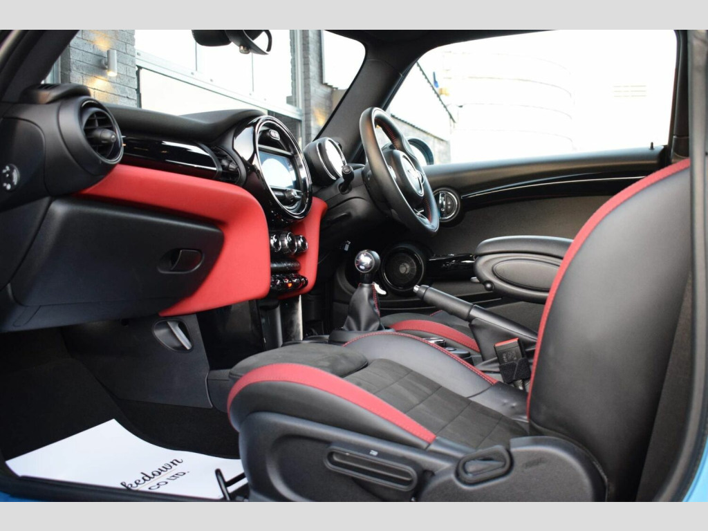 2019 19 MINI 2.0 Cooper S Sport finished in Electric Blue Metallic with Glowing Red Colourline Interior Package. This example has covered 38850 miles which is supported by excellent comprehensive main dealer service history stored in the iDrive. A totally standard, unmodified two owner car which is presented in superb condition both mechanically and cosmetically inside and out. Supplied with two keys and all correct documentation, handbooks etc and this car has been subjected to our usual strict pre delivery inspection and preparation process ensuring all cosmetic and mechanical elements are in good order. Superb spec with a long list of desirable optional features fitted which include: Navigation Plus Pack, Comfort Plus Pack, Driving Assistant Pack, Harman Kardon Hi-Fi System, MINI Head-Up Display, Colour Line - Glowing Red, Darkened Rear Glass, Piano Black Exterior Trim, Interior Surfaces - Piano Black, Bonnet Stripes - Black, Roof and Mirror Caps - Black and Dinamica/Leather - Carbon Black.
