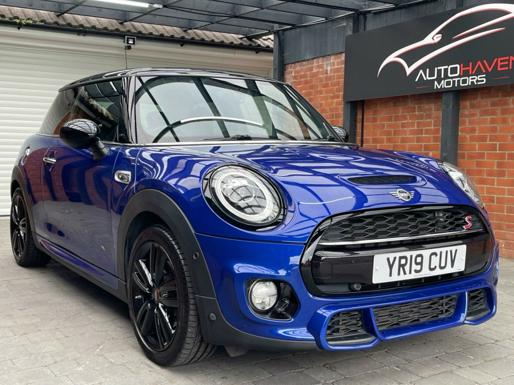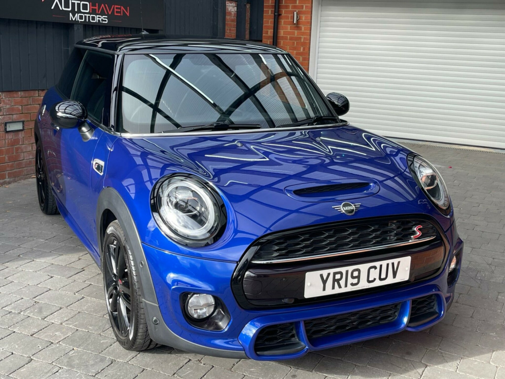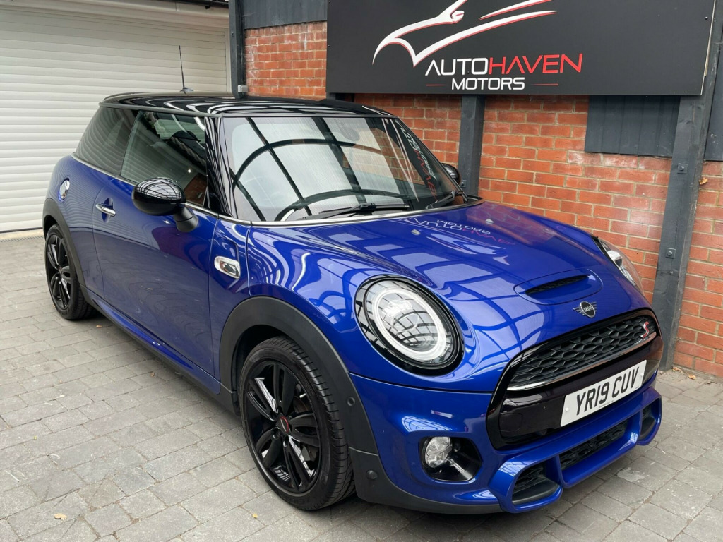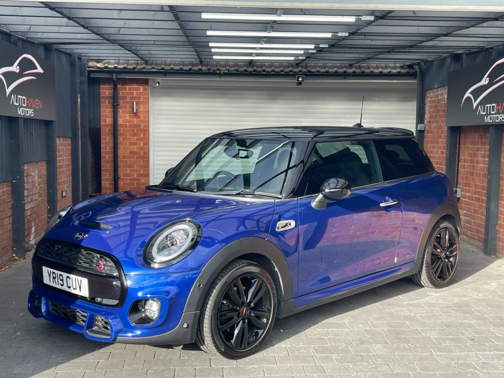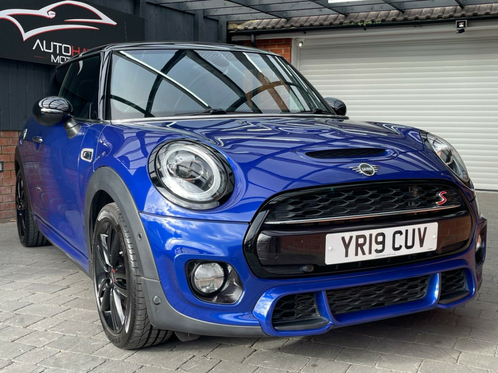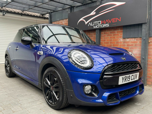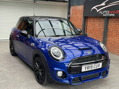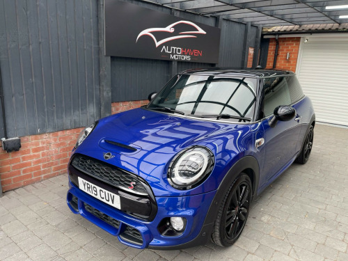 DEPOSIT NOW TAKENREV CAM+H&K+COMFORT PLUS PACKAutohaven Motors Limited are delighted to be offering a lovely 2019/19 Plate MINI Hatch 2.0 Cooper S Sport Euro 6 (s/s) 3dr. This car has MOT till October 2026 and comes with a Full MINI Service History. This 2019 MINI Hatch Cooper S Sport is a superb example of a well maintained performance hatchback. Powered by a responsive 2.0 litre petrol engine, this Euro 6 compliant model offers an exhilarating driving experience. It comes equipped with the desirable Comfort Plus Pack, which includes climate control, heated seats, and comprehensive parking assistance with front and rear sensors, as well as a rear camera. Further enhancing the cabin experience is the Harman Kardon Hi Fi System, providing a premium sound experience, and Bluetooth connectivity with audio streaming for your compatible mobile phone.The Cooper S Sport variant truly shines with its impressive performance, achieving 0 to 62 miles per hour in just 6.8 seconds. This acceleration figure demonstrates its superior capability compared to many other vehicles in its class. The inclusion of LED headlights with a distinctive closed ring as daytime driving lights not only improves visibility but also adds to the car's modern aesthetic. Manual air conditioning ensures a comfortable environment for all occupants.This is a Superb example. HPI CLEAR, Comes with 2 KEYS all the manuals. FINANCE OPTIONS AVAILABLE SO DO CALL US. PART EXCHANGE ALSO CONSIDERED. OUR CARS ARE READY TO BE DRIVEN AWAY SAME DAY. Please call for more info. VIEWING BY APPOINTMENT ONLY. AVAILABLE MONDAY- SUNDAY 9AM TILL LATE. **PRICED VERY COMPETITIVELY** FINANCE AVAILABLE+NATIONWIDE DELIVERY AVAILABLE.EXTENDED WARRANTY AVAILABLE. mfort plus pack, harman kardon hi-fi system, darkened rear glass, piano black exterior trim, roof and mirror caps - black, dinamica-cloth - carbon black, 12v socket in centre console, 17in alloy wheels - track spoke in black, 3 point seatbelts on all seats, 4 lashing eyes in luggage compartment, 4 speakers - in front door trims and underneath front seats, 6.5in screen with led ring, air conditioning - manual, airbags, alarm system, anti-lock braking system - abs, automatic headlight activation switch, bluetooth for compatible mobile phone - with audio streaming, bonnet scoop, carbon black colour line - knee roll and door armrests, chrome highlights, cruise control with brake function, cup holders, door storage compartments, dynamic brake lights, dynamic stability control - dsc, electric windows - front, electro-mechanical steering with speed dependant steering assistance, electronic vehicle immobiliser, exhaust tailpipe - double - central with chrome finishers, fm tuner and dab digital radio, foldable rear seats 60-40, front and rear isofix - including front passenger airbag deactivation, fuel filler cap in chrome, gear-change indicator display, glove compartment, headliner - anthracite, heated rear window, heated windscreen washer jets, instrument cluster, interior lighting, interior surface - black chequered, john cooper works aerodynamic kit, john cooper works leather steering wheel, john cooper works roof spoiler, john cooper works sport seats, led headlights with closed ring as daytime driving lights, led reading lights - vanity mirror lights - front footwell lights - spotlights on front seats, leatherette gearshift lever and handbrake gaiters, mini e-call, mini logo projection on floor from drivers exterior mirror, mini teleservices, mechanical seat adjustment, model logo cooper s on right of tailgate, multifunction controls for steering wheel, on-board computer, performance control, radiator grille - chrome border with honeycomb structure - including s badge, rain sensor window wipers, rear fog light, rear led lights with union jack design, rear window wiper, roof and mirror caps - body-colour, side scuttle panels with integrated indicators, start-stop toggle including keyless go, steering column height and length adjustment, storage - pockets on back of front seats, sun visor with vanity mirrors, sun-heat protection glass, tool kit in luggage compartment, two-tone horn, tyre pressure monitoring system, white direction indicators lights