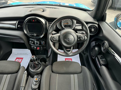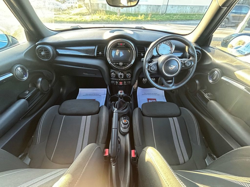 Available now is this 2019 MINI Hatch 2.0 Cooper S Sport 3dr Manual, a standout example finished in the stunning Electric Blue metallic, perfectly complemented by gloss black alloy wheels, roof, and mirror caps for an unmistakably sporty look. Having covered just 35,000 miles from new with 4 recorded services, this Cooper S has been meticulously maintained and offers both performance and style in equal measure. Powered by a lively 2.0-litre petrol engine producing 192 ps, paired with a slick 6-speed manual gearbox, it delivers the exhilarating go-kart handling that MINI is famous for. The Sport trim enhances its dynamic character, featuring John Cooper Works body styling, sports seats, multifunction steering wheel, MINI Driving Modes, dual-zone climate control, Bluetooth connectivity, DAB digital radio, and LED headlights. Inside, the cabin combines premium materials with MINI's iconic design flair, making every journey a fun and engaging experience. With its eye-catching Electric Blue finish, low mileage, excellent service record, and thrilling performance, this MINI Cooper S Sport is the perfect choice for those seeking a stylish and spirited hatchback with genuine driving excitement. 12V Socket in Centre Console, 17in Alloy Wheels - Track Spoke in Black, 3 Point Seatbelts on all Seats, 4 Lashing Eyes in Luggage Compartment, 4 Speakers - in Front Door Trims and Und, 6.5in Screen with LED Ring, Air Conditioning - Manual, Airbags, Alarm System, Anti-Lock Braking System - ABS, Automatic Headlight Activation Switch, Bluetooth for Compatible Mobile Phone - , Bonnet Scoop, Carbon Black Colour Line - Knee Roll and, Chrome Highlights, Cruise Control with Brake Function, Cup Holders, Dinamica-Cloth - Carbon Black, Door Storage Compartments, Dynamic Brake Lights, Dynamic Stability Control - DSC, Electric Blue, Electric Windows - Front, Electro-Mechanical Steering with Speed D, Elec
