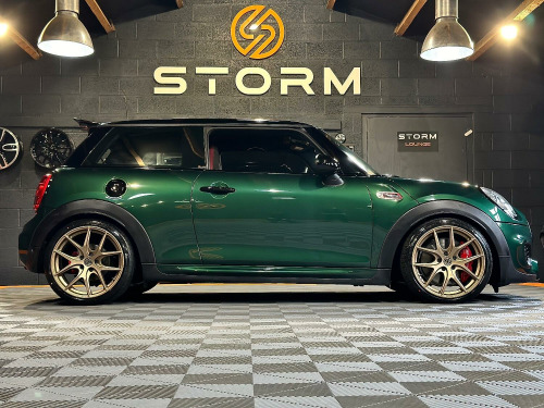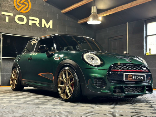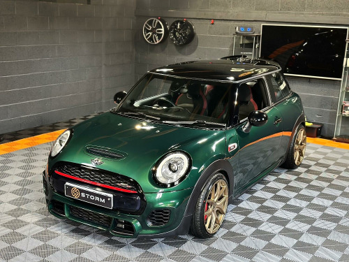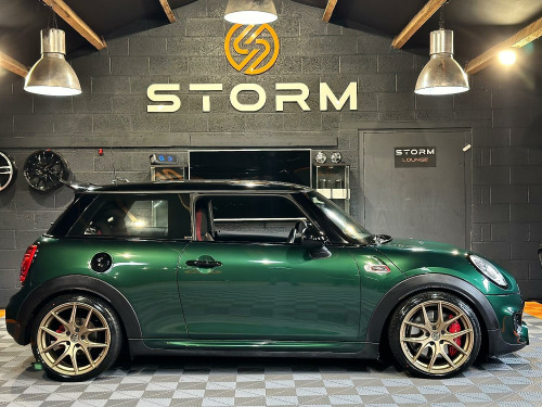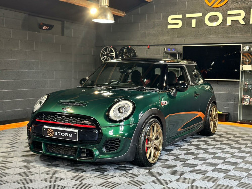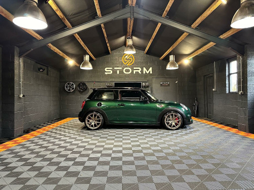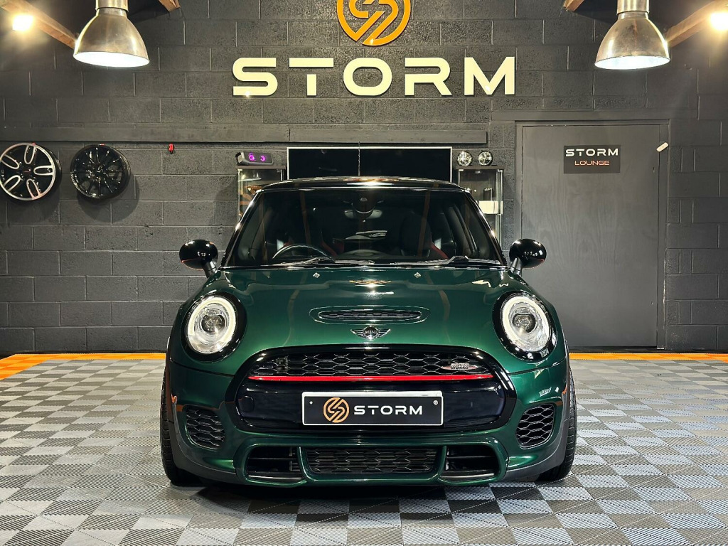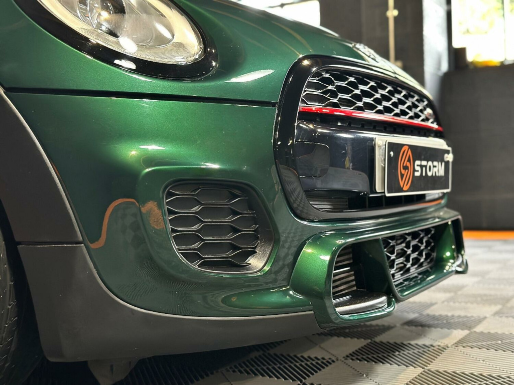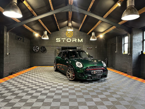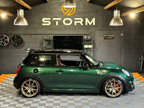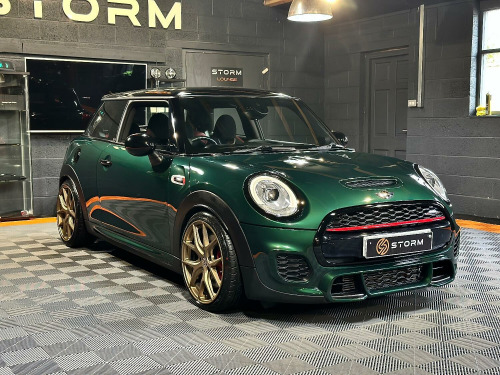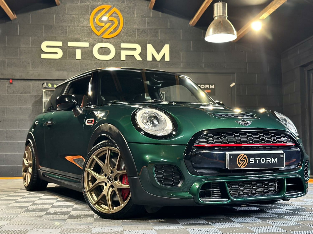 This is one very special example of the Mini JCW, presented in the stunning British Racing Green with Contrasting Red Decals. Surely one of the finest examples available for sale today. Supplied with a full service history and MOT this car has wanted for nothing and is presented in immaculate condition with a machine provenance. The specification includes MEDIA XL - TECH PACK - HEADS UP DISPLAY - NAVIGATION XL - MINI DRIVING MODES - SPORTS AUTO - JCW RECARO SEATS - HARMAN KARDON UPGRADED SOUND - CARBON EFFECT DASH TRIM - ADAPTIVE CRUISE CONTROL - SELF PARKING - REAR PDC - REAR CAMERA Along with some great upgrades 18 STORM ALLOYS FINISHED IN LAMBORGHIN SATIN BRONZE - CARBON EXHAUST TIPS - REAR SPOILER EXTENSIONS - 25MM LOWERING BY EIBACH AND A FULL DECHROME. We would be happy to take your part exchange and can arrange finance packages to suit. At Storm we prepare our cars to the very highest standard and are very proud of what we do, feel free to visit our website storm-uk.com to find out a little more about us and what our customers have to say.