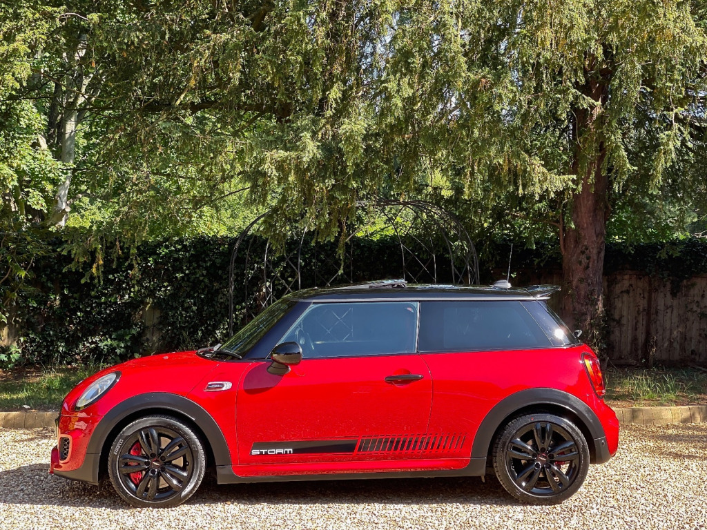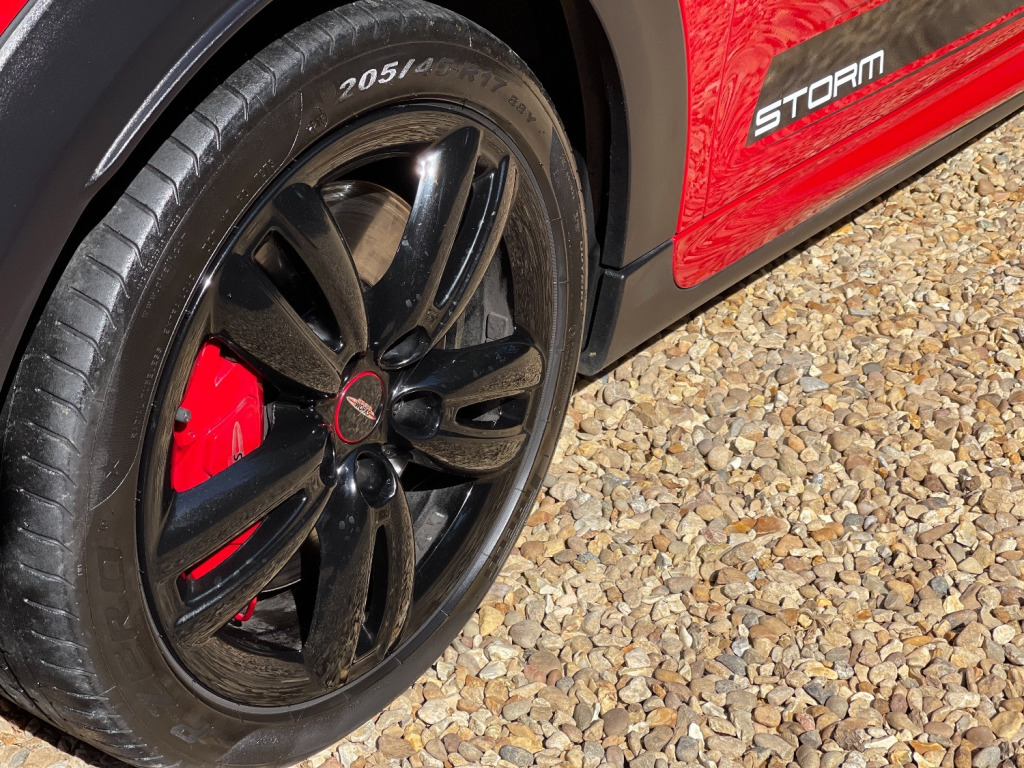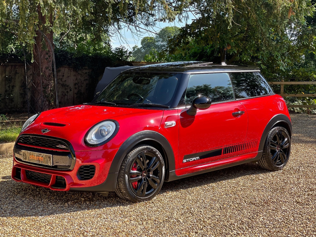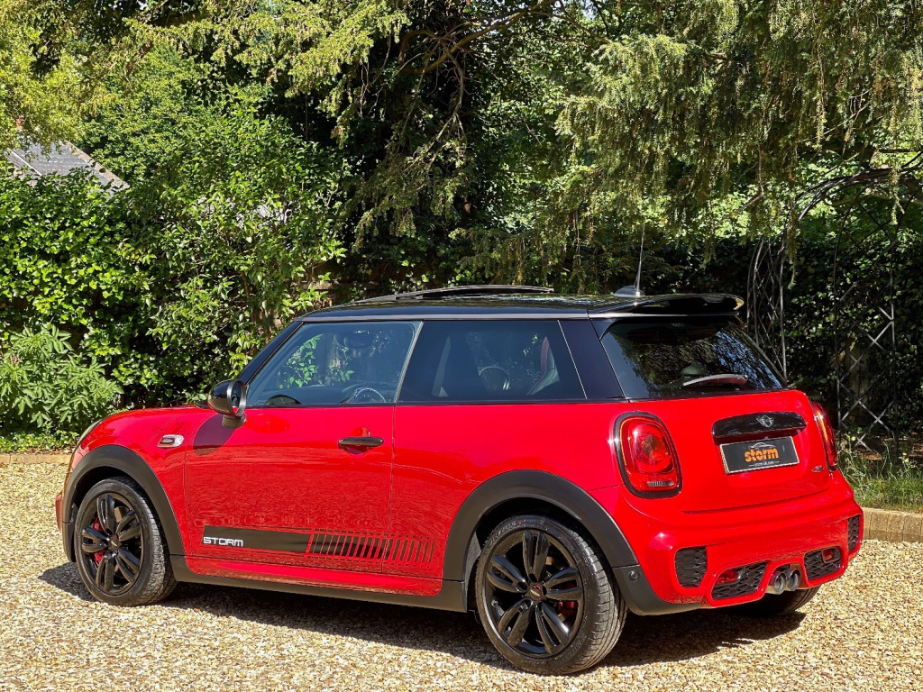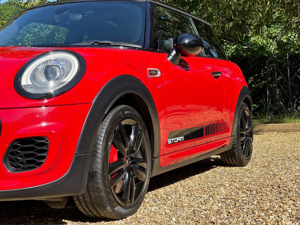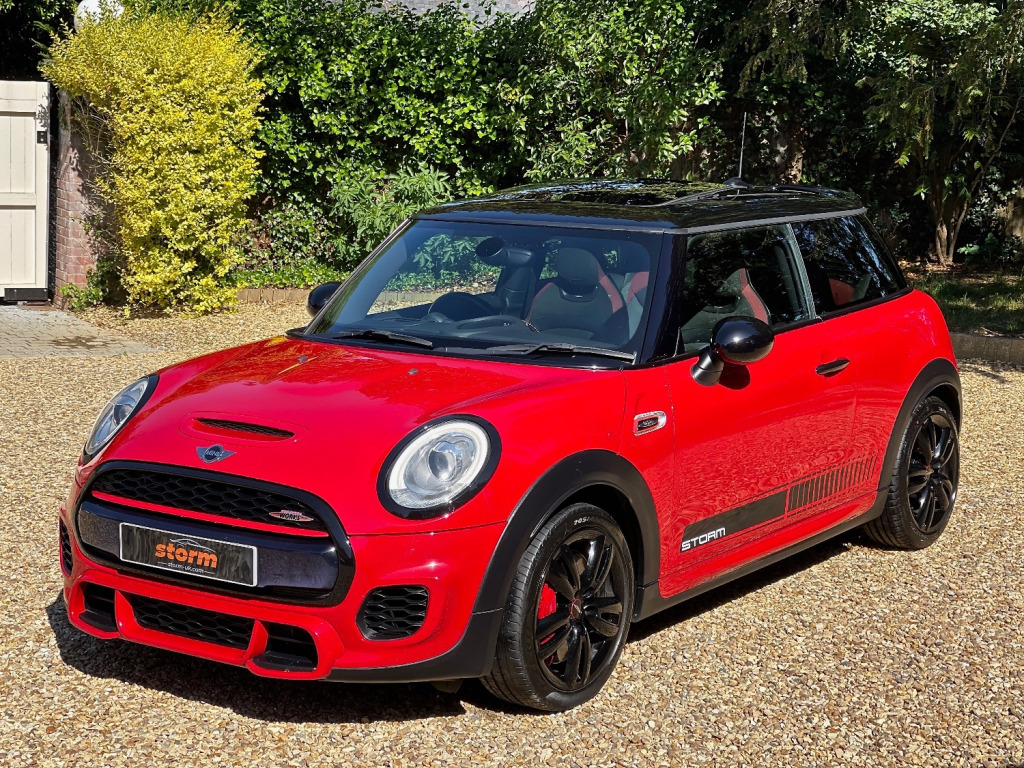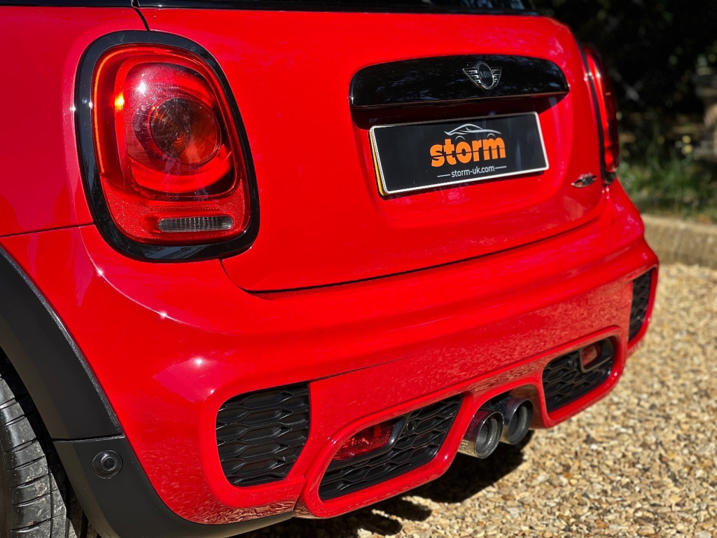 At Storm we are extremely proud to be able to offer this stunning JCW in Chilli Red. The car is virtually unmarked as can be seen in the photos. Looking great with full de chrome and contrasting Black roof, Mirrors and Alloys. Specification wise this JCW has FULL DECHROME - BLACK ALLOYS - PANORAMIC ROOF - HEADS UP DISPLAY - MEDIA XL - NAVIGATION XL - HEATED FRONT SEATS - HEATED FRONT SCREEN - DUAL CLIMATE CONTROL - UNIQUE GRAPHICS AND A FULL SERVICE HISTORY. We truly believe it would be difficult to find a better example for sale today. At Storm we would be happy to look at your part exchange and can arrange finance through our finance partners. We truly believe our preparation process is second to none. Feel free to visit to see what our customers have to say.