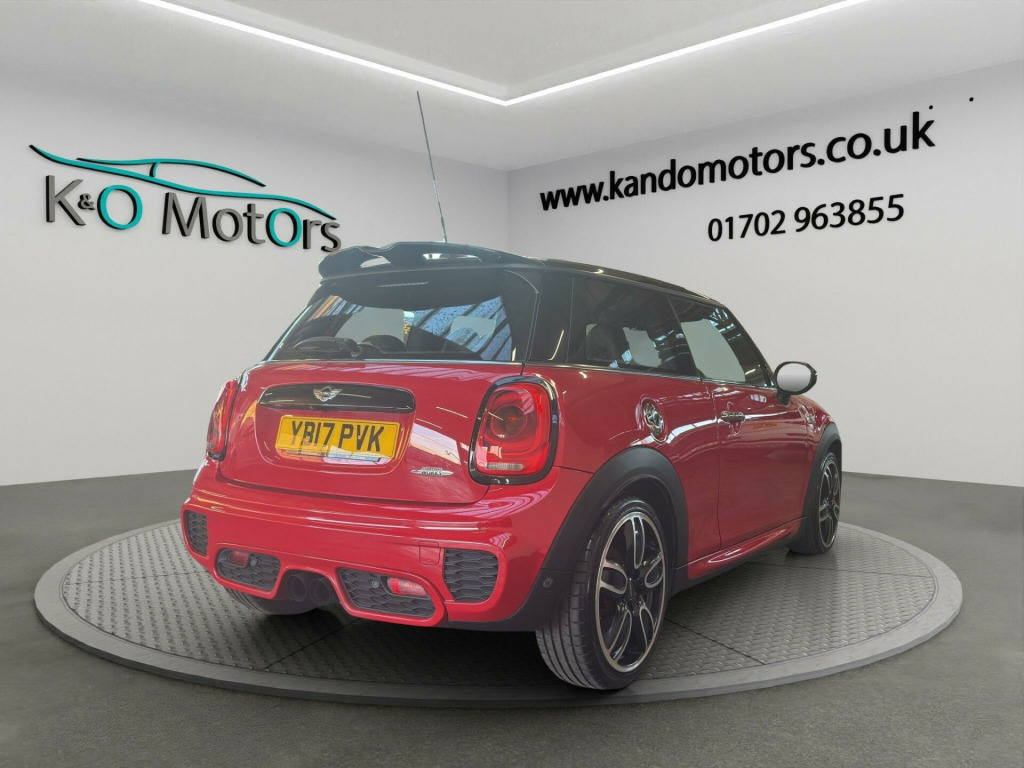 Welcome to K&O Motors – Your Trusted Source for Quality Cars in Southend, Essex. Discover an exciting selection of vehicles, each hand-selected and ready for immediate viewing and purchase. This 2017 Used Mini Hatch John Cooper Works Auto, finished in Red & Black 2-tone is fully ULEZ compliant and offered for sale in Southend-on-Sea, Essex. This vehicle is just one of many premium-quality models available at K&O Motors, all carefully chosen for their condition, value, and performance. With good service history and a brilliant high spec with some very rare options! This car is fully prepped and ready for its next owner today. We’re proud to be recognised in the top 5% of Autotrader dealers for five consecutive years, having earned their ‘Highly Rated for Customer Service’ Award annually due to our consistent focus on customer satisfaction. Why choose K&O Motors? We are conveniently located in Southend, Essex and have earned over 295 verified 5-star reviews, with a 99%+ customer satisfaction rate. Every vehicle undergoes a full multi-point health check and is fully HPI clear, ensuring complete peace of mind. Exceptional customer service is our number one priority. We offer competitive part exchange deals and finance packages tailored to all credit backgrounds, including those with poor credit. Nationwide delivery is available at a pre-agreed fee. For added peace of mind, we provide nationwide drive-away warranty cover for up to 3 years. We also offer free collection from Southend Central or Prittlewell train stations, making it easy and convenient for you to visit us. Book an appointment today to view our stock or secure your chosen vehicle with a fully refundable deposit. Our opening hours are Monday to Friday, 9:15 AM to 6:00 PM, and Saturday, 9:15 AM to 1:00 PM. Appointments outside these hours are available on request. At K&O Motors, we don’t just sell cars – we redefine the buying experience. Contact us today or visit us in person. Your journey to a quality vehicle starts here.. 12Volt Socket in Front Centre Console, 17in Alloy Wheels - John Cooper Works Track Spoke - Silver, 3 Point Seatbelts on all Seats, 3rd Brake Light - LED Along Top of Rear Window, Air Conditioning - Manual, Airbags for Driver and Front Passenger - 6 Airbags as Standard, Alarm and Immobiliser - Thatcham CAT 1, Anthracite Headlining, Anti-Lock Braking System - ABS, Automatic Door Window Lowering by Approx 6mm When Door Opens, Bluetooth Hands Free Function with USB Audio, Boot Release via Remote Control, Brake Pad Wear Indicator, Chrome Bezels around Rear Lights and Headlights, Chrome-Plated Fuel Filler Cap in Rear Right Side Panel - Linked to Central Locking, Colour Line - Carbon Black, Condition Based Service, Crash Sensor, Cruise Control with Brake Function, Cupholders - Two in Front and One in the Rear Centre Console, DAB Tuner, DTC - Dynamic Traction Control with EDLC - Electronic Differential Lock Control, Decorative Rings Surrounding Dashboard Instruments in Chrome Plated, Door Handles - Chrome Plated, Door Sill Finishers - Metal Look and Model Dependent Lettering, Dynamic Stability Control - DSC, Easy Entry Access to the Rear Seats and Memory Function for Driver's Seat Base, Engine Scoop in Body Colour, Exhaust Tailpipe - Visible Double Round Central with Chrome Finishers, Exterior Mirrors - Aspheric on Drivers Side - Electrically Adjustable, External Visible VIN, Foldable Rear Backrest 60-40, Follow Me Home Function, Front Passenger ISOFIX and Airbag De-Activation Switch, Front Side Indicators - White, Fuel Pump Automatic Cut-Off in Crash Situation, Gearshift Lever Knob - Leather with Red Seam, Gearshift-Selector Lever and Handbrake Lever Gaiters in Sensatec Artificial Leather, Handbrake Lever Grip - Plastic, Headrests For All Seats - Manually Adjustable and Two Rear Folding Headrests, Heated Mirrors and Windscreen Washer Jets, Heated Rear Window with Automatic Deactivation, Heated Window Heater, Intelligent Emergency Calling - E-Call, Interior Door Handles - Chrome Plated, Interior Lights - Integrated into Centre Front Headliner, Interior Mirror - Mechanical Anti-Dazzle, Interior Surface in Black Chequered Design, Interior Trim - Black Chequered, John Cooper Works Aerodynamic Kit, John Cooper Works Leather Steering Wheel, John Cooper Works Roof Spoiler, John Cooper Works Sport Seats, LED Headlights and Daytime Running Lights and Tail Lights, Lashing Eyes in Luggage Compartment, Locking System with Central Locking, Luggage Compartment - Light, MINI Central Display with LED Ring, MINI Driving Modes, MINI Mobility System, MINI TeleServices, MINIMALISM Fuel Saving Technology, Mechanical Seat Adjustment - Six Way Drivers Seat and Passengers Seat, Microfilter, Mirror Caps in Body Colour, Multifunction Controls for Steering Wheel, Non Smoker Package, Oddments Trays at Rear - Right and Left, On-Board Computer, Passenger Seat Height Adjustable, Performance Control, Personal Profile, Power Steering with Servotronic, Radio with Four-Line Display, Rear Fog Light, Rear Window Wiper, Reversing Light, Revolution Counter, Roof in Body Colour, Security Locking Wheel Bolts, Side Scuttles Chrome-Plated with John Cooper Works Logo with Integrated Direction Indicator White, Sills - Bumper Edges - Wheel Arch Cover in Black, Speakers - Two Mid Range in Front Doors and Two Woofers under Front Seats, Speedometer on Steering Column, Sport Suspension, Stainless Steel Embellisher at Bottom Edge of all Windows, Start-Stop Button with Keyless Start, Steering Wheel Column Adjustment Mechanically in Height and Length, Storage Options, Sun Visors with Integrated Vanity Mirrors on Drivers and Passengers Sides, TPWS - Tyre Pressure Warning System, Tool Kit in Luggage Compartment, Twin Horns, White Direction Indicators Lights, Window Lifts - Electrical for Drivers and Front Passengers Sides, MINI Tech Pack, CHILI Pack, Media Pack XL, 18in Alloy Wheels - John Cooper Works Cup Spoke - Two-Tone, Harman Kardon Hi-Fi System, MINI He
