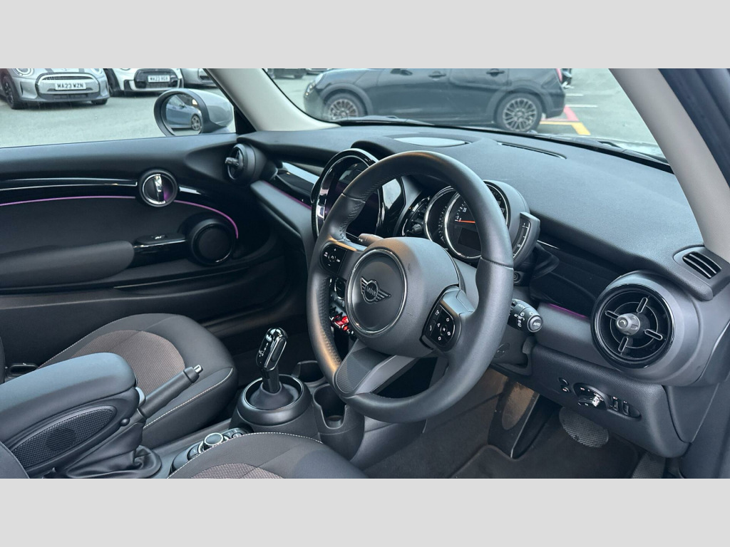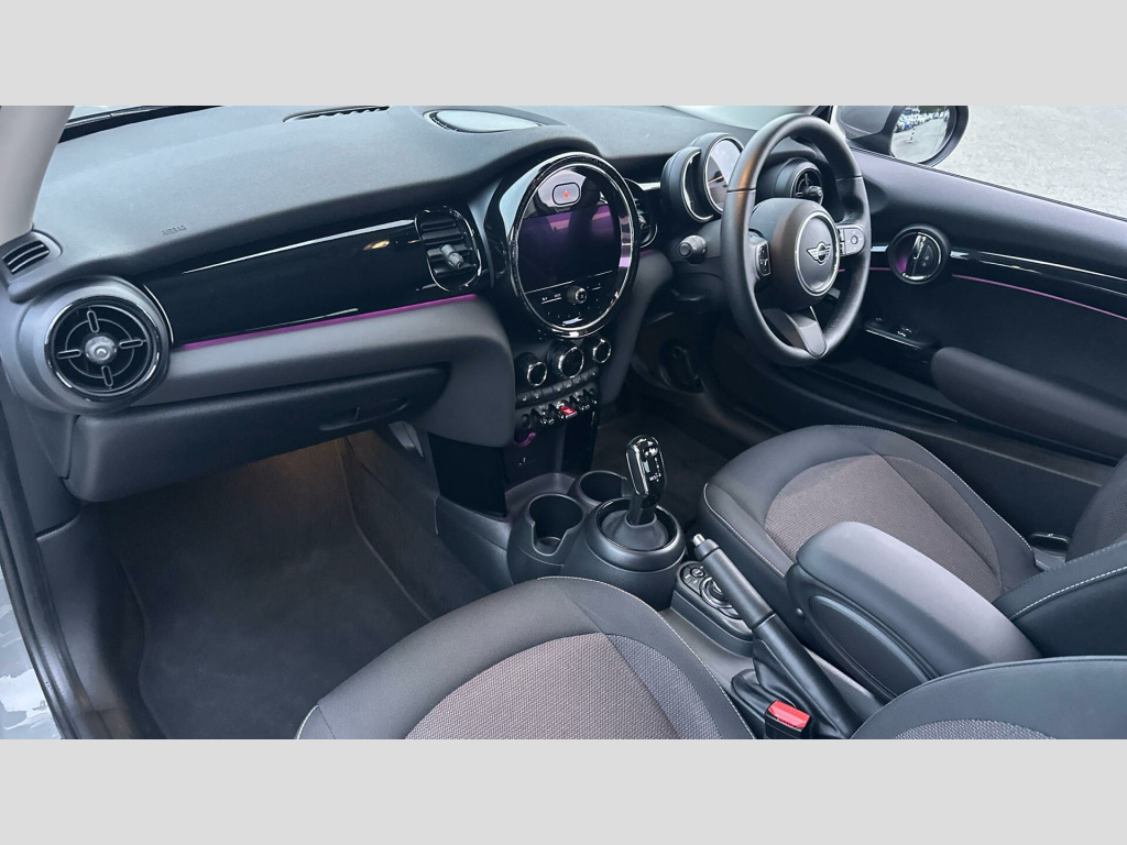 MINI Hatch Cooper Classic in Moonwalk Grey with Cloth Firework Carbon Black interior. Spec includes Comfort Access, Comfort Pack, Heated Front Seats, Front Centre Armrest, Multifunctional Steering Wheel, Ambient Lighting, Automatic Air Conditioning, Connected Media, Smartphone Integration, Smartphone Navigation Projection, Rear Parking Sensors, LED Headlights, Auto Headlights with Rain Sensor, Darkened Rear Glass, Roof in Body Colour, 16'' Victory Spoke Alloy Wheels in Black.. EU6 RDE II exhaust emissions standard, RDE additional contents, Multifunction Controls on Steering Wheel, Sport Steering Wheel, Piano Black Interior Trim, Rear Fog Light, LED Headlights, Flexible CarSharing Preparation, Auto headlights with rain sensor, Cruise Control, Additional Interior Lighting, DAB Radio, White Indicator Lenses, Active Pedestrian Safety, 16'' Victory Spoke alloy wheels in black, Steptronic transmission with double clut, Tyre Repair Kit, Comfort Access, Roof in Body Colour, Ambient Lighting, Darkened Rear Glass, Front centre armrest, Storage Pack, Heated front seats, Rear Parking Sensors, Automatic Air Conditioning, MINI Emergency Call, MINI TeleServices, ConnectedDrive Services, Remote Services, Smartphone Integration, MINI Connected, Smartphone Navigation Projection, Comfort Pack, Connected Media.