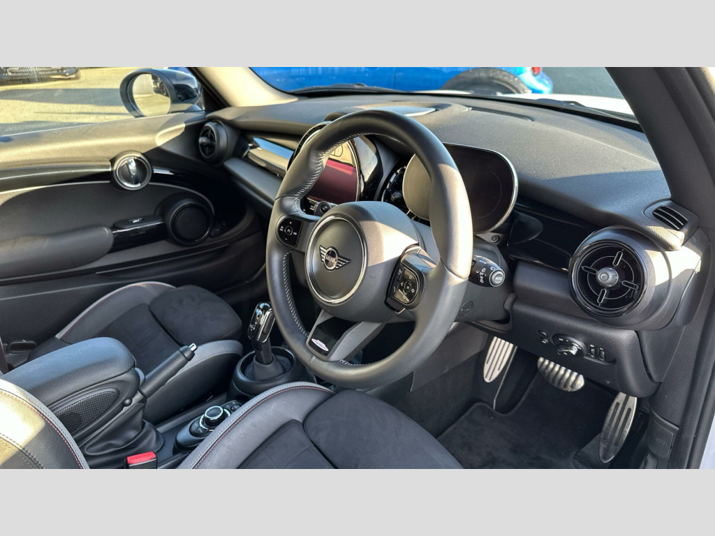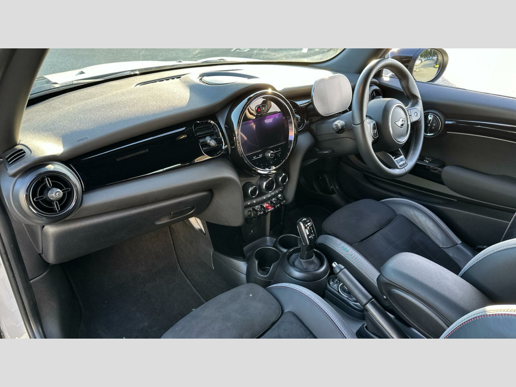 MINI 3-Door Hatch Cooper S Sport in Nanuq White with Dinamica/Leather John Cooper Works Sport interior. Spec includes Premium Pack , Comfort Access, Heated Front Seats, JCW Sport Seats, Front Centre Armrest, Ambient Lighting, DAB Radio, Smartphone Navigation Projection, Digital Cockpit, Smartphone Integration, Ambient Lighting, Electric Folding Door Mirrors, Rear-view Mirror with Auto dimming, Rear Parking Sensors, Black Roof and Mirror Caps, John Cooper Works Aerodynamic Kit, Darkened Rear Glass, 17'' Track Spoke Alloy Wheels in Black.. 17'' Track Spoke alloy wheels in black, Nappa leather steering wheel, Intelligent Adaptive Suspension, Multifunction Controls on Steering Wheel, John Cooper Works Aerodynamic Kit, Piano Black Exterior, Black Roof and Mirror Caps, Anthracite Headlining, Piano Black Interior Trim, Rear Fog Light, Driving Assistant, LED Headlights, Auto headlights with rain sensor, ConnectedDrive Services, Remote Services, MINI Connected, Digital Cockpit, White Indicator Lenses, Sport, Connected Media, EU6 RDE II exhaust emissions standard, RDE additional contents, Sport Double-clutch auto transmission, Tyre Repair Kit, Electric Folding Door Mirrors, Comfort Access, John Cooper Works sport seats, Ambient Lighting, MINI Driving Modes, Darkened Rear Glass, Rear-view Mirror with Auto dimming, Front centre armrest, Storage Pack, Heated front seats, Flexible CarSharing Preparation, Rear Parking Sensors, Automatic Air Conditioning, Cruise Control, Additional Interior Lighting, MINI Emergency Call, MINI TeleServices, Smartphone Integration, Smartphone Navigation Projection, DAB Radio, Active Pedestrian Safety, Premium Pack - Automatic Transmission. Full dealership history