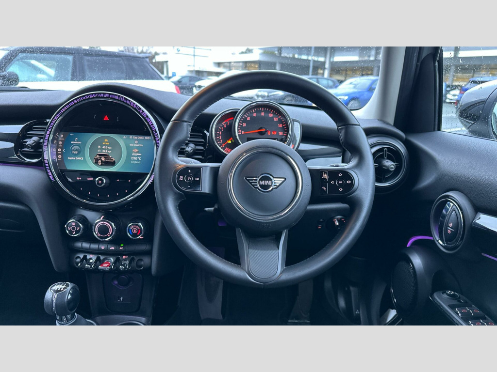 This 2022 MINI Hatch Cooper Classic is a superb example, having been cherished by just one owner since new and holding MINI manufacturer approval. Powered by a responsive 1.5 litre petrol engine, this Euro 6 compliant model offers an engaging driving experience. Its registration year ensures you benefit from modern MINI engineering and design.The Cooper Classic trim level provides a well appointed interior and exterior, designed for everyday enjoyment. With an impressive 0 to 62 miles per hour acceleration time of just 8.4 seconds, this MINI Hatch demonstrates a lively performance that sets it apart from many other vehicles in its class. This combination of low ownership, manufacturer approval, and spirited acceleration makes it a compelling choice.. EU6 RDE II exhaust emissions standard, RDE additional contents, 15'' Heli Spoke alloy wheels in silver, Multifunction Controls on Steering Wheel, Sport Steering Wheel, Piano Black Interior Trim, Rear Fog Light, LED Headlights, Flexible CarSharing Preparation, Auto headlights with rain sensor, Air Conditioning, Additional Interior Lighting, DAB Radio, White Indicator Lenses, Active Pedestrian Safety, Tyre Repair Kit, Roof and Mirrors Caps in Black, Ambient Lighting, Cruise Control, MINI Emergency Call, MINI TeleServices, ConnectedDrive Services, Remote Services, Smartphone Integration, MINI Connected, Smartphone Navigation Projection, Connected Media.