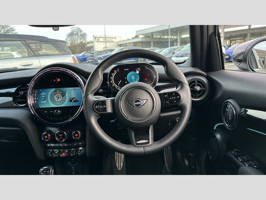 This 2023 MINI Hatch Cooper Sport is a superb example, having had only one owner since new and benefiting from MINI manufacturer approval. It features a responsive 1.5 litre petrol engine, meeting the Euro 6 emission standards, and is presented in the desirable Cooper Sport trim.Experience brisk performance with this MINI Hatch, capable of accelerating from 0 to 62 miles per hour in just 8.3 seconds. This impressive acceleration, combined with its single owner provenance and manufacturer approval, sets this vehicle apart from others you might find.. 17'' Track Spoke alloy wheels in black, Nappa leather steering wheel, Intelligent Adaptive Suspension, Multifunction Controls on Steering Wheel, Piano Black Exterior, Black Roof and Mirror Caps, Anthracite Headlining, Piano Black Interior Trim, Rear Fog Light, LED Headlights, Auto headlights with rain sensor, ConnectedDrive Services, Remote Services, MINI Connected, Digital Cockpit, White Indicator Lenses, Sport, Connected Media, EU6 RDE II exhaust emissions standard, RDE additional contents, Steptronic transmission with double clut, Tyre Repair Kit, John Cooper Works Aerodynamic Kit, Electric Folding Door Mirrors, Comfort Access, John Cooper Works sport seats, Ambient Lighting, MINI Driving Modes, Rear-view Mirror with Auto dimming, Front centre armrest, Storage Pack, Heated front seats, Driving Assistant, Flexible CarSharing Preparation, Rear Parking Sensors, Automatic Air Conditioning, Cruise Control, Additional Interior Lighting, MINI Emergency Call, MINI TeleServices, Smartphone Integration, Enhanced Bluetooth- wireless charging, Smartphone Navigation Projection, DAB Radio, Active Pedestrian Safety, Premium Pack - Automatic Transmission.