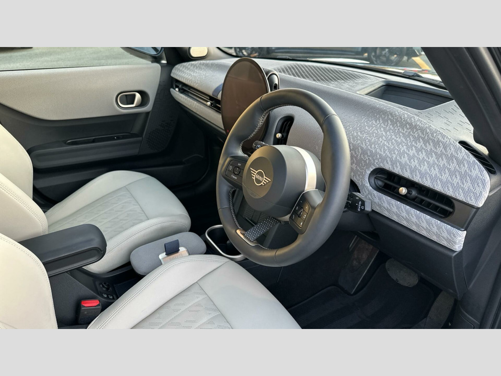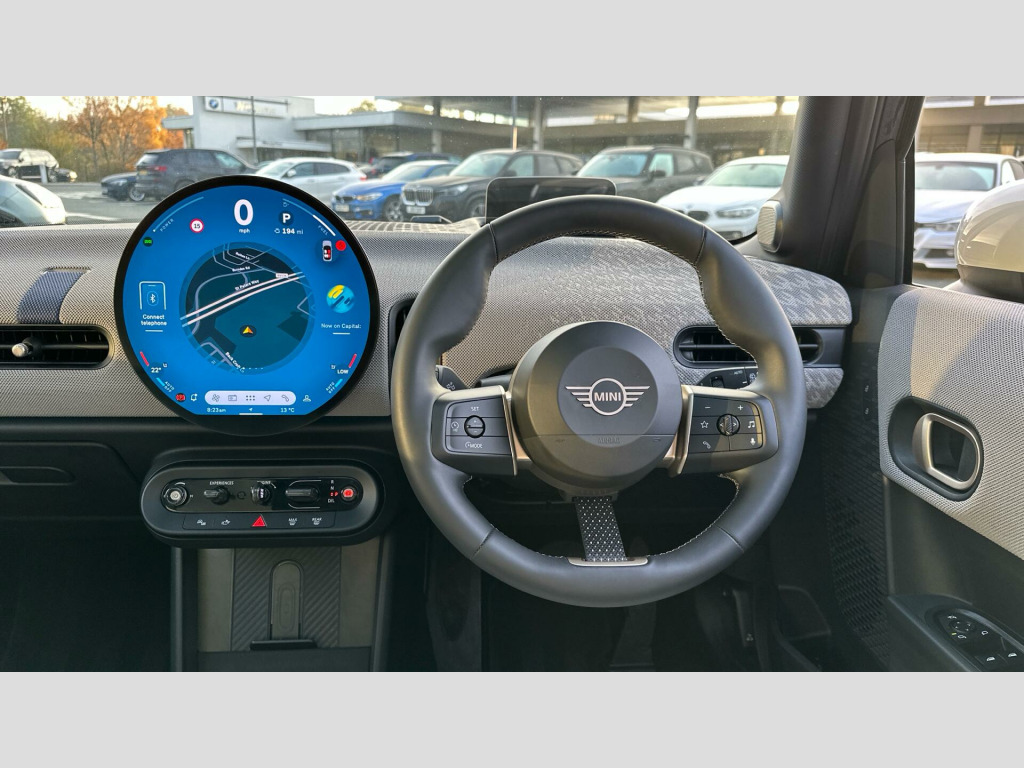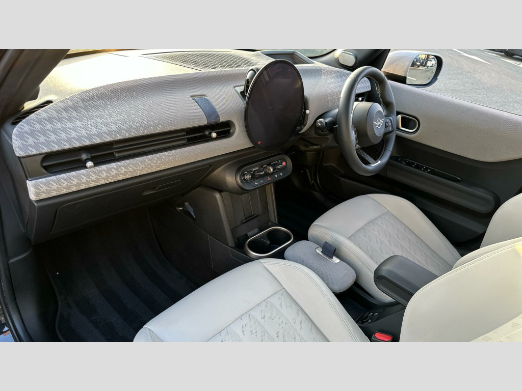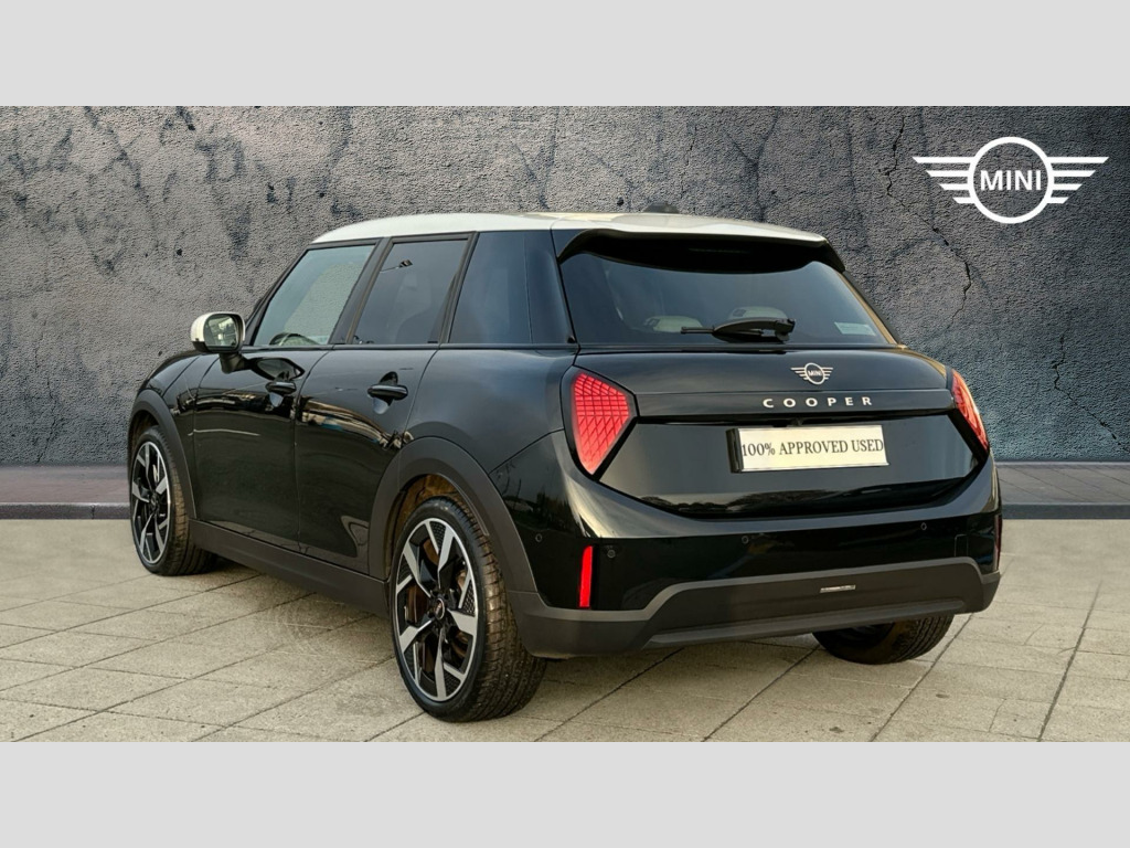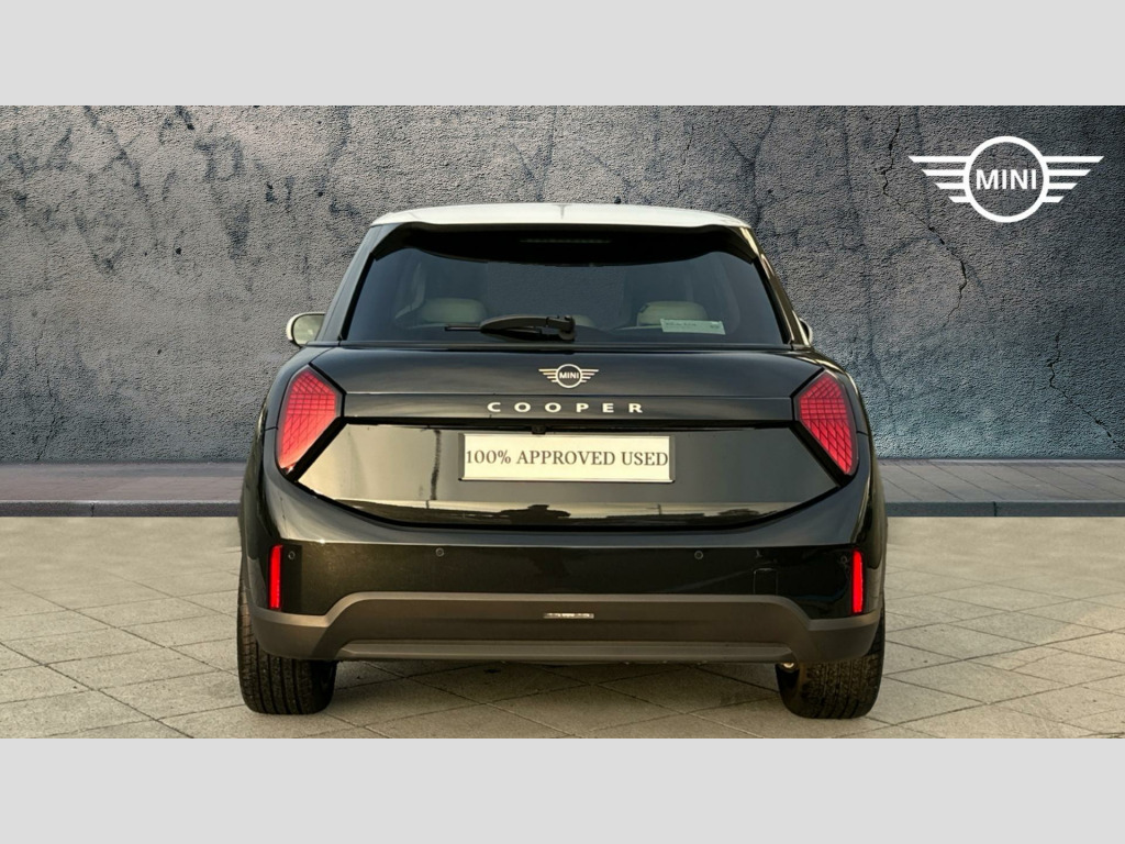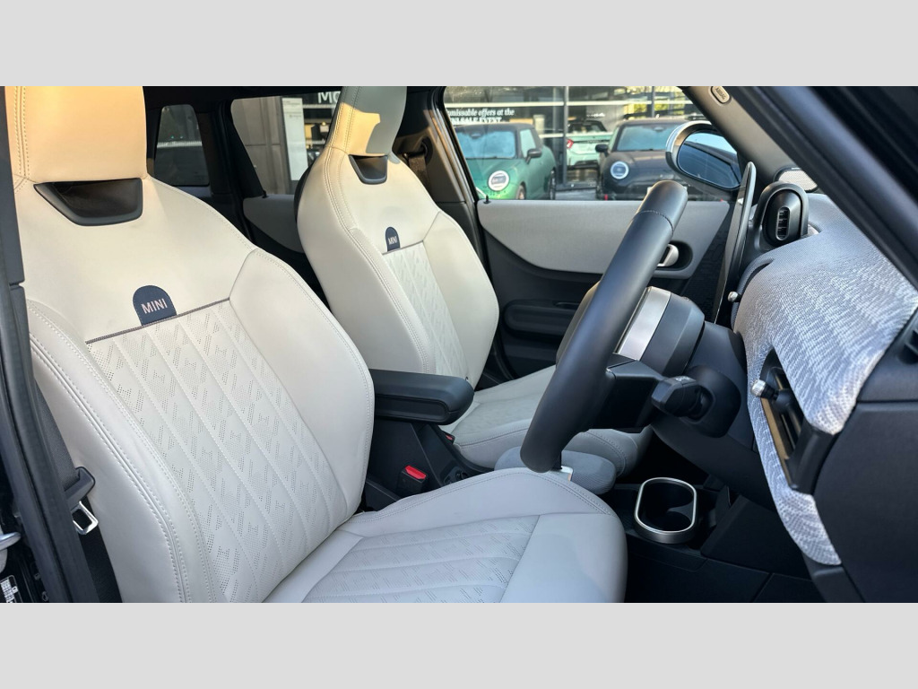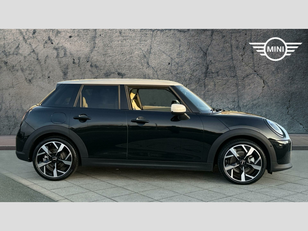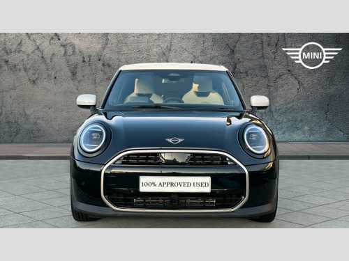 MINI Cooper C Exclusive in Midnight Black with Vescin Beige interior. Spec includes Level 2, Panoramic Glass Sunroof, Comfort Access, Heated Steering Wheel, Heated Front Seats, JCW Sport Seats, Anthracite Roof Lining, Harman/Kardon Surround Sound Audio, Circular OLED Screen, Storage for wireless charging, MINI Head-up Display, Rear-view Mirror with Auto dimming, Electric Folding Mirrors, Adaptive LED Headlights, High-Beam Assistant, Parking Assistant, Front and Rear Parking Sensors, Reverse Camera, Driving Assistant, Sun Protection Glass, 18'' Slide Spoke 2-tone Alloy Wheels.. EU6 RDE II exhaust emissions standard, Automatic DCT Transmission, Tyre Repair Kit, MINI Experience Modes, Child seat i-Size attachment for front p, Driving Assistant, Active Guard, Parking Assistant, BMW TeleServices, BMW Emergency Call, Personal eSIM, Circular OLED Screen, DAB Radio, COC additional contents, Active Pedestrian Safety, English / on-board literature II, 18'' Slide Spoke 2-tone, Sports steering wheel, Heated Steering Wheel, Comfort Access, Roof and Mirrors Caps in White, Anthracite Roof Lining, John Cooper Works sport seats, Panoramic Glass Sunroof, Sun Protection Glass, Ext. mirrors- folding with anti-dazzle, Rear-view Mirror with Auto dimming, Heated front seats, High-Beam Assistant, Adaptive LED Headlights, MINI Head-up Display, Storage for wireless charging, Harman/Kardon Surround Sound Audio, Exclusive Trim Content, Exclusive, Level 2. Full dealership history