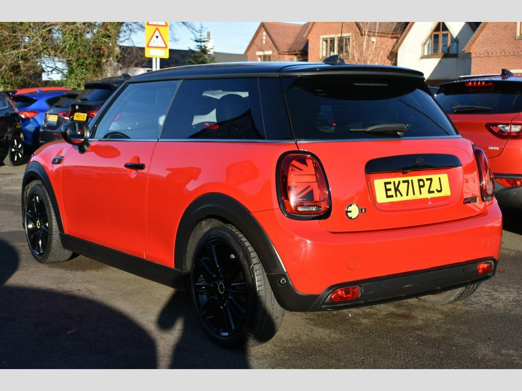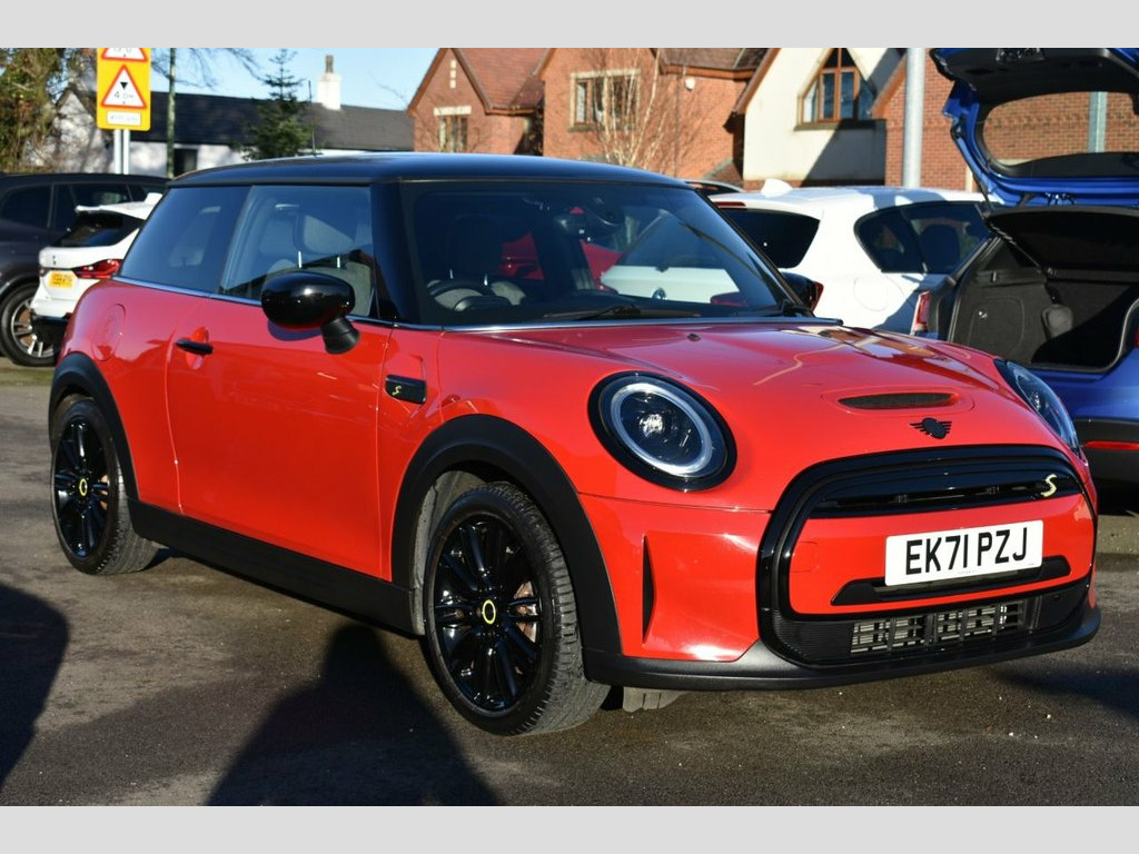 This 2021 MINI Electric Hatch Cooper SE Level 2 has had only one owner and boasts a clear vehicle history check. As an electric vehicle, it features a 33 kWh battery offering a maximum range of 144 miles when new. Charging at home with a 7kW charger takes approximately 5 hours and 15 minutes, while rapid public charging can replenish the battery from empty to 80% in just 36 minutes. This Level 2 trim includes desirable features such as Piano Black Exterior Trim, Bluetooth for compatible mobile phones with audio streaming, rear park distance control, and automatic two zone climate control. The acceleration of this MINI Electric Hatch is a notable highlight, achieving 0 to 60 miles per hour in a brisk 7.3 seconds. This performance, combined with the included Navigation Pack which supports Apple CarPlay, indicates a superior driving experience compared to other vehicles in its class. The combination of its electric powertrain, convenient charging times, and well appointed interior makes this a compelling choice for those seeking an engaging and efficient drive. 12V Socket in Centre Console, 17in Alloy Wheels - Tentacle Spoke in Bl, 3 Point Seatbelts on all Four Seats, 4 Lashing Eyes in Luggage Compartment, 8.8in Touchscreen with LED Ring, AC-DC Charging, Acoustic Pedestrian for Protection, Air Conditioning - Automatic - with Two , Airbags - x6 - Front - Side - Head and S, Alarm System, Ambient Lighting, Anti-Lock Braking System - ABS, Bluetooth for Compatible Mobile Phone wi, Bonnet Scoop, Brake Energy Recuperation Toggle Switch, Charging Flap Embossed with e Logo in Bo, Charging Flap on Drivers Side Rear Panel, Chili Red, Chrome Highlights, Cloth-Leatherette - Black Pearl, Comfort Access System, Cruise Control, Cup Holders, Digital Instrument Clus