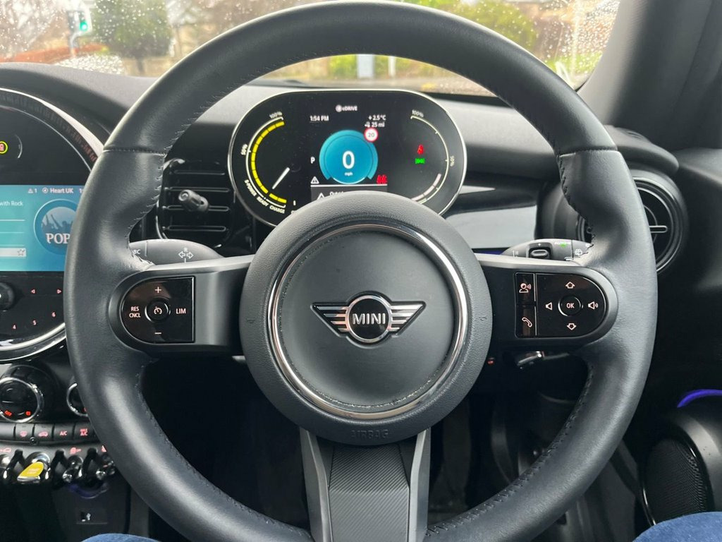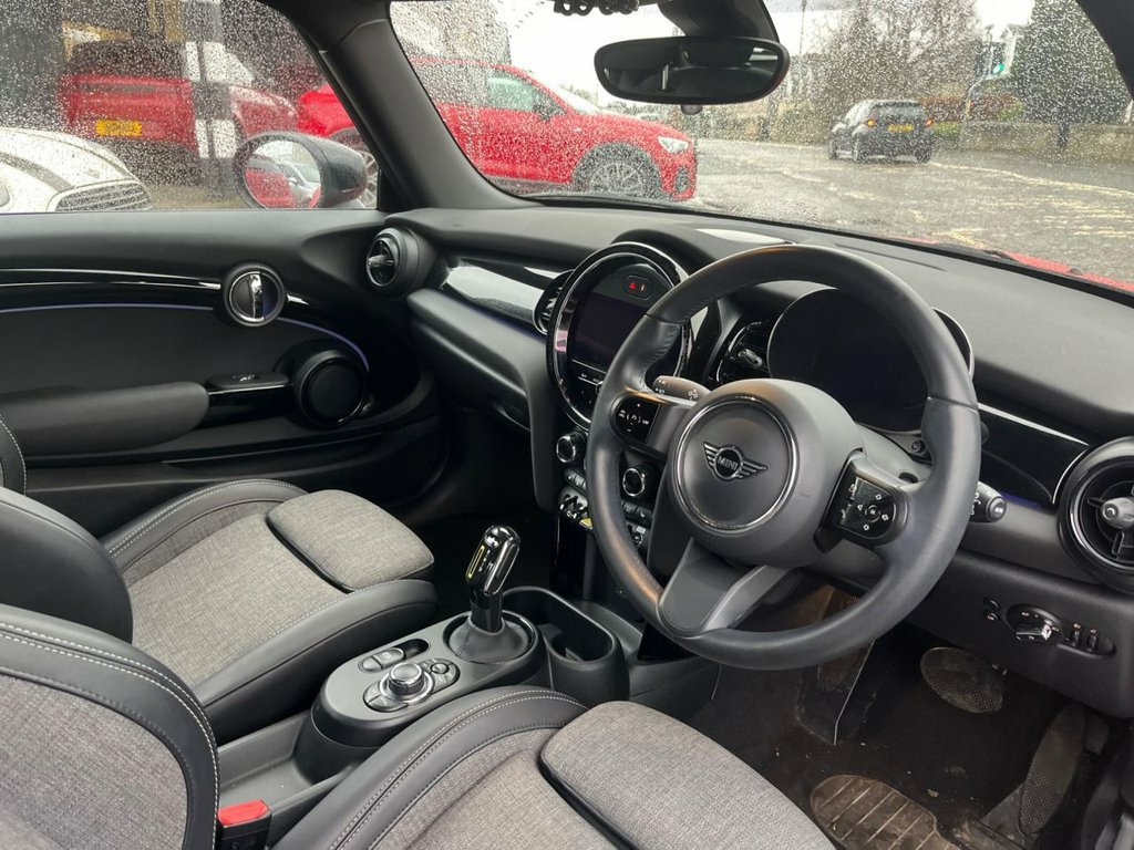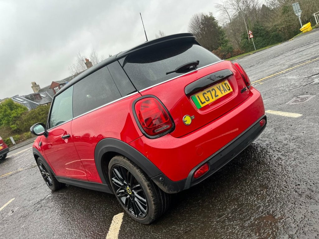 This 2023 MINI Electric Hatch Cooper SE Level 2 boasts a clear vehicle history and has had only one owner from new. As an electric vehicle, it features a 33 kWh battery offering a maximum range of 144 miles when new. Charging is convenient, with a full charge at home using a 7kW charger taking approximately 5 hours and 15 minutes. For quicker top ups, the fastest public charging time from empty to 80% is an impressive 36 minutes. Experience the spirited performance of this MINI Electric Hatch, with its remarkable 0 to 60 mph acceleration achieved in just 7.3 seconds. This quick acceleration demonstrates its agility and responsiveness, setting it apart from many other electric vehicles in its class. The Level 2 trim ensures a well equipped and enjoyable driving experience. 12V Socket in Centre Console, 17in Alloy Wheels - Tentacle Spoke in Bl, 3 Point Seatbelts on all Four Seats, 4 Lashing Eyes in Luggage Compartment, 8.8in Touchscreen with LED Ring, AC-DC Charging, Acoustic Pedestrian for Protection, Air Conditioning - Automatic - with Two , Airbags - x6 - Front - Side - Head and S, Alarm System, Ambient Lighting, Anti-Lock Braking System - ABS, Automatic Headlight Activation Switch, Bluetooth for Compatible Mobile Phone wi, Bonnet Scoop, Carbon Black Colour Line - Knee Roll and, Charging Flap on Drivers Side Rear Panel, Chili Red, Chrome Highlights, Cloth-Leatherette - Black Pearl, Comfort Access System, Cruise Control, Cup Holders, Digital Instrument Cluste