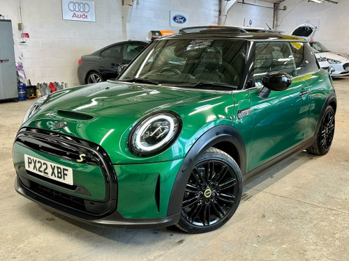 Ready to drive away today showroom condition MINI Electric Hatch Cooper SE 32.6kWh Level 3 Auto 3dr, top spec model with great range of factory extras. Starting with a beautiful shade of British Racing Green metallic paint, contrasting gloss black roof and gloss black 17 alloy wheels. LED lights, full length tilt and slide panoramic roof and front and rear parking sensors/reverse camera. Interior os a great place to be seated with full heated leather seats, multifunction leather steering wheel, gloss black dashboard with ambient lighting, cruise control, heads up display, Harmon Kardon speaker upgrade, apple car play, sat nav, touchscreen multimedia system, keyless entry and start, list goes on. 2 keys, buy with confidence from an award winning, AA Approved dealership with a variety of warranty products available. Viewing available seven days a week by appointment (evening and weekends available), nationwide delivery. Same day finance decisions in house at competitive rates, nil deposit options, please inquire with a simple call to drive away today. Drive away insurance, part exchange welcome, top prices paid. Member of the Motor Trade trading standards and motoring ombudsman code of practice