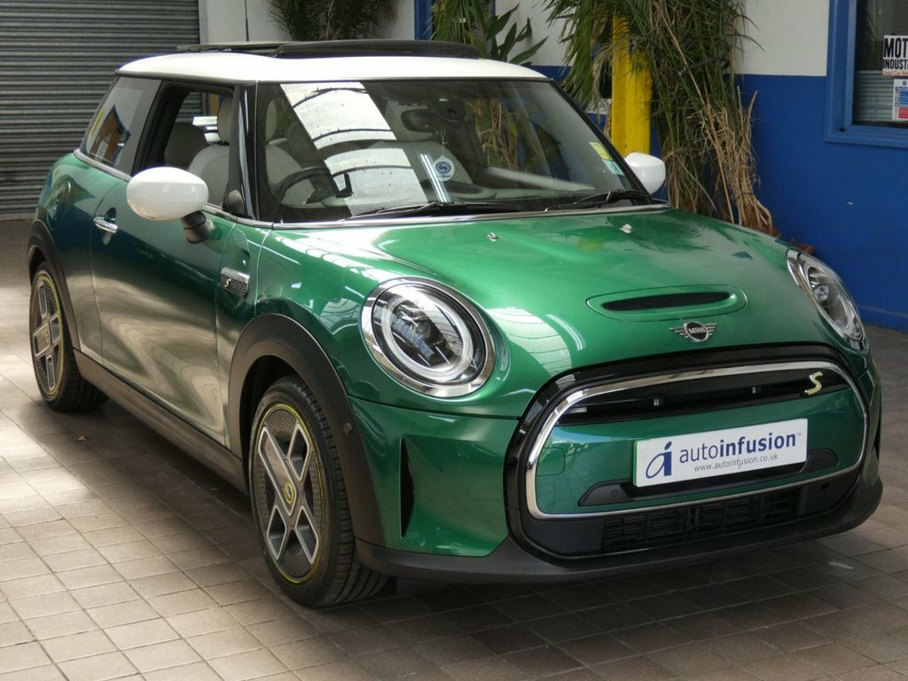 With a total battery capacity of 33 kWh, this MINI Electric Hatch offers a maximum range of 142 miles when new. Charging at home using a 7kW charger takes approximately 5 hours and 15 minutes for a full charge. For those needing a quicker boost, public charging can take the battery from empty to 80% in just 36 minutes. The car's brisk acceleration, reaching 0-60mph in just 7.3 seconds, makes it faster than other similar vehicles. STUNNING EXAMPLE IN BRITISH RACING GREEN, IT IS IN GREAT CONDITION AS YOU WOULD EXPECT FROM A CHERISHED LOW MILEAGE EXAMPLE THAT HAS JUST COVERED 17, 635 MILES FROM NEW, OUR MINI HAS HAD JUST 1 OWNER FROM NEW, EXCELLENT SERVICE HISTORY 1 SERVICE AT 14,130 MILES APRIL 2024, AS A EURO 6 VEHICLE IT IS ULEZ AND CAZ COMPLIANT MEANING THERE WILL BE NO PENALTIES FOR DRIVING INTO MAJOR CITIES, THIS MINI IS EXCEPTIONALLY WELL EQUIPPED, IT COMES WITH HUD, PANORAMIC SUNROOF, SAT NAV, USB, HARMAN KARDON SOUND, LEATHER INTERIOR, HEATED SEATS, REAR VIEW CAMERA, CRUISE CONTROL, PARKING SENSORS, IT WILL BE SUPPLIED WITH 2 KEYS, ALL OF OUR SOURCED VEHICLES COME COSMETICALLY PREPARED TO A VERY HIGH STANDARD, ALLOYS WHEELS ARE FULLY REFURBISHED, OUR CARS ARE ROAD TESTED AND MECHANICALLY INSPECTED PRIOR TO SALE AND FOR COMPLETE PEACE OF MIND SUPPLIED WITH EITHER THE REMAINDER OF THE MANUFACTURERS WARRANTY OR OUR 6 MONTHS GOLD WARRANTY WHICH CAN BE USED AT ANY VAT REGISTERED GARAGE ACROSS THE UK, WE ALSO OFFER A UK WIDE DELIVERY SERVICE ALONG WITH TAILOR MADE BESPOKE FI 12V Socket in Centre Console, 17in Alloy Wheels - Roulette Spoke, 3 Point Seatbelts on all Four Seats, 4 Lashing Eyes in Luggage Compartment, 8.8in Touchscreen with LED Ring, AC-DC Charging, Acoustic Pedestrian for Protection, Adaptive Headlights with Matrix Function, Air Conditioning - Automatic - with Two , Airbags - x6 - Front - Side - Head and S, Alarm System, Ambient Lighting, Anti-Lock Braking System - ABS, Apple Carplay, Bluetooth for Compatible Mobile Phone wi, Bonnet Scoop, Charging Flap Embossed with e Logo in Bo, Charging Flap on Drivers Side Rear Panel, Chrome Highlights, Comfort Access System, Cruise Control with Brake Function, Cup Holders, Digital Instrument Cluster, Door Sill