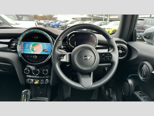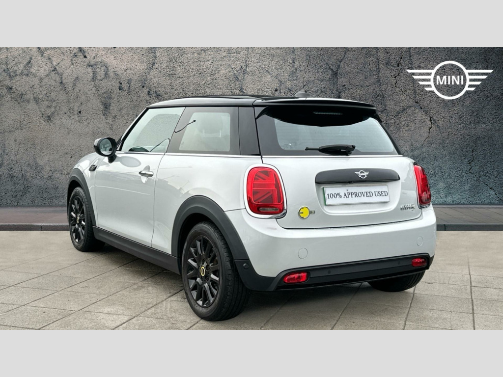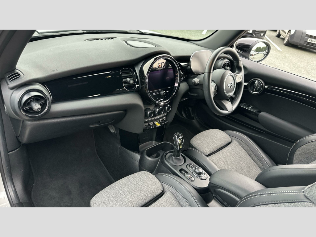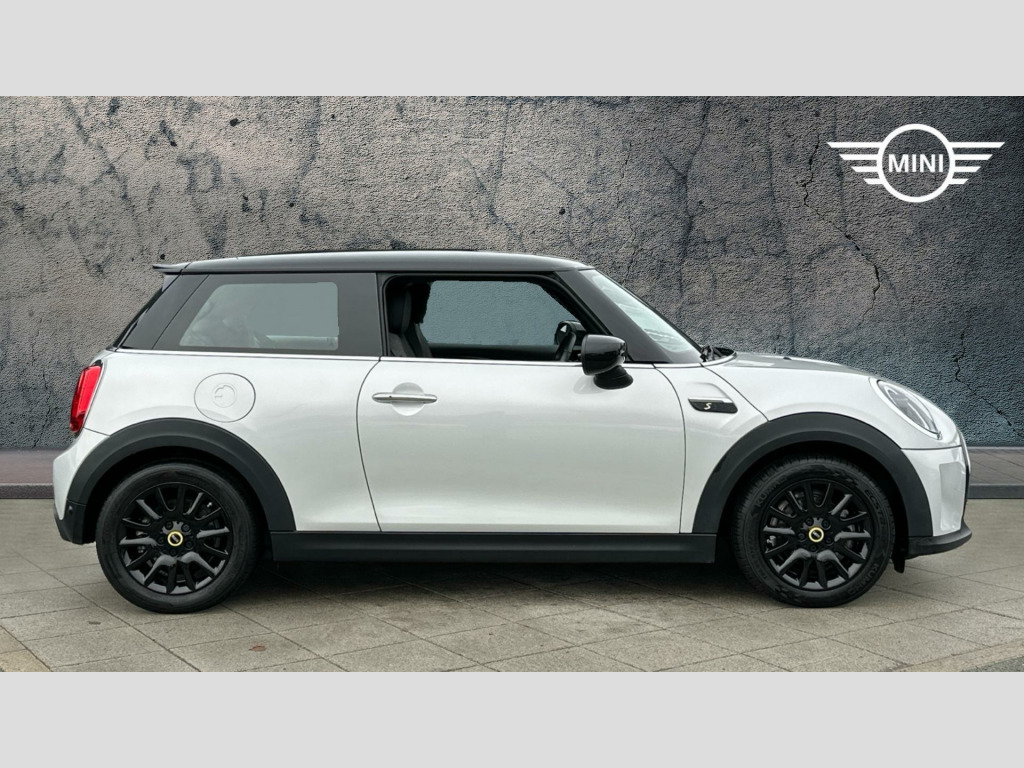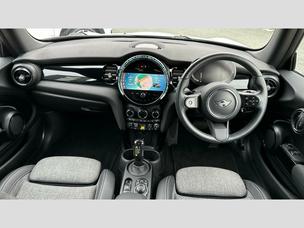 MINI Electric Hatch Cooper SE Level 2 in White Silver with Cloth/leatherette Black Pearl /Carbon interior. Spec includes Digital Cockpit, Driving Assistant, Flexible CarSharing Preparation, MINI Connected, MINI Navigation System, Smartphone Integration, LED Headlights, Auto Headlights with Rain Sensor, Ambient Lighting, Rear Parking Sensors, Reversing Camera, Cruise Control, Comfort Access, Heated Front Seats, Multifunction Controls on Steering Wheel, Interior Trim Piano Black, Roof and Mirrors Caps in Black, 16'' Victory Spoke Alloy Wheels in Black.. Tyre Repair Kit, Multifunction Controls on Steering Wheel, Sport Leather Steering Wheel, Reversing Camera, Electric Folding Door Mirrors, Comfort Access, Anthracite Roof Lining, Interior Trim Piano Black, Charging cable Professional (Mode 3), Auxiliary Cabin Heating System, Ambient Lighting, 22KW High Speed Charging, DC Rapid Charging, eDrive Exterior Sound, MINI Driving Modes, Rear-view Mirror with Auto dimming, Front Armrest, Sport seats, Extended storage, Heated front seats, Rear Fog Light, Driving Assistant, LED Headlights, Flexible CarSharing Preparation, Rear Parking Sensors, Auto headlights with rain sensor, Automatic Air Conditioning, Additional Interior Lighting, MINI TeleServices, BMW Emergency Call, eDrive Services, MINI Online Services, Real Time Traffic Information, Remote Services, Smartphone Integration, Visual Boost Radio, MINI Connected, MINI Navigation System, Digital Cockpit, DAB Radio, White Indicator Lenses, Navigation Package, Navigation Package, 17'' Tentacle Spoke black, Mode 2 Charge Cable, 16'' Victory Spoke alloy wheels in black, Roof and Mirrors Caps in Black, Cruise Control.