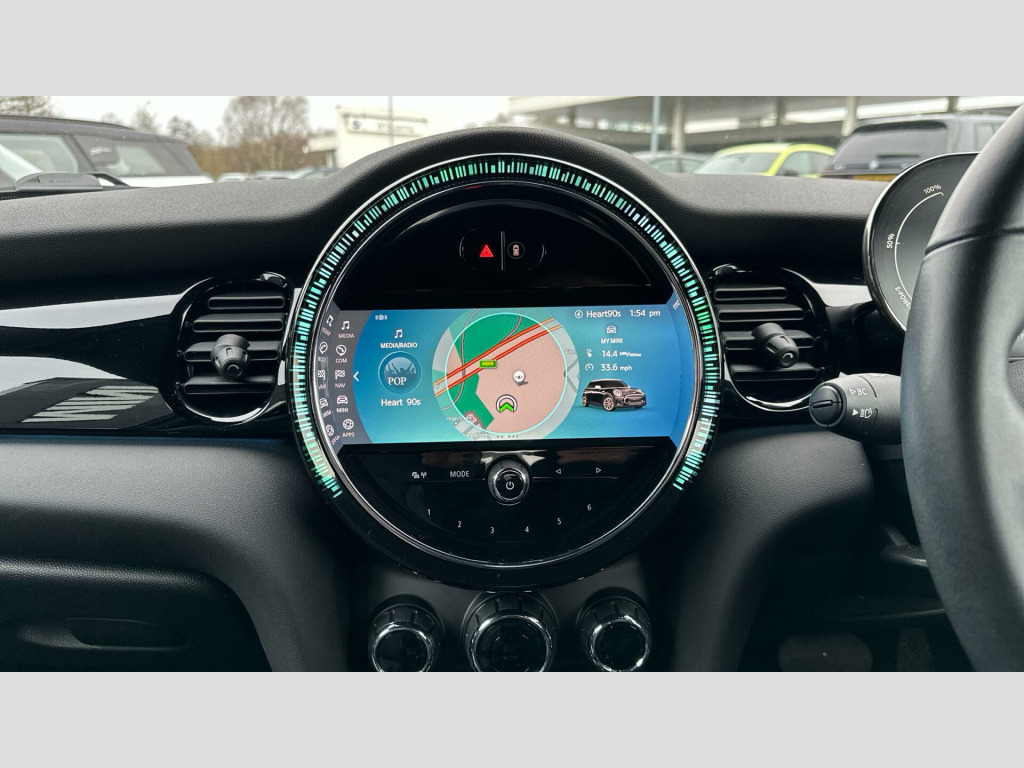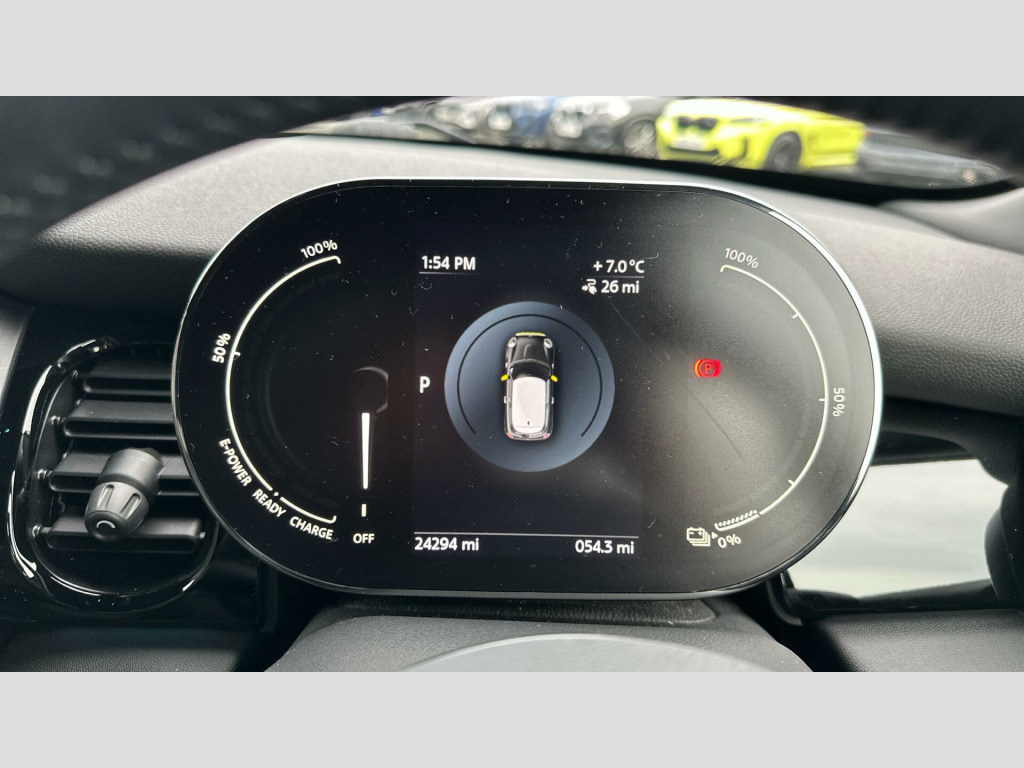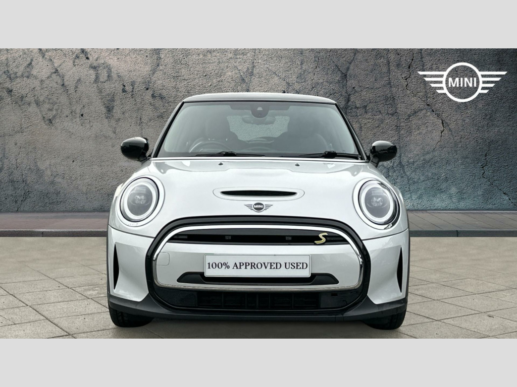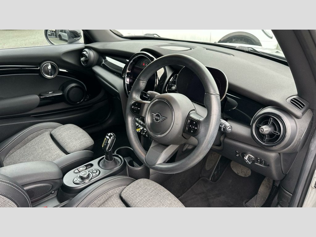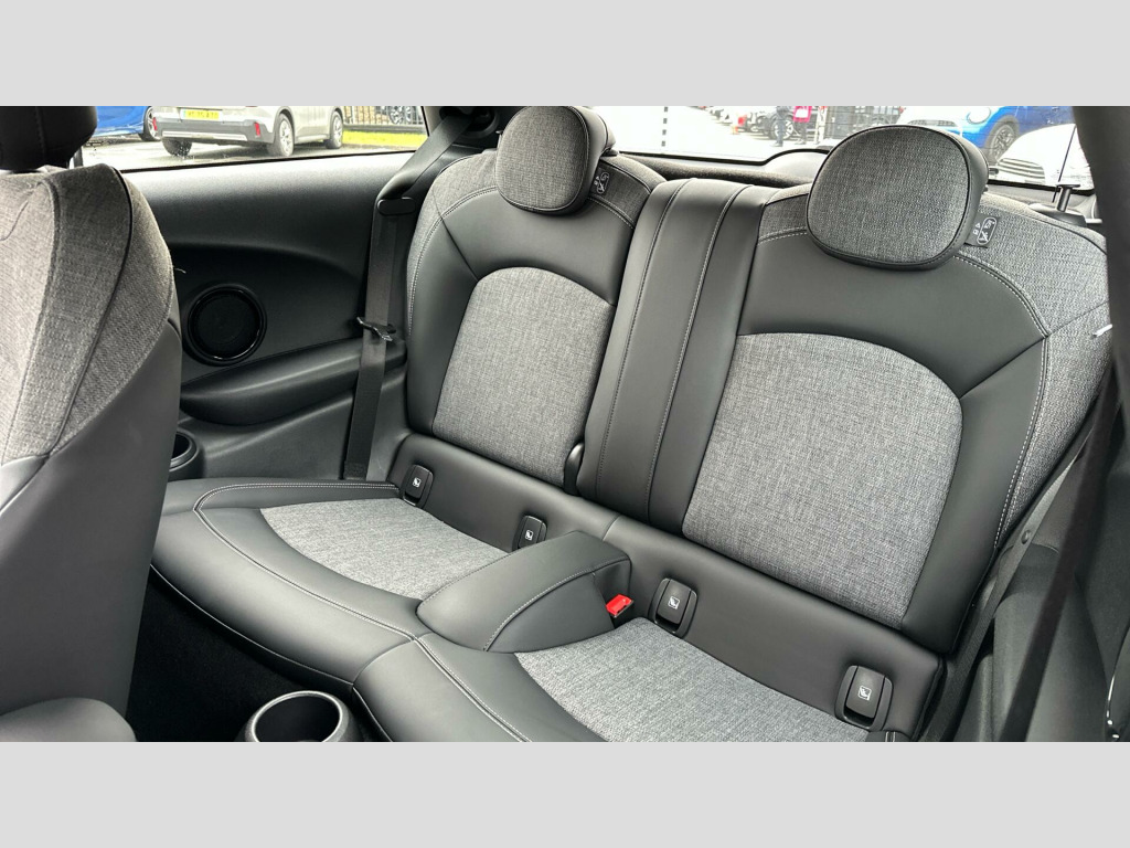 MINI Electric Hatch Cooper SE Level 2 in White Silver with Cloth/leatherette Black Pearl /Carbon interior. Spec includes Digital Cockpit, Driving Assistant, Flexible CarSharing Preparation, MINI Connected, MINI Navigation System, Smartphone Integration, LED Headlights, Auto Headlights with Rain Sensor, Ambient Lighting, Rear Parking Sensors, Reversing Camera, Cruise Control, Comfort Access, Heated Front Seats, Multifunction Controls on Steering Wheel, Interior Trim Piano Black, Roof and Mirrors Caps in Black, 16'' Victory Spoke Alloy Wheels in Black.. Tyre Repair Kit, Multifunction Controls on Steering Wheel, Sport Leather Steering Wheel, Reversing Camera, Electric Folding Door Mirrors, Comfort Access, Anthracite Roof Lining, Interior Trim Piano Black, Charging cable Professional (Mode 3), Auxiliary Cabin Heating System, Ambient Lighting, 22KW High Speed Charging, DC Rapid Charging, eDrive Exterior Sound, MINI Driving Modes, Rear-view Mirror with Auto dimming, Front Armrest, Sport seats, Extended storage, Heated front seats, Rear Fog Light, Driving Assistant, LED Headlights, Flexible CarSharing Preparation, Rear Parking Sensors, Auto headlights with rain sensor, Automatic Air Conditioning, Additional Interior Lighting, MINI TeleServices, BMW Emergency Call, eDrive Services, MINI Online Services, Real Time Traffic Information, Remote Services, Smartphone Integration, Visual Boost Radio, MINI Connected, MINI Navigation System, Digital Cockpit, DAB Radio, White Indicator Lenses, Navigation Package, Navigation Package, 17'' Tentacle Spoke black, Mode 2 Charge Cable, 16'' Victory Spoke alloy wheels in black, Roof and Mirrors Caps in Black, Cruise Control.