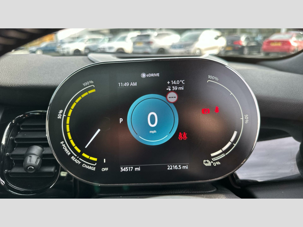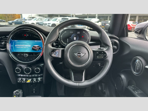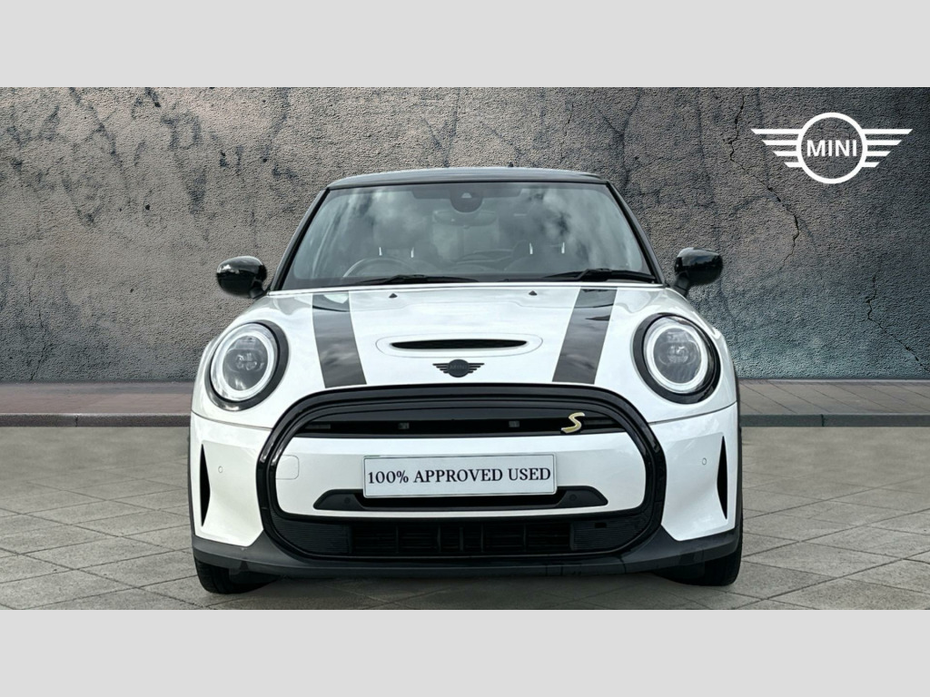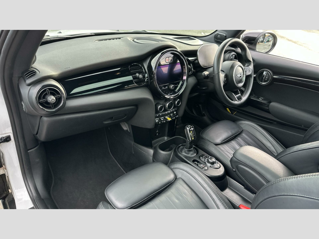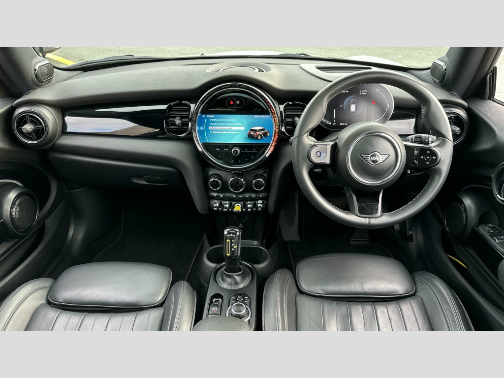 This 2022 MINI Electric Hatch Cooper SE Level 3 is a MINI manufacturer approved vehicle with a full service history, last serviced on 23 January 2025 at 32,299 miles, and has had only one owner from new. This electric model boasts a 33 kWh battery offering a maximum range of 142 miles when new. It features a striking Panoramic Glass Sunroof, providing an open and airy feel to the cabin. The vehicle comes with 12 months warranty and 12 months MOT provided on purchase, ensuring peace of mind.Experience the responsive performance of this MINI Electric Hatch, with an impressive 0 to 62mph acceleration time of just 7.3 seconds, demonstrating its agility compared to other electric vehicles. Charging is convenient, with a full charge at home on a 7kW charger taking approximately 5 hours and 15 minutes, and a rapid charge to 80% achievable in just 36 minutes at a public charging station. This combination of performance, convenience, and premium features makes this Cooper SE Level 3 a compelling choice.. Tyre Repair Kit, Nappa leather steering wheel, Multifunction Controls on Steering Wheel, Reversing Camera, Electric Folding Door Mirrors, Comfort Access, Anthracite Roof Lining, Interior Trim Piano Black, Charging cable Professional (Mode 3), Auxiliary Cabin Heating System, Ambient Lighting, 22KW High Speed Charging, DC Rapid Charging, eDrive Exterior Sound, MINI Driving Modes, Panoramic Glass Sunroof, Rear-view Mirror with Auto dimming, Front Armrest, Sport seats, Extended storage, Heated front seats, Rear Fog Light, Driving Assistant, Unavailable - upgraded as standard., Parking Assistant & Parking Sensors Fron, Flexible CarSharing Preparation, Auto headlights with rain sensor, Automatic Air Conditioning, Additional Interior Lighting, MINI Head-up Display, MINI TeleServices, BMW Emergency Call, eDrive Services, MINI Online Services, Real Time Traffic Information, Remote Services, Smartphone Integration, Visual Boost Radio, MINI Connected, MINI Connected XL, Enhanced Bluetooth- wireless charging, MINI Navigation System, Digital Cockpit, DAB Radio, Harman/Kardon Surround Sound Audio, White Indicator Lenses, Level 3 Pack, Mode 2 Charge Cable, 17'' Tentacle Spoke black, Piano Black Exterior, Black Bonnet Stripes, Roof and Mirrors Caps in Black, Sun Protection Glass, Cruise Control. Full service history