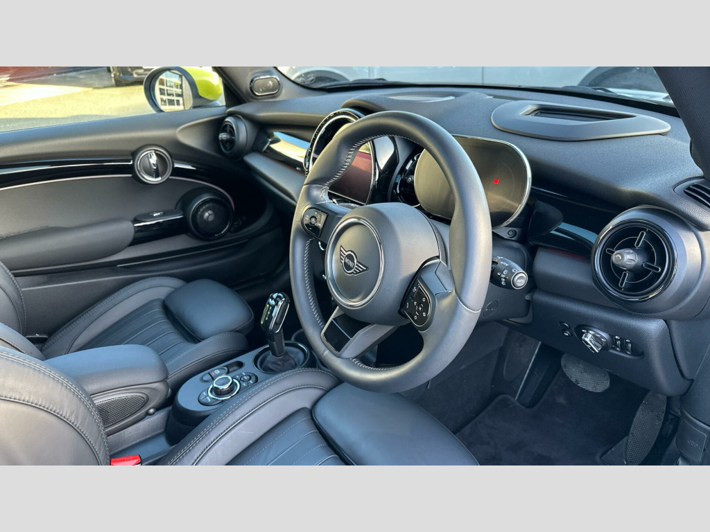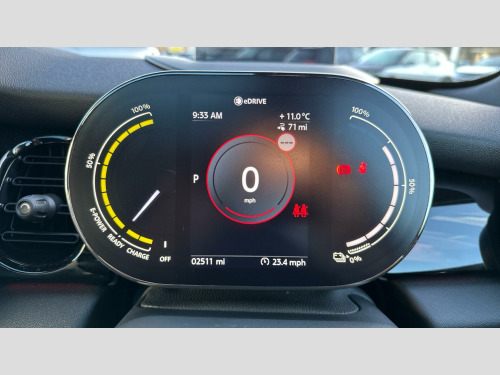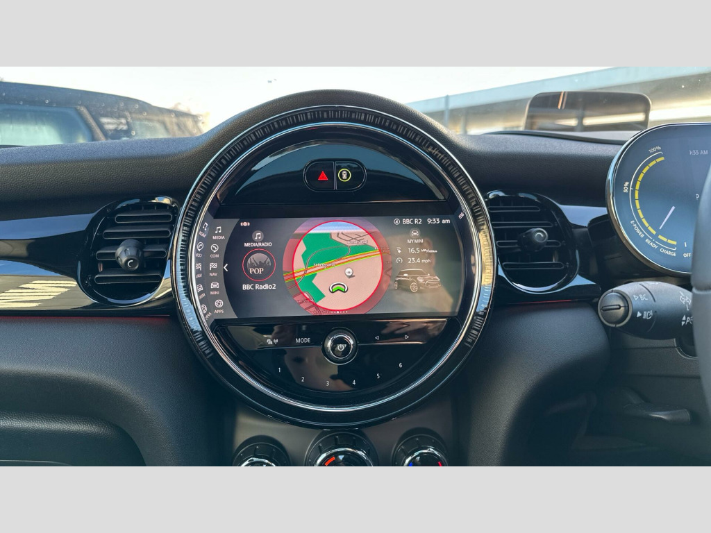 This 2023 MINI Electric Hatch Cooper SE Level 3 boasts exceptionally low mileage, having covered just 2511 miles. As a MINI manufacturer approved vehicle, it offers peace of mind alongside its electric powertrain. This Level 3 trim model features a 33 kWh battery, providing a maximum range of 142 miles when new. Charging is convenient, with a full charge at home using a 7kW charger taking approximately 5 hours and 15 minutes, while rapid public charging can take the battery from empty to 80% in just 36 minutes. A standout feature is the opening panoramic glass sunroof, adding an open and airy feel to the cabin.Experience the responsive performance of this MINI Electric Hatch, which accelerates from 0 to 62mph in a swift 7.3 seconds. This brisk acceleration demonstrates its capability and makes for an engaging driving experience, setting it apart from many other electric vehicles. The combination of its compact size, electric efficiency, and the added luxury of the panoramic sunroof makes this Cooper SE Level 3 a compelling choice for those seeking a stylish and practical electric car.. Tyre Repair Kit, Nappa leather steering wheel, Multifunction Controls on Steering Wheel, Reversing Camera, Electric Folding Door Mirrors, Comfort Access, Anthracite Roof Lining, Interior Trim Piano Black, Charging cable Professional (Mode 3), Auxiliary Cabin Heating System, Ambient Lighting, 22KW High Speed Charging, DC Rapid Charging, eDrive Exterior Sound, MINI Driving Modes, Panoramic Glass Sunroof, Rear-view Mirror with Auto dimming, Front Armrest, Sport seats, Extended storage, Heated front seats, Rear Fog Light, Driving Assistant, Unavailable - upgraded as standard., Parking Assistant & Parking Sensors Fron, Flexible CarSharing Preparation, Auto headlights with rain sensor, Automatic Air Conditioning, Additional Interior Lighting, MINI Head-up Display, MINI TeleServices, BMW Emergency Call, eDrive Services, MINI Online Services, Real Time Traffic Information, Remote Services, Smartphone Integration, Visual Boost Radio, MINI Connected, MINI Connected XL, Enhanced Bluetooth- wireless charging, MINI Navigation System, Digital Cockpit, DAB Radio, Harman/Kardon Surround Sound Audio, White Indicator Lenses, Level 3 Pack, Mode 2 Charge Cable, 17'' Roulette Spoke, Yellow Mirror Caps, Roof and Mirrors Caps in Black, Cruise Control.