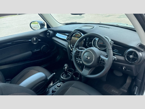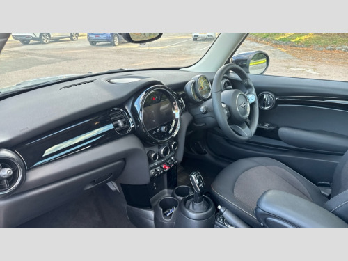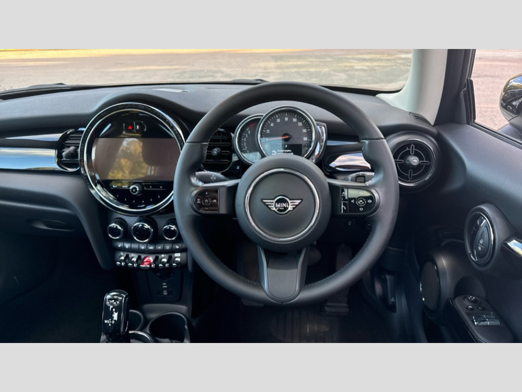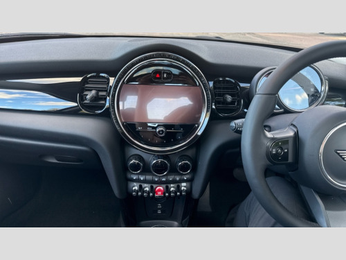 MINI Hatchback 1.5 Cooper Classic 3dr Auto Apple CarPlay, Automatic start/stop function with brake energy recuperation, Compatible mobile phone bluetooth with audio streaming, Cruise control with brake assist, Electro-mechanical speed dependant steering assistance, Flexible car sharing preparation, Instrument cluster, Mini E-call, MINI TeleServices, On board computer, Service interval indicator, Double Vanos system, Fully variable valve control, High precision injection, Performance Control, Steptronic transmission with double clutch, 8.8" touchscreen with LED ring, FM tuner and DAB digital radio, 3rd brake light, Automatic headlight activation switch, Body colour fuel filler cap, Chrome border high gloss black slats radiator grille, Dynamic brake lights, Electric front windows, Exhaust tailpipe on left with chrome finisher, Heated rear window, Heated windscreen washer jets, LED headlight with closed ring and daytime driving lights, Metal door sill strips with MINI imprint, Model logo Cooper on right of tailgate, Rain sensor window wipers, Rear fog lights, Rear LED lights with union jack design, Rear window wiper, Side scuttle panel with integrated indicator, Sun/heat protection glass, White indicator lenses, 12V Accessory socket in centre console, 2 seat bench in 2nd row, 4 lashing eyes in luggage compartment, 60/40 split folding rear seat, Ambient lighting, Carbon black colour line - Knee roll and door armrest, Chrome interior highlights, Cupholders, Front and rear head restraints, Front and rear isofix with front passenger airbag deactivation, Front floor mats in velour, Glove compartment, Height and length steering column adjustment, Interior lighting with 12 different colours across the dashboard, underneath door bezel with illuminated laser-engraved design on central display, Leatherette gearshift lever and handbrake gaiters, LED reading lights, vanity mirror lights, front foot well light and spotlight on front seats, Manual air conditioning, Mechanical seat adjustment - forward/back & backrest for front seats and driver seat height adjust, Multifunction steering wheel, Passenger seat height adjuster, Satellite grey headlining including grab handles and clothes hooks, Single front passenger seat, Sport leather steering wheel with speed limiter and audio/communication controls, Storage compartments in doors, Sunvisors with vanity mirrors, 3 point seatbelts on all four seats, 6 Airbags - front, side, head and seat belt tensioners, Anti-lock braking system (ABS), DSC - Dynamic Stability Control, Front and rear disc brakes, Single tone fanfare horn, Tyre pressure monitoring system, Alarm system with tilt sensor, monitoring doors, bonnet interior and tailgate, Electronic vehicle immobiliser, Start/stop toggle with keyless go, Piano black interior trim, Tool kit, Tyre repair kit