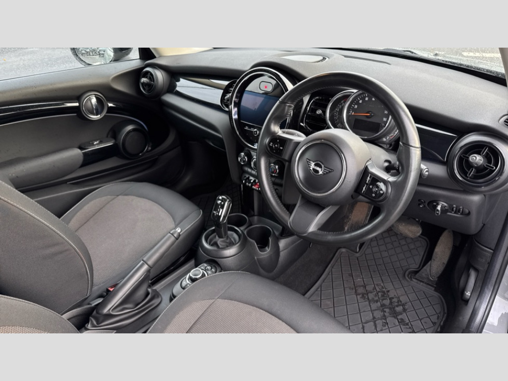MINI Hatchback 1.5 Cooper Classic 3dr Auto Apple CarPlay, Automatic start/stop function with brake energy recuperation, Compatible mobile phone bluetooth with audio streaming, Electro-mechanical speed dependant steering assistance, Flexible car sharing preparation, Mini E-call, MINI TeleServices, On board computer, Service interval indicator, Double Vanos system, Fully variable valve control, High precision injection, Performance Control, Steptronic transmission with double clutch, 8.8" touchscreen with LED ring, FM tuner and DAB digital radio, 3rd brake light, Automatic headlight activation switch, Body colour fuel filler cap, Chrome border high gloss black slats radiator grille, Dynamic brake lights, Electric front windows, Exhaust tailpipe on left with chrome finisher, Heated rear window, Heated windscreen washer jets, Metal door sill strips with MINI imprint, Model logo Cooper on right of tailgate, Rain sensor window wipers, Rear fog lights, Rear LED lights with union jack design, Rear window wiper, Side scuttle panel with integrated indicator, Sun/heat protection glass, White indicator lenses, 12V Accessory socket in centre console, 2 seat bench in 2nd row, 4 lashing eyes in luggage compartment, 60/40 split folding rear seat, Ambient lighting, Carbon black colour line - Knee roll and door armrest, Chrome interior highlights, Cupholders, Front and rear head restraints, Front and rear isofix with front passenger airbag deactivation, Front floor mats in velour, Glove compartment, Height and length steering column adjustment, Interior lighting with 12 different colours across the dashboard, underneath door bezel with illuminated laser-engraved design on central display, Leatherette gearshift lever and handbrake gaiters, LED reading lights, vanity mirror lights, front foot well light and spotlight on front seats, Mechanical seat adjustment - forward/back & backrest for front seats and driver seat height adjust, Multifunction steering wheel, Passenger seat height adjuster, Satellite grey headlining including grab handles and clothes hooks, Single front passenger seat, Sport leather steering wheel with speed limiter and audio/communication controls, Storage compartments in doors, Sunvisors with vanity mirrors, 3 point seatbelts on all four seats, 6 Airbags - front, side, head and seat belt tensioners, Anti-lock braking system (ABS), DSC - Dynamic Stability Control, Front and rear disc brakes, Single tone fanfare horn, Tyre pressure monitoring system, Alarm system with tilt sensor, monitoring doors, bonnet interior and tailgate, Electronic vehicle immobiliser, Start/stop toggle with keyless go, Piano black interior trim, Tool kit, Tyre repair kit
