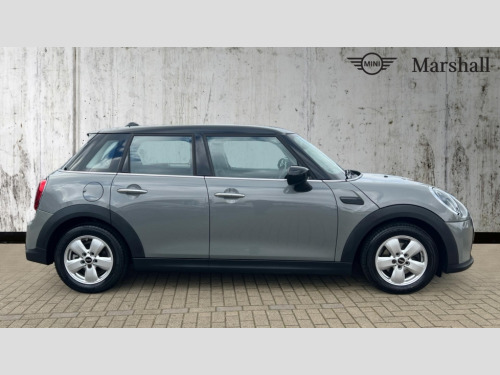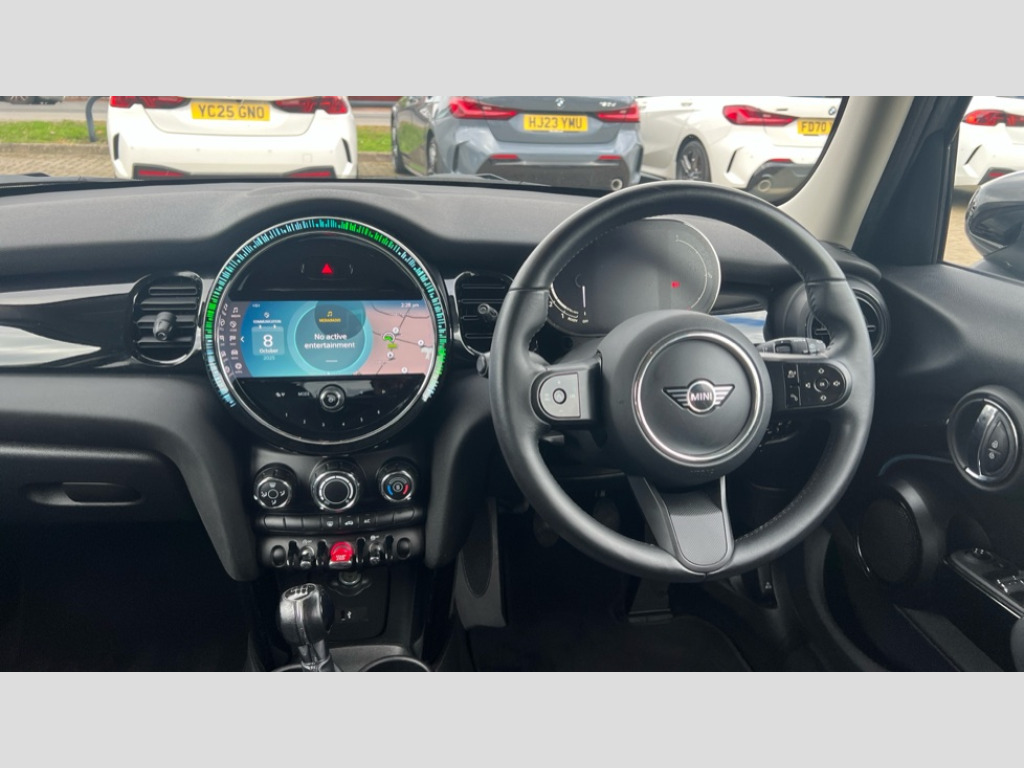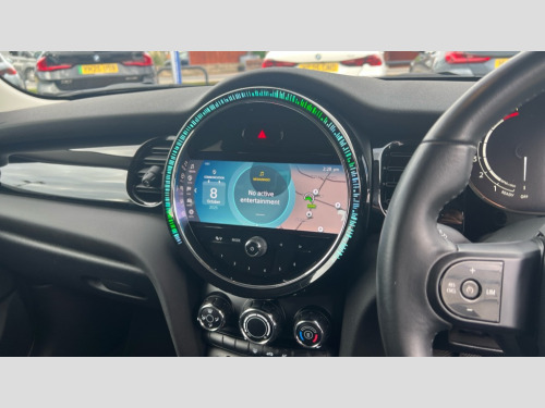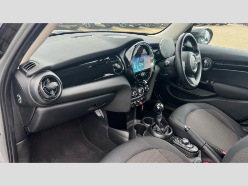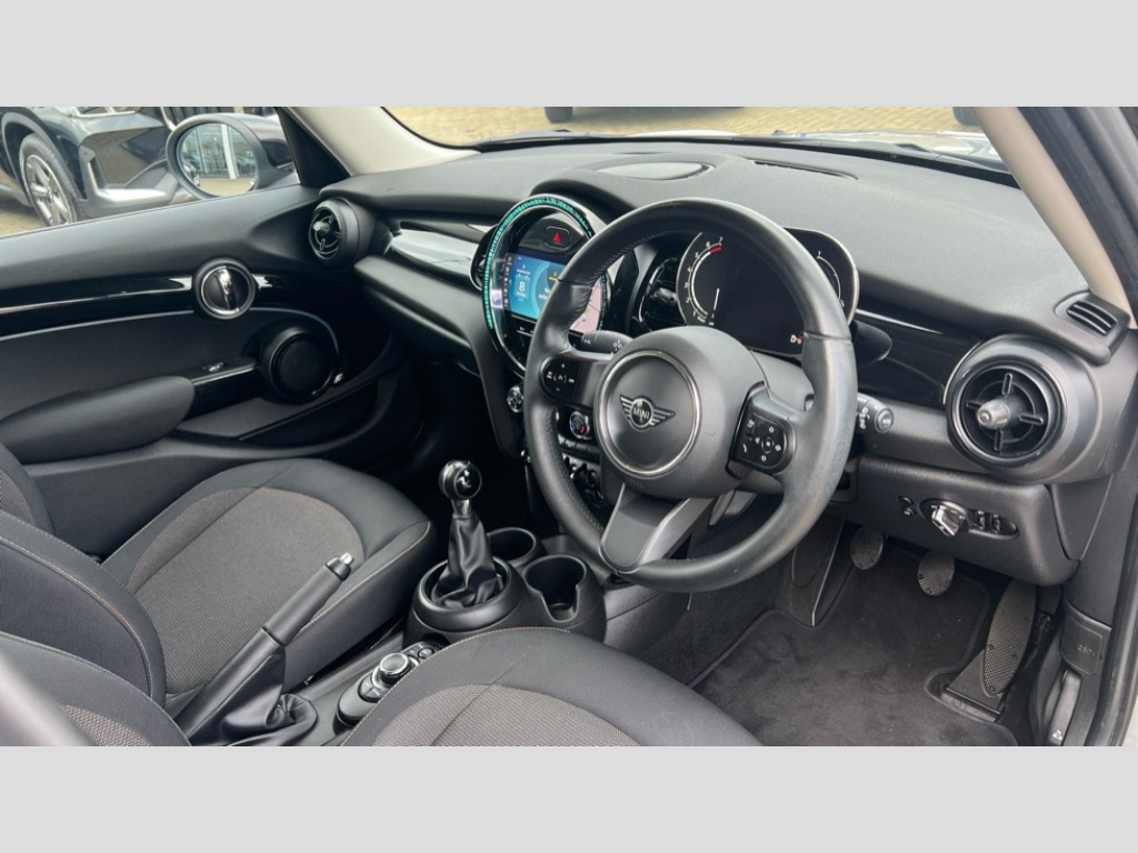 MINI Hatchback 1.5 Cooper Classic 5dr Automatic start/stop function with brake energy recuperation, Compatible mobile phone bluetooth with audio streaming, Cruise control with brake assist, Electro-mechanical speed dependant steering assistance, Flexible car sharing preparation, Instrument cluster, Mini E-call, MINI TeleServices, On board computer, Service interval indicator, 6 Speed manual transmission including gear change indicator display, Double Vanos system, Fully variable valve control, High precision injection, Performance Control, 6 speakers in front door trims and underneath front seats, 8.8" touchscreen with LED ring, FM tuner and DAB digital radio, Automatic headlight activation switch, Body colour fuel filler cap, Chrome border high gloss black slats radiator grille, Dynamic brake lights, Electric front+rear windows, Exhaust tailpipe on left with chrome finisher, Heated rear window, Heated windscreen washer jets, LED headlight with closed ring and daytime driving lights, Metal door sill strips with MINI imprint, Model logo Cooper on right of tailgate, Rain sensor window wipers, Rear fog lights, Rear LED lights with union jack design, Rear window wiper, Side scuttle panel with integrated indicator, Sun/heat protection glass, White indicator lenses, 12V Accessory socket in centre console, 4 lashing eyes in luggage compartment, 60/40 split folding rear seat, Ambient lighting, Carbon black colour line - Knee roll and door armrest, Chrome interior highlights, Cupholders, Front and rear head restraints, Front and rear isofix with front passenger airbag deactivation, Glove compartment, Height and length steering column adjustment, Interior lighting with 12 different colours across the dashboard, underneath door bezel with illuminated laser-engraved design on central display, Leatherette gearshift lever and handbrake gaiters, LED reading lights, vanity mirror lights, front foot well light and spotlight on front seats, Manual air conditioning, Mechanical seat adjustment - forward/back & backrest for front seats and driver seat height adjust, Multifunction steering wheel, Satellite grey headlining including grab handles and clothes hooks, Sport leather steering wheel with speed limiter and audio/communication controls, Storage compartments in doors, Sunvisors with vanity mirrors, Velour floor mats, 3 point seatbelts on all five seats, 6 Airbags - front, side, head and seat belt tensioners, Anti-lock braking system (ABS), DSC - Dynamic Stability Control, Front and rear disc brakes, Hill start assist, Single tone fanfare horn, Tyre pressure monitoring system, Alarm system with tilt sensor, monitoring doors, bonnet interior and tailgate, Electronic vehicle immobiliser, Start/stop toggle with keyless go, Piano black interior trim, Tool kit, Tyre repair kit