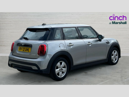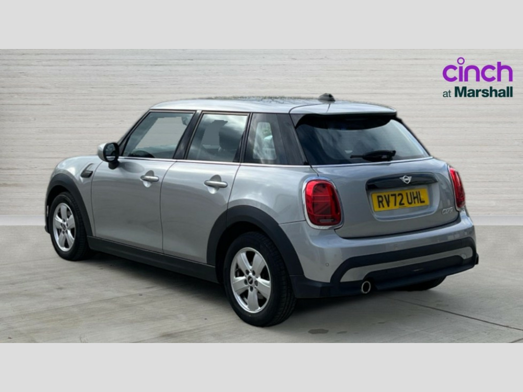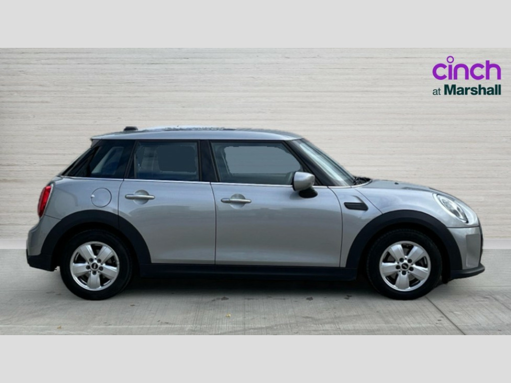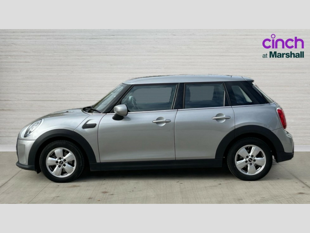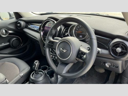MINI Hatchback 1.5 Cooper Classic 5dr Auto Apple CarPlay, Automatic start/stop function with brake energy recuperation, Compatible mobile phone bluetooth with audio streaming, Cruise control with brake assist, Electro-mechanical speed dependant steering assistance, Flexible car sharing preparation, Instrument cluster, Mini E-call, MINI TeleServices, On board computer, Service interval indicator, Double Vanos system, Fully variable valve control, Gear change indicator display, High precision injection, Performance Control, Steptronic transmission with double clutch, 8.8" touchscreen with LED ring, FM tuner and DAB digital radio, 3rd brake light, Automatic headlight activation switch, Body colour fuel filler cap, Chrome border high gloss black slats radiator grille, Dynamic brake lights, Electric front+rear windows, Exhaust tailpipe on left with chrome finisher, Heated rear window, Heated windscreen washer jets, LED headlight with closed ring and daytime driving lights, Metal door sill strips with MINI imprint, Model logo Cooper on right of tailgate, Rain sensor window wipers, Rear fog lights, Rear LED lights with union jack design, Rear side wing doors, Rear window wiper, Side scuttle panel with integrated indicator, Sun/heat protection glass, White indicator lenses, 12V Accessory socket in centre console, 3 seat bench in 2nd row, 4 lashing eyes in luggage compartment, 60/40 split folding rear seat, Ambient lighting, Carbon black colour line - Knee roll and door armrest, Chrome interior highlights, Cupholders, Front and rear head restraints, Front and rear isofix with front passenger airbag deactivation, Front and rear velour floor mats, Glove compartment, Height and length steering column adjustment, Interior lighting with 12 different colours across the dashboard, underneath door bezel with illuminated laser-engraved design on central display, Leatherette gearshift lever and handbrake gaiters, LED reading lights, vanity mirror lights, front foot well light and spotlight on front seats, Manual air conditioning, Mechanical seat adjustment - forward/back & backrest for front seats and driver seat height adjust, Multifunction steering wheel, Satellite grey headlining including grab handles and clothes hooks, Single front passenger seat, Sport leather steering wheel with speed limiter and audio/communication controls, Storage compartments in doors, Sunvisors with vanity mirrors, 3 point seatbelts on all five seats, 6 Airbags - front, side, head and seat belt tensioners, Anti-lock braking system (ABS), Child locks on rear doors, DSC - Dynamic Stability Control, Front and rear disc brakes, Hill start assist, Single tone fanfare horn, Tyre pressure monitoring system, Alarm system with tilt sensor, monitoring doors, bonnet interior and tailgate, Electronic vehicle immobiliser, Start/stop toggle with keyless go, Piano black interior trim, Tool kit, Tyre repair kit
