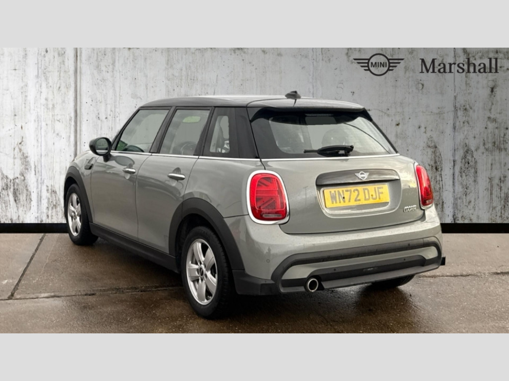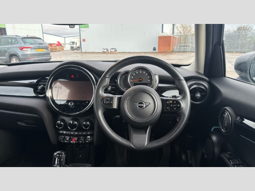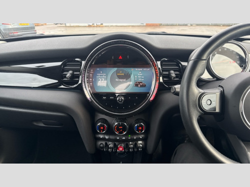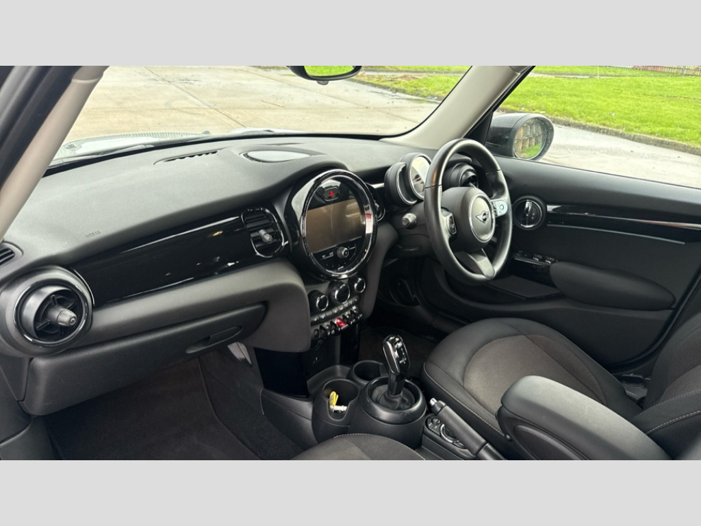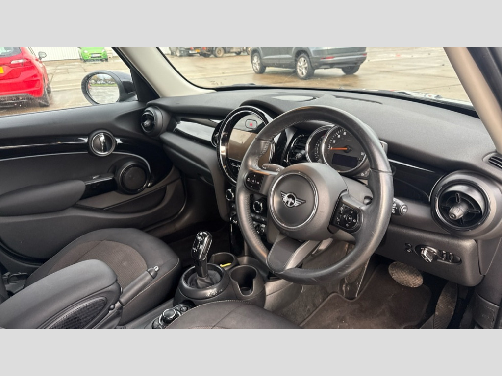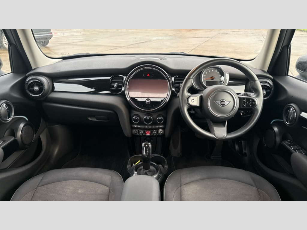 MINI Hatchback 1.5 Cooper Classic 5dr Auto Apple CarPlay, Automatic start/stop function with brake energy recuperation, Compatible mobile phone bluetooth with audio streaming, Cruise control with brake assist, Electro-mechanical speed dependant steering assistance, Flexible car sharing preparation, Instrument cluster, Mini E-call, MINI TeleServices, On board computer, Service interval indicator, Double Vanos system, Fully variable valve control, Gear change indicator display, High precision injection, Performance Control, Steptronic transmission with double clutch, 8.8" touchscreen with LED ring, FM tuner and DAB digital radio, 3rd brake light, Automatic headlight activation switch, Body colour fuel filler cap, Chrome border high gloss black slats radiator grille, Dynamic brake lights, Electric front+rear windows, Exhaust tailpipe on left with chrome finisher, Heated rear window, Heated windscreen washer jets, LED headlight with closed ring and daytime driving lights, Metal door sill strips with MINI imprint, Model logo Cooper on right of tailgate, Rain sensor window wipers, Rear fog lights, Rear LED lights with union jack design, Rear side wing doors, Rear window wiper, Side scuttle panel with integrated indicator, Sun/heat protection glass, White indicator lenses, 12V Accessory socket in centre console, 3 seat bench in 2nd row, 4 lashing eyes in luggage compartment, 60/40 split folding rear seat, Ambient lighting, Carbon black colour line - Knee roll and door armrest, Chrome interior highlights, Cupholders, Front and rear head restraints, Front and rear isofix with front passenger airbag deactivation, Front and rear velour floor mats, Glove compartment, Height and length steering column adjustment, Interior lighting with 12 different colours across the dashboard, underneath door bezel with illuminated laser-engraved design on central display, Leatherette gearshift lever and handbrake gaiters, LED reading lights, vanity mirror lights, front foot well light and spotlight on front seats, Manual air conditioning, Mechanical seat adjustment - forward/back & backrest for front seats and driver seat height adjust, Multifunction steering wheel, Satellite grey headlining including grab handles and clothes hooks, Single front passenger seat, Sport leather steering wheel with speed limiter and audio/communication controls, Storage compartments in doors, Sunvisors with vanity mirrors, 3 point seatbelts on all five seats, 6 Airbags - front, side, head and seat belt tensioners, Anti-lock braking system (ABS), Child locks on rear doors, DSC - Dynamic Stability Control, Front and rear disc brakes, Hill start assist, Single tone fanfare horn, Tyre pressure monitoring system, Alarm system with tilt sensor, monitoring doors, bonnet interior and tailgate, Electronic vehicle immobiliser, Start/stop toggle with keyless go, Piano black interior trim, Tool kit, Tyre repair kit