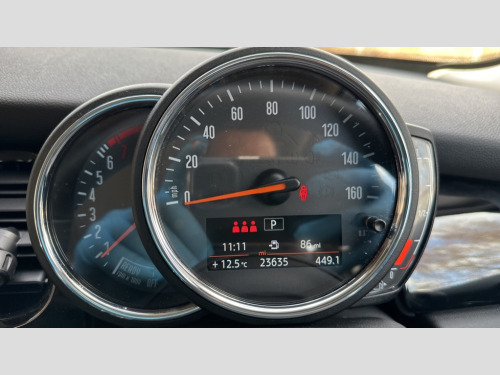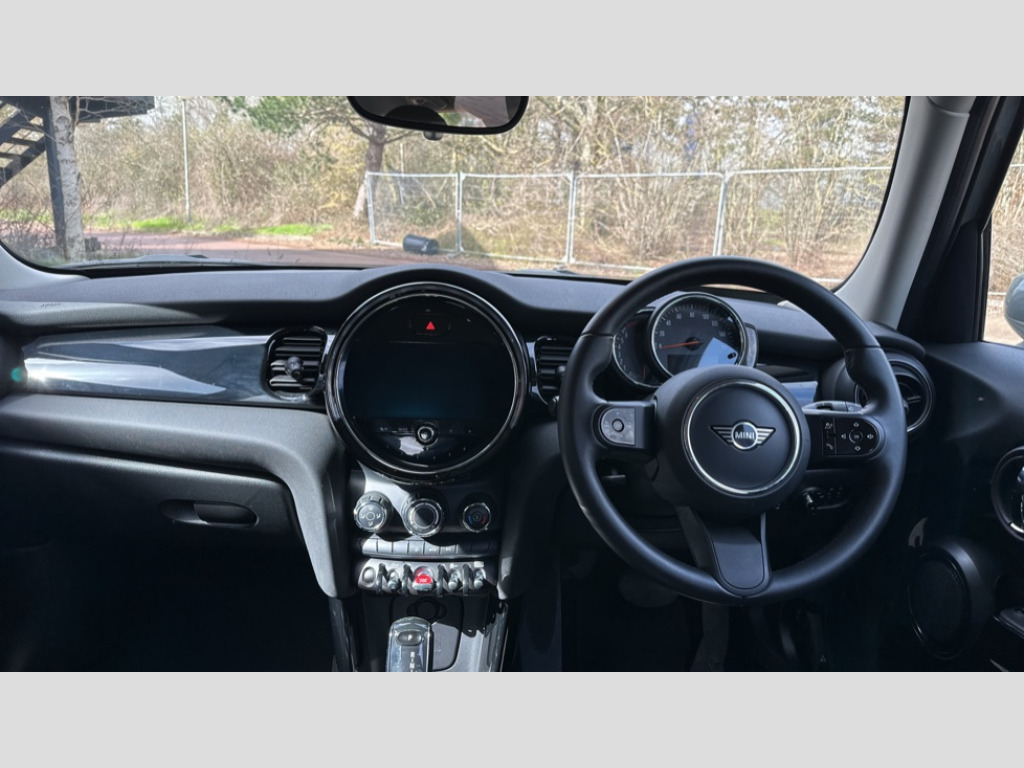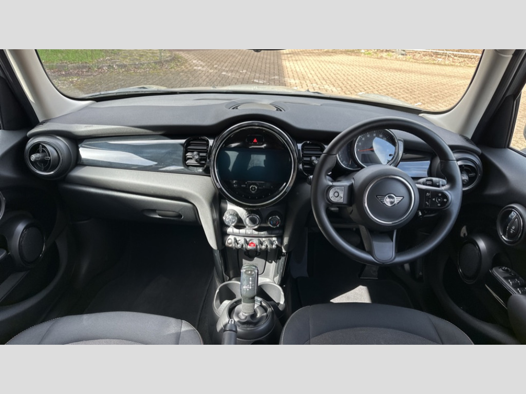 MINI Hatchback 1.5 Cooper Classic 5dr Auto Automatic start/stop function with brake energy recuperation, Compatible mobile phone bluetooth with audio streaming, Cruise control with brake assist, Electro-mechanical speed dependant steering assistance, Flexible car sharing preparation, Instrument cluster, Mini E-call, MINI TeleServices, On board computer, Service interval indicator, Double Vanos system, Fully variable valve control, Gear change indicator display, High precision injection, Performance Control, Steptronic transmission with double clutch, 6 speakers in front door trims and underneath front seats, 8.8" touchscreen with LED ring, FM tuner and DAB digital radio, Automatic headlight activation switch, Body colour fuel filler cap, Chrome border high gloss black slats radiator grille, Dynamic brake lights, Electric front+rear windows, Exhaust tailpipe on left with chrome finisher, Heated rear window, Heated windscreen washer jets, LED headlight with closed ring and daytime driving lights, Metal door sill strips with MINI imprint, Model logo Cooper on right of tailgate, Rain sensor window wipers, Rear fog lights, Rear LED lights with union jack design, Rear window wiper, Side scuttle panel with integrated indicator, Sun/heat protection glass, White indicator lenses, 12V Accessory socket in centre console, 4 lashing eyes in luggage compartment, 60/40 split folding rear seat, Ambient lighting, Carbon black colour line - Knee roll and door armrest, Chrome interior highlights, Cupholders, Front and rear head restraints, Front and rear isofix with front passenger airbag deactivation, Glove compartment, Height and length steering column adjustment, Interior lighting with 12 different colours across the dashboard, underneath door bezel with illuminated laser-engraved design on central display, Leatherette gearshift lever and handbrake gaiters, LED reading lights, vanity mirror lights, front foot well light and spotlight on front seats, Manual air conditioning, Mechanical seat adjustment - forward/back & backrest for front seats and driver seat height adjust, Multifunction steering wheel, Satellite grey headlining including grab handles and clothes hooks, Sport leather steering wheel with speed limiter and audio/communication controls, Storage compartments in doors, Sunvisors with vanity mirrors, Velour floor mats, Navigation pack without Digital dash - Mini Hatchback, 3 point seatbelts on all five seats, 6 Airbags - front, side, head and seat belt tensioners, Anti-lock braking system (ABS), DSC - Dynamic Stability Control, Front and rear disc brakes, Hill start assist, Single tone fanfare horn, Tyre pressure monitoring system, Alarm system with tilt sensor, monitoring doors, bonnet interior and tailgate, Electronic vehicle immobiliser, Start/stop toggle with keyless go, Piano black interior trim, Tool kit, Tyre repair kit