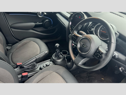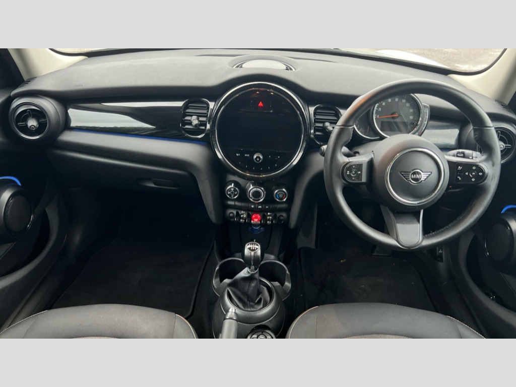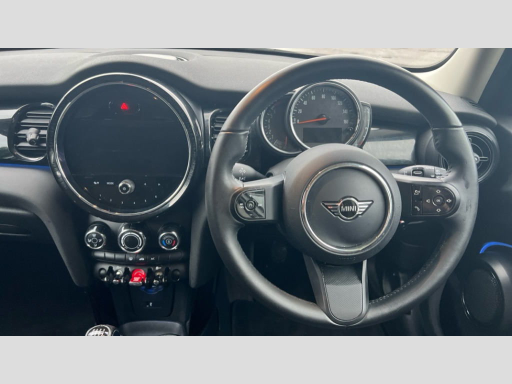 MINI Hatchback 1.5 Cooper Classic 5dr Automatic start/stop function with brake energy recuperation, Compatible mobile phone bluetooth with audio streaming, Cruise control with brake assist, Electro-mechanical speed dependant steering assistance, Flexible car sharing preparation, Instrument cluster, Mini E-call, MINI TeleServices, On board computer, Service interval indicator, 6 Speed manual transmission including gear change indicator display, Double Vanos system, Fully variable valve control, High precision injection, Performance Control, 6 speakers in front door trims and underneath front seats, 8.8" touchscreen with LED ring, FM tuner and DAB digital radio, Automatic headlight activation switch, Body colour fuel filler cap, Chrome border high gloss black slats radiator grille, Dynamic brake lights, Electric front+rear windows, Exhaust tailpipe on left with chrome finisher, Heated rear window, Heated windscreen washer jets, LED headlight with closed ring and daytime driving lights, Metal door sill strips with MINI imprint, Model logo Cooper on right of tailgate, Rain sensor window wipers, Rear fog lights, Rear LED lights with union jack design, Rear window wiper, Side scuttle panel with integrated indicator, Sun/heat protection glass, White indicator lenses, 12V Accessory socket in centre console, 4 lashing eyes in luggage compartment, 60/40 split folding rear seat, Ambient lighting, Carbon black colour line - Knee roll and door armrest, Chrome interior highlights, Cupholders, Front and rear head restraints, Front and rear isofix with front passenger airbag deactivation, Glove compartment, Height and length steering column adjustment, Interior lighting with 12 different colours across the dashboard, underneath door bezel with illuminated laser-engraved design on central display, Leatherette gearshift lever and handbrake gaiters, LED reading lights, vanity mirror lights, front foot well light and spotlight on front seats, Manual air conditioning, Mechanical seat adjustment - forward/back & backrest for front seats and driver seat height adjust, Multifunction steering wheel, Satellite grey headlining including grab handles and clothes hooks, Sport leather steering wheel with speed limiter and audio/communication controls, Storage compartments in doors, Sunvisors with vanity mirrors, Velour floor mats, Navigation pack without Digital dash - Mini Hatchback, 3 point seatbelts on all five seats, 6 Airbags - front, side, head and seat belt tensioners, Anti-lock braking system (ABS), DSC - Dynamic Stability Control, Front and rear disc brakes, Hill start assist, Single tone fanfare horn, Tyre pressure monitoring system, Alarm system with tilt sensor, monitoring doors, bonnet interior and tailgate, Electronic vehicle immobiliser, Start/stop toggle with keyless go, Piano black interior trim, Tool kit, Tyre repair kit