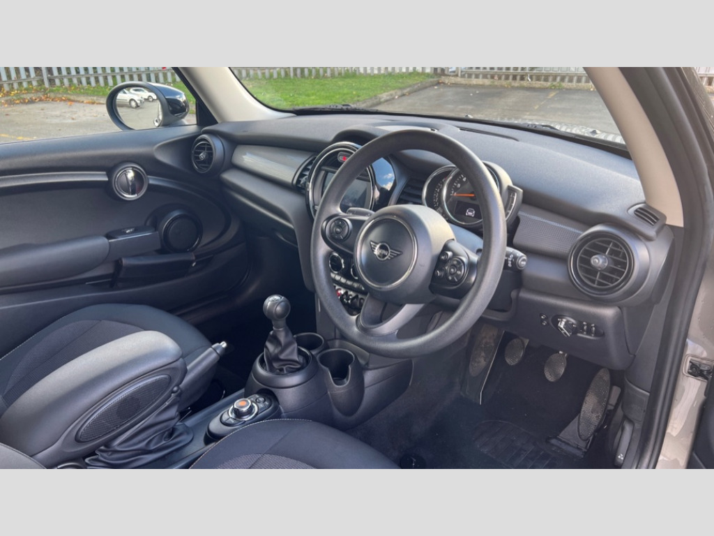 MINI Hatchback 1.5 Cooper Classic II 3dr Automatic start/stop function with brake energy recuperation, Compatible mobile phone bluetooth with audio streaming, Electro-mechanical speed dependant steering assistance, Instrument cluster, Mini E-call, MINI TeleServices, On board computer, Service interval indicator, Double Vanos system, Fully variable valve control, High precision injection, 6.5" touchscreen with LED ring, FM tuner and DAB digital radio, Automatic headlight activation switch, Body colour fuel filler cap, Chrome border high gloss black slats radiator grille, Dynamic brake lights, Electric front+rear windows, Heated rear window, Heated windscreen washer jets, LED headlight with closed ring and daytime driving lights, Left exhaust tailpipe with chrome finisher, Metal door sill strips with MINI imprint, Model logo Cooper on right of tailgate, Rain sensor window wipers, Rear fog lights, Rear LED lights with union jack design, Rear window wiper, Side scuttle panel with integrated indicator, Sun/heat protection glass, White indicator lenses, 12V Accessory socket in centre console, 4 lashing eyes in luggage compartment, 60/40 split folding rear seat, Chrome interior highlights, Colour line - Carbon black, Cupholders, Front and rear head restraints, Front and rear isofix with front passenger airbag deactivation, Glove compartment, Height and length steering column adjustment, Interior lighting with 12 basic colours selectable via toggle switch in roof, Leather gearshift lever and handbrake gaiters, LED reading lights, vanity mirror lights, front foot well light and spotlight on front seats, Manual air conditioning, Mechanical seat adjustment, driver seat height adjust, forward/back and front seats backrest, Mini logo projection on floor from drivers exterior mirror, Multifunction steering wheel, Satellite grey headlining, Storage compartments in doors, Sunvisors with vanity mirrors, 3 point seatbelts on all four seats, 6 Airbags - front, side, head and seat belt tensioners, Anti-lock braking system (ABS), DSC - Dynamic Stability Control, Front and rear disc brakes, Hill start assist, Single tone fanfare horn, Tyre pressure monitoring system, Alarm system with tilt sensor, monitoring doors, bonnet interior and tailgate, Electronic vehicle immobiliser, Start/stop toggle with keyless go, Tool kit