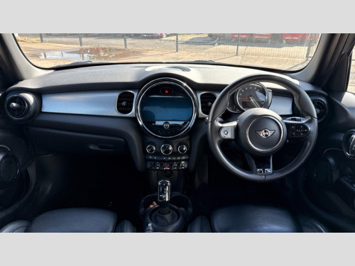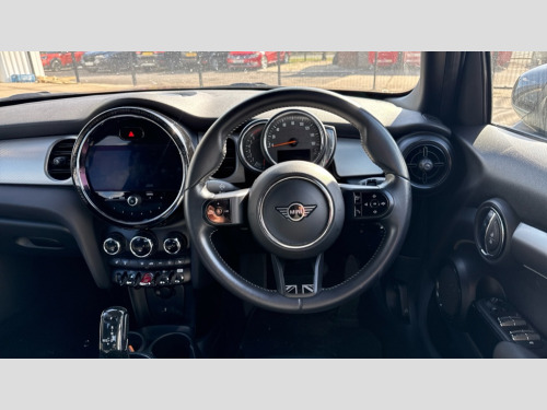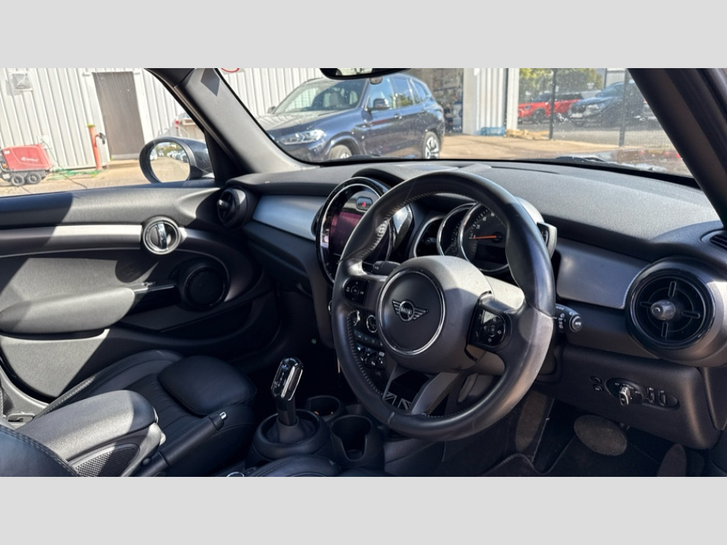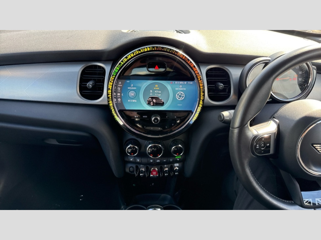 MINI Hatchback 1.5 Cooper Exclusive 5dr Auto Apple CarPlay, Automatic start/stop function with brake energy recuperation, Compatible mobile phone bluetooth with audio streaming, Cruise control with brake assist, Electro-mechanical speed dependant steering assistance, Flexible car sharing preparation, Instrument cluster, MINI Driving Modes - centre toggle switch to control driving setting (sport, mid and green), Mini E-call, MINI TeleServices, On board computer, Rear park distance control, Service interval indicator, Double Vanos system, Fully variable valve control, Gear change indicator display, High precision injection, Performance Control, Steptronic transmission with double clutch, 8.8" touchscreen with LED ring, FM tuner and DAB digital radio, 3rd brake light, Automatic headlight activation switch, Body colour fuel filler cap, Chrome line exterior - radiator grille bars, tailgate handle, lower front grille grating and rear central fog-light, Dynamic brake lights, Electric front+rear windows, Heated rear window, Heated windscreen washer jets, LED headlight with closed ring and daytime driving lights, Metal door sill strips with MINI imprint, Model logo Cooper on right of tailgate, Rain sensor window wipers, Rear fog lights, Rear LED lights with union jack design, Rear side wing doors, Rear window wiper, Side scuttle panel with integrated indicator, Sun/heat protection glass, White indicator lenses, 12V Accessory socket in centre console, 3 seat bench in 2nd row, 4 lashing eyes in luggage compartment, 60/40 split folding rear seat, Anthracite headliner including grab handles and clothes hooks, Carbon black colour line - Knee roll and door armrest, Chrome interior highlights, Chrome line interior - air vents, gear lever base, door handles and speakers in doors, Cupholders, Front and rear head restraints, Front and rear isofix with front passenger airbag deactivation, Front and rear velour floor mats, Glove compartment, Height and length steering column adjustment, Interior lighting with 12 different colours across the dashboard, underneath door bezel with illuminated laser-engraved design on central display, Leatherette gearshift lever and handbrake gaiters, LED reading lights, vanity mirror lights, front foot well light and spotlight on front seats, Manual air conditioning, Mechanical seat adjustment - forward/back & backrest for front seats and driver seat height adjust, MINI yours badge on exterior pillar, Multifunction steering wheel, Single front passenger seat, Storage compartments in doors, Sunvisors with vanity mirrors, Walknappa leather steering wheel with grey seam and MINI Yours badge on Piano Black lower steering wheel spoke, 3 point seatbelts on all five seats, 6 Airbags - front, side, head and seat belt tensioners, Anti-lock braking system (ABS), Child locks on rear doors, DSC - Dynamic Stability Control, Front and rear disc brakes, Hill start assist, Single tone fanfare horn, Tyre pressure monitoring system, Alarm system with tilt sensor, monitoring doors, bonnet interior and tailgate, Electronic vehicle immobiliser, Start/stop toggle with keyless go, Tool kit