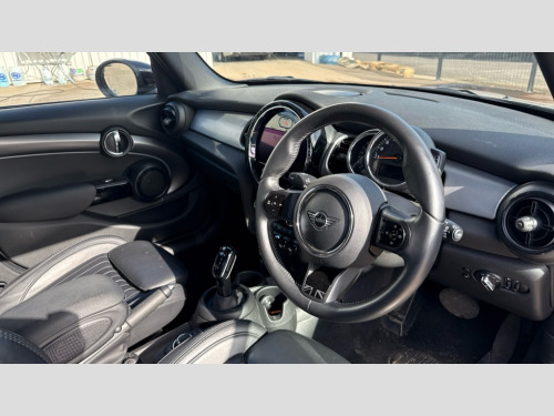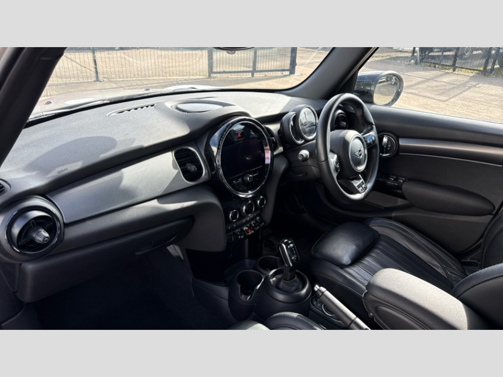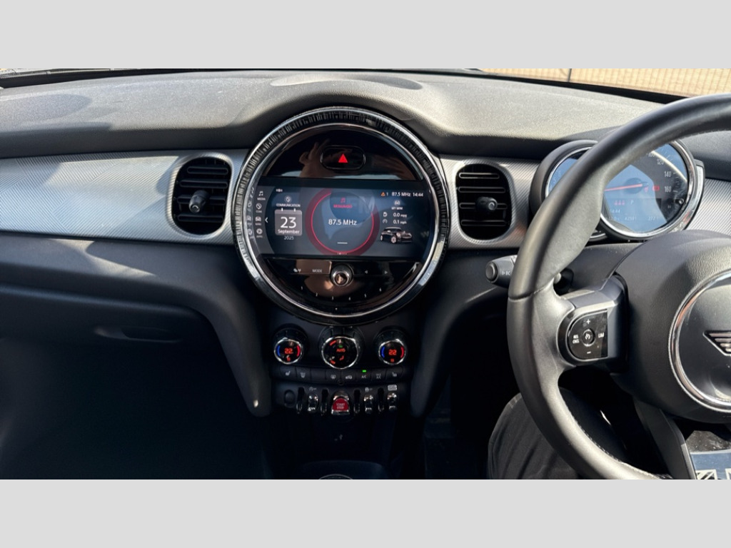 MINI Hatchback 1.5 Cooper Exclusive 5dr Auto Apple CarPlay, Automatic start/stop function with brake energy recuperation, Compatible mobile phone bluetooth with audio streaming, Cruise control with brake assist, Electro-mechanical speed dependant steering assistance, Flexible car sharing preparation, Instrument cluster, MINI Driving Modes - centre toggle switch to control driving setting (sport, mid and green), Mini E-call, MINI TeleServices, On board computer, Rear park distance control, Service interval indicator, Double Vanos system, Fully variable valve control, Gear change indicator display, High precision injection, Performance Control, Steptronic transmission with double clutch, 8.8" touchscreen with LED ring, FM tuner and DAB digital radio, 3rd brake light, Automatic headlight activation switch, Body colour fuel filler cap, Chrome line exterior - radiator grille bars, tailgate handle, lower front grille grating and rear central fog-light, Dynamic brake lights, Electric front+rear windows, Heated rear window, Heated windscreen washer jets, LED headlight with closed ring and daytime driving lights, Metal door sill strips with MINI imprint, Model logo Cooper on right of tailgate, Rain sensor window wipers, Rear fog lights, Rear LED lights with union jack design, Rear side wing doors, Rear window wiper, Side scuttle panel with integrated indicator, Sun/heat protection glass, White indicator lenses, 12V Accessory socket in centre console, 3 seat bench in 2nd row, 4 lashing eyes in luggage compartment, 60/40 split folding rear seat, Anthracite headliner including grab handles and clothes hooks, Carbon black colour line - Knee roll and door armrest, Chrome interior highlights, Chrome line interior - air vents, gear lever base, door handles and speakers in doors, Cupholders, Front and rear head restraints, Front and rear isofix with front passenger airbag deactivation, Front and rear velour floor mats, Glove compartment, Height and length steering column adjustment, Interior lighting with 12 different colours across the dashboard, underneath door bezel with illuminated laser-engraved design on central display, Leatherette gearshift lever and handbrake gaiters, LED reading lights, vanity mirror lights, front foot well light and spotlight on front seats, Manual air conditioning, Mechanical seat adjustment - forward/back & backrest for front seats and driver seat height adjust, MINI yours badge on exterior pillar, Multifunction steering wheel, Single front passenger seat, Storage compartments in doors, Sunvisors with vanity mirrors, Walknappa leather steering wheel with grey seam and MINI Yours badge on Piano Black lower steering wheel spoke, 3 point seatbelts on all five seats, 6 Airbags - front, side, head and seat belt tensioners, Anti-lock braking system (ABS), Child locks on rear doors, DSC - Dynamic Stability Control, Front and rear disc brakes, Hill start assist, Single tone fanfare horn, Tyre pressure monitoring system, Alarm system with tilt sensor, monitoring doors, bonnet interior and tailgate, Electronic vehicle immobiliser, Start/stop toggle with keyless go, Tool kit