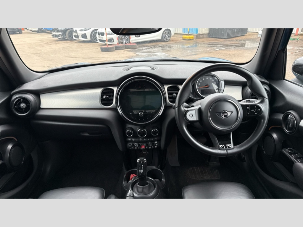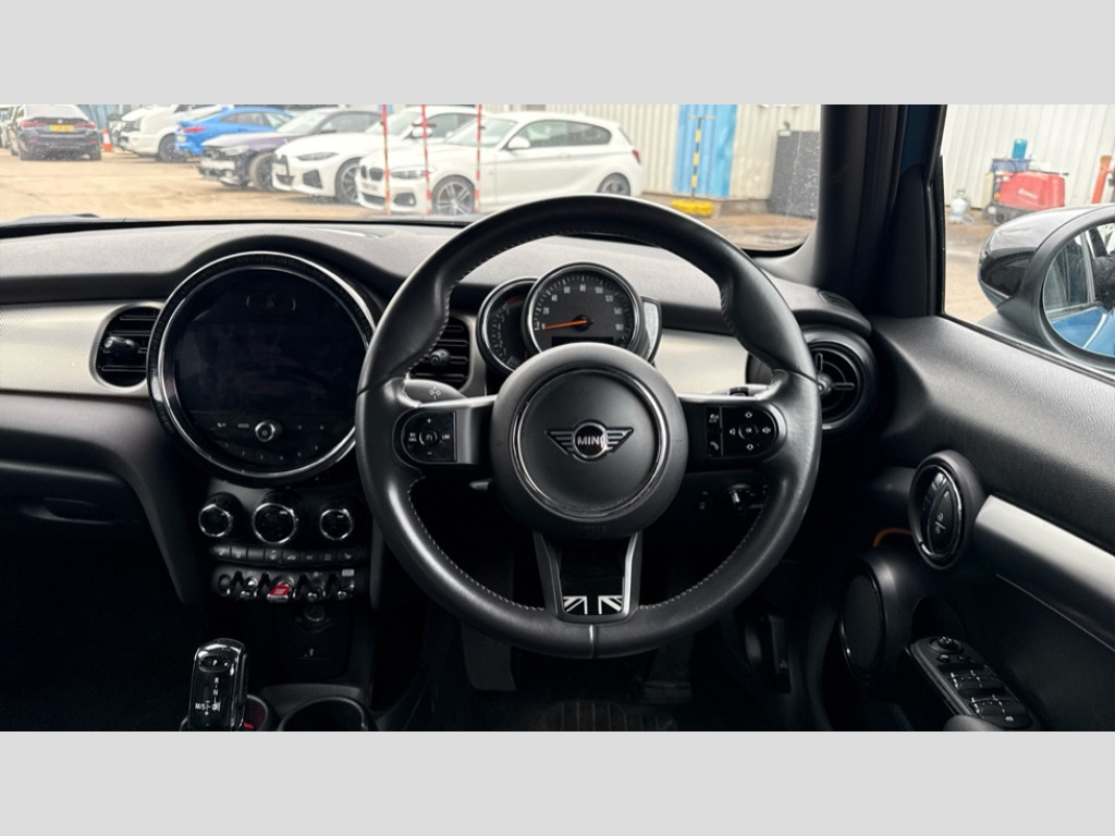 MINI Hatchback 1.5 Cooper Exclusive 5dr Auto Apple CarPlay, Automatic start/stop function with brake energy recuperation, Compatible mobile phone bluetooth with audio streaming, Cruise control with brake assist, Electro-mechanical speed dependant steering assistance, Flexible car sharing preparation, Instrument cluster, MINI Driving Modes - centre toggle switch to control driving setting (sport, mid and green), Mini E-call, MINI TeleServices, On board computer, Rear park distance control, Service interval indicator, Double Vanos system, Fully variable valve control, Gear change indicator display, High precision injection, Performance Control, Steptronic transmission with double clutch, 8.8" touchscreen with LED ring, FM tuner and DAB digital radio, 3rd brake light, Automatic headlight activation switch, Body colour fuel filler cap, Chrome line exterior - radiator grille bars, tailgate handle, lower front grille grating and rear central fog-light, Dynamic brake lights, Electric front+rear windows, Heated rear window, Heated windscreen washer jets, LED headlight with closed ring and daytime driving lights, Metal door sill strips with MINI imprint, Model logo Cooper on right of tailgate, Rain sensor window wipers, Rear fog lights, Rear LED lights with union jack design, Rear side wing doors, Rear window wiper, Side scuttle panel with integrated indicator, Sun/heat protection glass, White indicator lenses, 12V Accessory socket in centre console, 3 seat bench in 2nd row, 4 lashing eyes in luggage compartment, 60/40 split folding rear seat, Anthracite headliner including grab handles and clothes hooks, Carbon black colour line - Knee roll and door armrest, Chrome interior highlights, Chrome line interior - air vents, gear lever base, door handles and speakers in doors, Cupholders, Front and rear head restraints, Front and rear isofix with front passenger airbag deactivation, Front and rear velour floor mats, Glove compartment, Height and length steering column adjustment, Interior lighting with 12 different colours across the dashboard, underneath door bezel with illuminated laser-engraved design on central display, Leatherette gearshift lever and handbrake gaiters, LED reading lights, vanity mirror lights, front foot well light and spotlight on front seats, Manual air conditioning, Mechanical seat adjustment - forward/back & backrest for front seats and driver seat height adjust, MINI yours badge on exterior pillar, Multifunction steering wheel, Single front passenger seat, Storage compartments in doors, Sunvisors with vanity mirrors, Walknappa leather steering wheel with grey seam and MINI Yours badge on Piano Black lower steering wheel spoke, 3 point seatbelts on all five seats, 6 Airbags - front, side, head and seat belt tensioners, Anti-lock braking system (ABS), Child locks on rear doors, DSC - Dynamic Stability Control, Front and rear disc brakes, Hill start assist, Single tone fanfare horn, Tyre pressure monitoring system, Alarm system with tilt sensor, monitoring doors, bonnet interior and tailgate, Electronic vehicle immobiliser, Start/stop toggle with keyless go, Tool kit