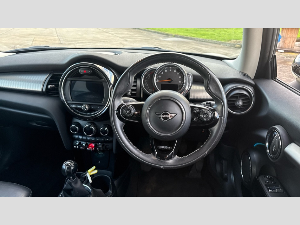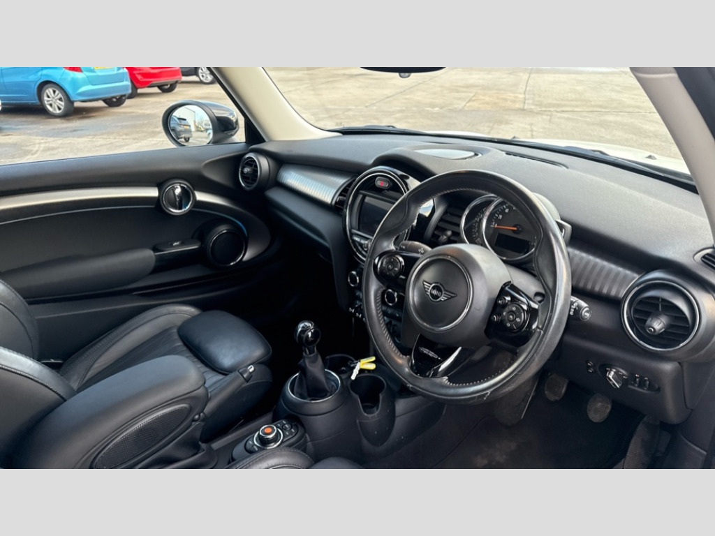 MINI Hatchback 1.5 Cooper Exclusive II 3dr Automatic start/stop function with brake energy recuperation, Compatible mobile phone bluetooth with audio streaming, Electro-mechanical speed dependant steering assistance, Instrument cluster, Mini E-call, MINI TeleServices, On board computer, Service interval indicator, Double Vanos system, Fully variable valve control, High precision injection, FM tuner and DAB digital radio, Automatic headlight activation switch, Body colour fuel filler cap, Chrome border high gloss black slats radiator grille, Chrome line exterior, Dynamic brake lights, Electric front+rear windows, Heated rear window, Heated windscreen washer jets, Left exhaust tailpipe with chrome finisher, Metal door sill strips with MINI imprint, Model logo Cooper on right of tailgate, Radiator grille bars, tailgate handle, lower front grille grating, rear central fog light in chrome, Rain sensor window wipers, Rear fog lights, Rear LED lights with union jack design, Rear window wiper, Side scuttle panel with integrated indicator, Sun/heat protection glass, White indicator lenses, 12V Accessory socket in centre console, 4 lashing eyes in luggage compartment, 60/40 split folding rear seat, Air vents, gear lever base, speakers in doors, door handles in chrome, Chrome interior highlights, Cupholders, Front and rear head restraints, Front and rear isofix with front passenger airbag deactivation, Glove compartment, Height and length steering column adjustment, Interior lighting with 12 basic colours selectable via toggle switch in roof, Leather gearshift lever and handbrake gaiters, LED reading lights, vanity mirror lights, front foot well light and spotlight on front seats, Mechanical seat adjustment, driver seat height adjust, forward/back and front seats backrest, Mini logo projection on floor from drivers exterior mirror, MINI Yours leather steering wheel with silver contrasting stitching with MINI Yours badge, Multifunction steering wheel, Storage compartments in doors, Sunvisors with vanity mirrors, 3 point seatbelts on all four seats, 6 Airbags - front, side, head and seat belt tensioners, Anti-lock braking system (ABS), DSC - Dynamic Stability Control, Front and rear disc brakes, Hill start assist, Single tone fanfare horn, Tyre pressure monitoring system, Alarm system with tilt sensor, monitoring doors, bonnet interior and tailgate, Electronic vehicle immobiliser, Start/stop toggle with keyless go, Chrome line interior, Tool kit