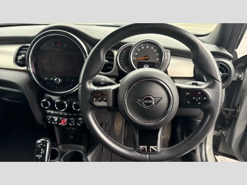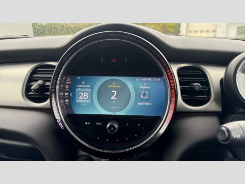 MINI Hatchback 1.5 Cooper Exclusive 5dr Auto Apple CarPlay, Automatic start/stop function with brake energy recuperation, Compatible mobile phone bluetooth with audio streaming, Cruise control with brake assist, Electro-mechanical speed dependant steering assistance, Flexible car sharing preparation, Instrument cluster, Mini E-call, MINI TeleServices, On board computer, Service interval indicator, Double Vanos system, Fully variable valve control, Gear change indicator display, High precision injection, Performance Control, Steptronic transmission with double clutch, 6 speakers in front door trims and underneath front seats, 8.8" touchscreen with LED ring, FM tuner and DAB digital radio, 3rd brake light, Automatic headlight activation switch, Body colour fuel filler cap, Dynamic brake lights, Electric front+rear windows, Heated rear window, Heated windscreen washer jets, LED headlight with closed ring and daytime driving lights, Metal door sill strips with MINI imprint, Model logo Cooper on right of tailgate, Rain sensor window wipers, Rear fog lights, Rear LED lights with union jack design, Rear side wing doors, Rear window wiper, Side scuttle panel with integrated indicator, Sun/heat protection glass, White indicator lenses, 12V Accessory socket in centre console, 3 seat bench in 2nd row, 4 lashing eyes in luggage compartment, 60/40 split folding rear seat, Anthracite headliner including grab handles and clothes hooks, Chrome interior highlights, Chrome line interior - air vents, gear lever base, door handles and speakers in doors, Cupholders, Front and rear head restraints, Front and rear isofix with front passenger airbag deactivation, Front and rear velour floor mats, Glove compartment, Height and length steering column adjustment, Interior lighting with 12 different colours across the dashboard, underneath door bezel with illuminated laser-engraved design on central display, Leatherette gearshift lever and handbrake gaiters, LED reading lights, vanity mirror lights, front foot well light and spotlight on front seats, Mechanical seat adjustment - forward/back & backrest for front seats and driver seat height adjust, MINI yours badge on exterior pillar, Multifunction steering wheel, Single front passenger seat, Storage compartments in doors, Sunvisors with vanity mirrors, Walknappa leather steering wheel with grey seam and MINI Yours badge on Piano Black lower steering wheel spoke, Premium pack - Hatchback, 3 point seatbelts on all five seats, 6 Airbags - front, side, head and seat belt tensioners, Anti-lock braking system (ABS), Child locks on rear doors, DSC - Dynamic Stability Control, Front and rear disc brakes, Hill start assist, Single tone fanfare horn, Tyre pressure monitoring system, Alarm system with tilt sensor, monitoring doors, bonnet interior and tailgate, Electronic vehicle immobiliser, Start/stop toggle with keyless go, Tool kit