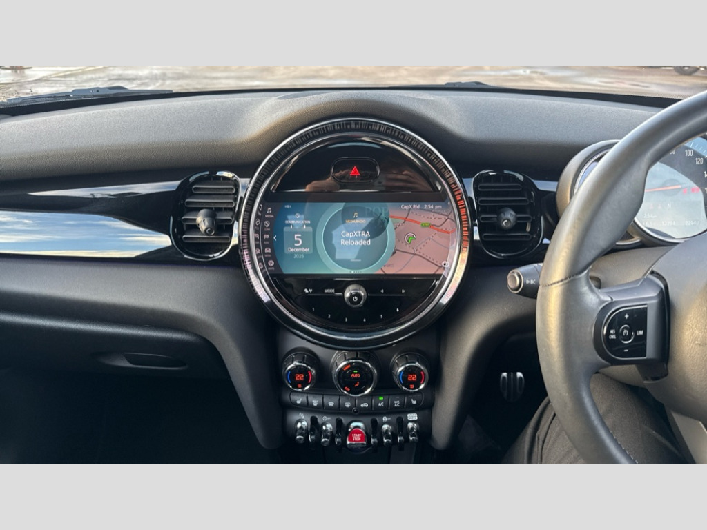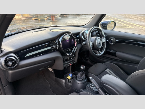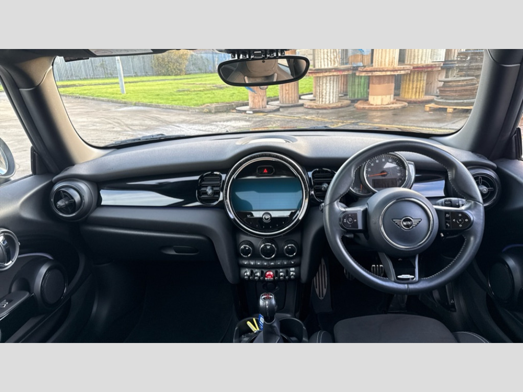 MINI Hatchback 1.5 Cooper Sport 3dr Apple CarPlay, Automatic start/stop function with brake energy recuperation, Compatible mobile phone bluetooth with audio streaming, Cruise control with brake assist, Electro-mechanical speed dependant steering assistance, Flexible car sharing preparation, Instrument cluster, MINI Driving Modes - centre toggle switch to control driving setting (sport, mid and green), Mini E-call, MINI TeleServices, On board computer, Rear park distance control, Service interval indicator, 6 Speed manual transmission including gear change indicator display, Double Vanos system, Fully variable valve control, High precision injection, Intelligent adaptive suspension, Performance Control, 8.8" touchscreen with LED ring, FM tuner and DAB digital radio, 3rd brake light, Automatic headlight activation switch, Body colour fuel filler cap, Chrome border high gloss black slats radiator grille, Dynamic brake lights, Electric front windows, Exhaust tailpipe on left with chrome finisher, Heated rear window, Heated windscreen washer jets, JCW Aerodynamic kit - Front and rear bumpers with sporty JCW styling and part-painted side sills with MINI John Cooper Works door sill finishers, John Cooper Works rear spoiler, LED headlight with closed ring and daytime driving lights, Metal door sill strips with MINI imprint, Model logo Cooper on right of tailgate, Rain sensor window wipers, Rear fog lights, Rear LED lights with union jack design, Rear window wiper, Side scuttle panel with integrated indicator, Sun/heat protection glass, White indicator lenses, 12V Accessory socket in centre console, 2 seat bench in 2nd row, 4 lashing eyes in luggage compartment, 60/40 split folding rear seat, Anthracite headliner including grab handles and clothes hooks, Carbon black colour line - Knee roll and door armrest, Chrome interior highlights, Cupholders, Front and rear isofix with front passenger airbag deactivation, Front floor mats in velour, Glove compartment, Height and length steering column adjustment, Interior lighting with 12 different colours across the dashboard, underneath door bezel with illuminated laser-engraved design on central display, JCW Sport seats with integrated headrests, adjustable thigh support and John Cooper Works logo, Leatherette gearshift lever and handbrake gaiters, LED reading lights, vanity mirror lights, front foot well light and spotlight on front seats, Manual air conditioning, Mechanical seat adjustment - forward/back & backrest for front seats and driver seat height adjust, Multifunction steering wheel, Passenger seat height adjuster, Single front passenger seat, Storage compartments in doors, Sunvisors with vanity mirrors, Walknappa leather steering wheel with grey seam and John Cooper Works badge on Piano Black lower steering wheel spoke, Piano black exterior pack - Mini Hatchback Cooper, 3 point seatbelts on all four seats, 6 Airbags - front, side, head and seat belt tensioners, Anti-lock braking system (ABS), DSC - Dynamic Stability Control, Front and rear disc brakes, Single tone fanfare horn, Tyre pressure monitoring system, Alarm system with tilt sensor, monitoring doors, bonnet interior and tailgate, Electronic vehicle immobiliser, Start/stop toggle with keyless go, Piano black interior trim, Tool kit