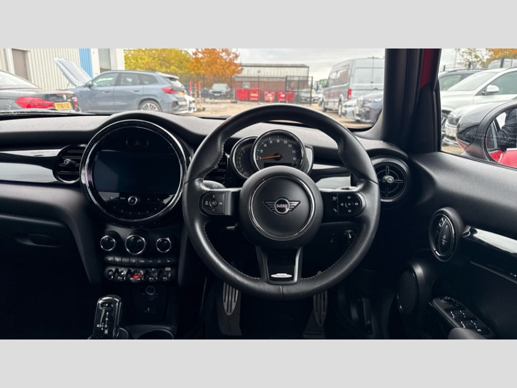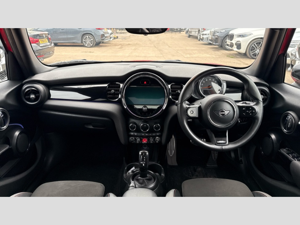 MINI Hatchback 1.5 Cooper Sport 5dr Auto Apple CarPlay, Automatic start/stop function with brake energy recuperation, Compatible mobile phone bluetooth with audio streaming, Cruise control with brake assist, Electro-mechanical speed dependant steering assistance, Flexible car sharing preparation, Instrument cluster, MINI Driving Modes - centre toggle switch to control driving setting (sport, mid and green), Mini E-call, MINI TeleServices, On board computer, Rear park distance control, Service interval indicator, Adaptive suspension, Double Vanos system, Fully variable valve control, Gear change indicator display, High precision injection, Performance Control, Steptronic transmission with double clutch, 8.8" touchscreen with LED ring, FM tuner and DAB digital radio, 3rd brake light, Automatic headlight activation switch, Body colour fuel filler cap, Chrome border high gloss black slats radiator grille, Dynamic brake lights, Electric front+rear windows, Exhaust tailpipe on left with chrome finisher, Heated rear window, Heated windscreen washer jets, JCW Aerodynamic kit - Front and rear bumpers with sporty JCW styling and part-painted side sills with MINI John Cooper Works door sill finishers, John Cooper Works rear spoiler, LED headlight with closed ring and daytime driving lights, Metal door sill strips with MINI imprint, Model logo Cooper on right of tailgate, Rain sensor window wipers, Rear fog lights, Rear LED lights with union jack design, Rear side wing doors, Rear window wiper, Side scuttle panel with integrated indicator, Sun/heat protection glass, White indicator lenses, 12V Accessory socket in centre console, 3 seat bench in 2nd row, 4 lashing eyes in luggage compartment, 60/40 split folding rear seat, Anthracite headliner including grab handles and clothes hooks, Carbon black colour line - Knee roll and door armrest, Chrome interior highlights, Cupholders, Front and rear isofix with front passenger airbag deactivation, Front and rear velour floor mats, Glove compartment, Height and length steering column adjustment, Interior lighting with 12 different colours across the dashboard, underneath door bezel with illuminated laser-engraved design on central display, JCW Sport seats with integrated headrests, adjustable thigh support and John Cooper Works logo, Leatherette gearshift lever and handbrake gaiters, LED reading lights, vanity mirror lights, front foot well light and spotlight on front seats, Manual air conditioning, Mechanical seat adjustment - forward/back & backrest for front seats and driver seat height adjust, Multifunction steering wheel, Single front passenger seat, Storage compartments in doors, Sunvisors with vanity mirrors, Walknappa leather steering wheel with grey seam and John Cooper Works badge on Piano Black lower steering wheel spoke, Piano black exterior pack - Mini Hatchback Cooper, 3 point seatbelts on all five seats, 6 Airbags - front, side, head and seat belt tensioners, Anti-lock braking system (ABS), Child locks on rear doors, DSC - Dynamic Stability Control, Front and rear disc brakes, Hill start assist, Single tone fanfare horn, Tyre pressure monitoring system, Alarm system with tilt sensor, monitoring doors, bonnet interior and tailgate, Electronic vehicle immobiliser, Start/stop toggle with keyless go, Piano black interior trim, Tool kit