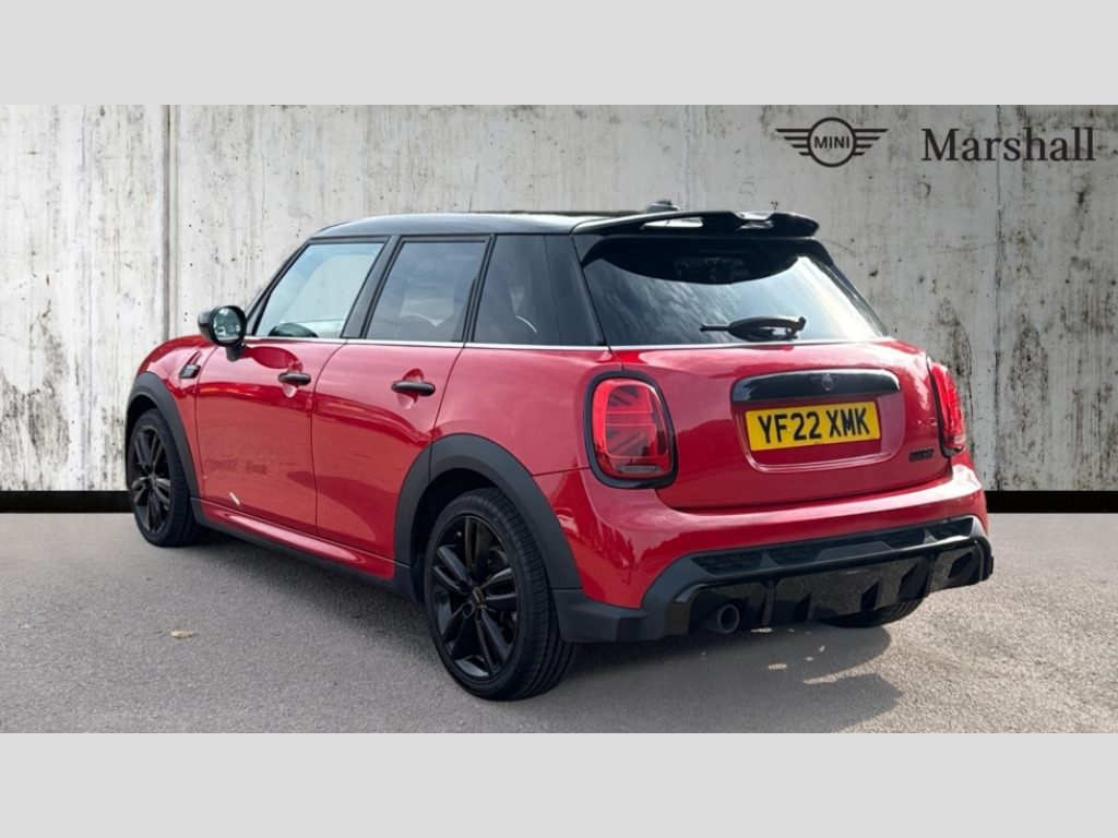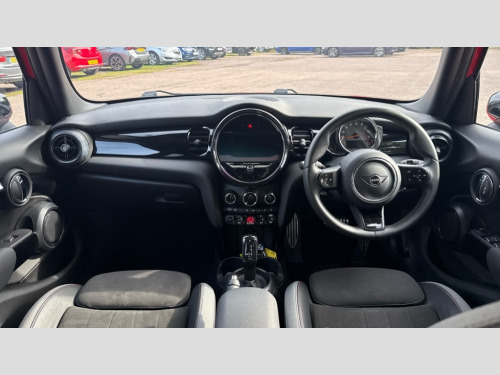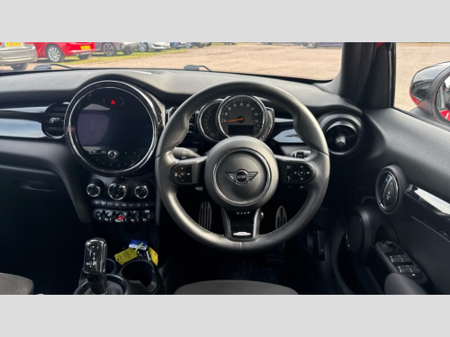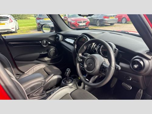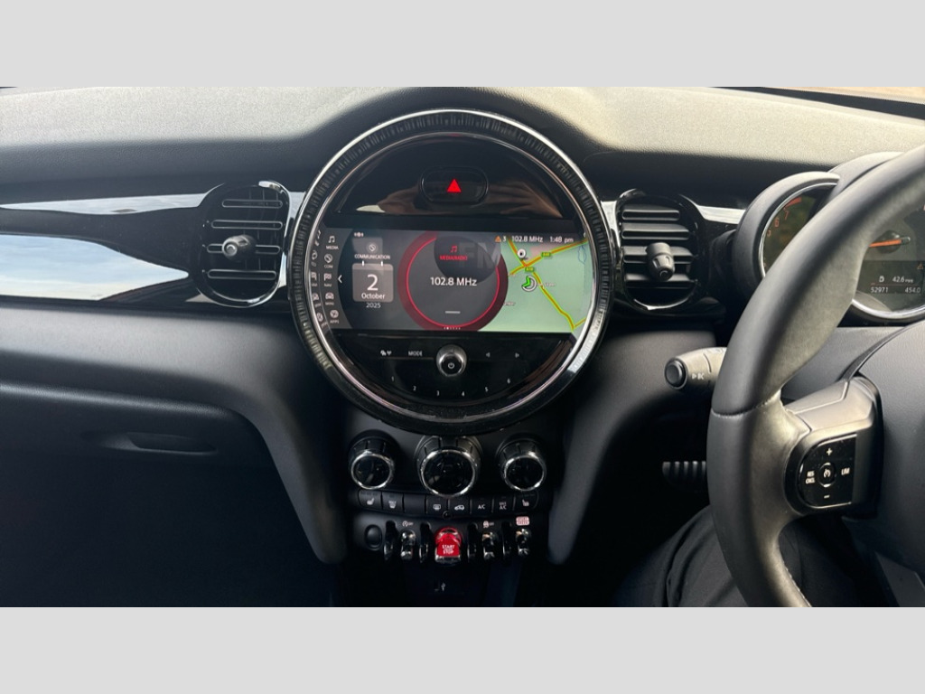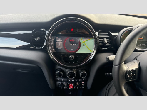 MINI Hatchback 1.5 Cooper Sport 5dr Auto Apple CarPlay, Automatic start/stop function with brake energy recuperation, Compatible mobile phone bluetooth with audio streaming, Cruise control with brake assist, Electro-mechanical speed dependant steering assistance, Flexible car sharing preparation, Instrument cluster, MINI Driving Modes - centre toggle switch to control driving setting (sport, mid and green), Mini E-call, MINI TeleServices, On board computer, Rear park distance control, Service interval indicator, Adaptive suspension, Double Vanos system, Fully variable valve control, Gear change indicator display, High precision injection, Performance Control, Steptronic transmission with double clutch, 8.8" touchscreen with LED ring, FM tuner and DAB digital radio, 3rd brake light, Automatic headlight activation switch, Body colour fuel filler cap, Chrome border high gloss black slats radiator grille, Dynamic brake lights, Electric front+rear windows, Exhaust tailpipe on left with chrome finisher, Heated rear window, Heated windscreen washer jets, JCW Aerodynamic kit - Front and rear bumpers with sporty JCW styling and part-painted side sills with MINI John Cooper Works door sill finishers, John Cooper Works rear spoiler, LED headlight with closed ring and daytime driving lights, Metal door sill strips with MINI imprint, Model logo Cooper on right of tailgate, Rain sensor window wipers, Rear fog lights, Rear LED lights with union jack design, Rear side wing doors, Rear window wiper, Side scuttle panel with integrated indicator, Sun/heat protection glass, White indicator lenses, 12V Accessory socket in centre console, 3 seat bench in 2nd row, 4 lashing eyes in luggage compartment, 60/40 split folding rear seat, Anthracite headliner including grab handles and clothes hooks, Carbon black colour line - Knee roll and door armrest, Chrome interior highlights, Cupholders, Front and rear isofix with front passenger airbag deactivation, Front and rear velour floor mats, Glove compartment, Height and length steering column adjustment, Interior lighting with 12 different colours across the dashboard, underneath door bezel with illuminated laser-engraved design on central display, JCW Sport seats with integrated headrests, adjustable thigh support and John Cooper Works logo, Leatherette gearshift lever and handbrake gaiters, LED reading lights, vanity mirror lights, front foot well light and spotlight on front seats, Manual air conditioning, Mechanical seat adjustment - forward/back & backrest for front seats and driver seat height adjust, Multifunction steering wheel, Single front passenger seat, Storage compartments in doors, Sunvisors with vanity mirrors, Walknappa leather steering wheel with grey seam and John Cooper Works badge on Piano Black lower steering wheel spoke, Piano black exterior pack - Mini Hatchback Cooper, 3 point seatbelts on all five seats, 6 Airbags - front, side, head and seat belt tensioners, Anti-lock braking system (ABS), Child locks on rear doors, DSC - Dynamic Stability Control, Front and rear disc brakes, Hill start assist, Single tone fanfare horn, Tyre pressure monitoring system, Alarm system with tilt sensor, monitoring doors, bonnet interior and tailgate, Electronic vehicle immobiliser, Start/stop toggle with keyless go, Piano black interior trim, Tool kit